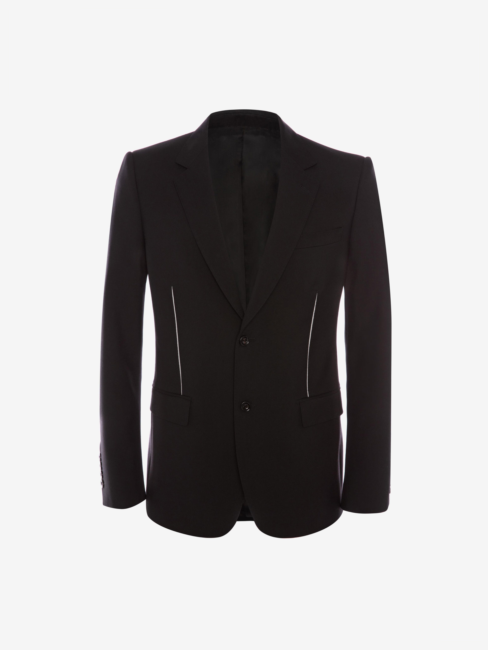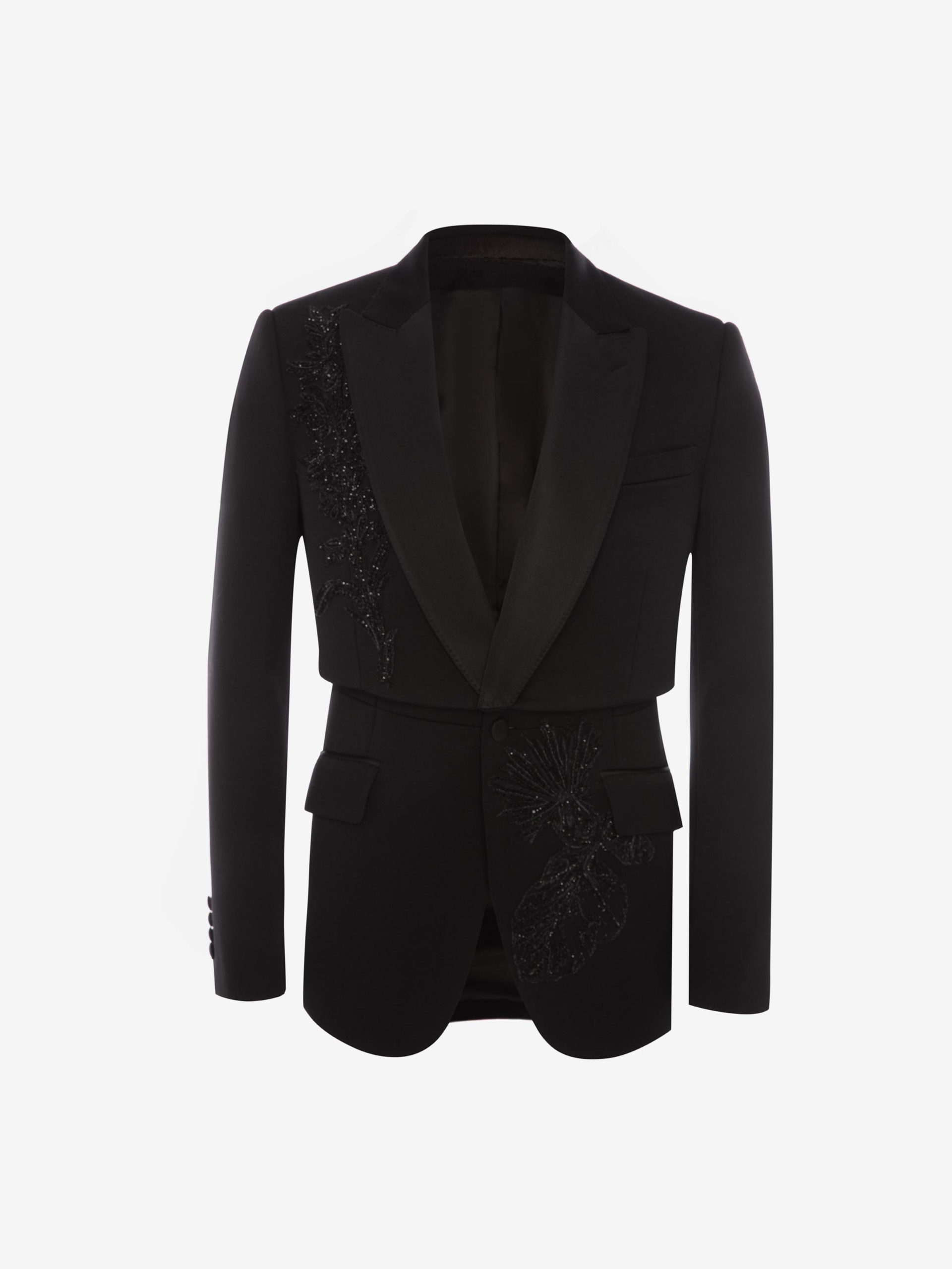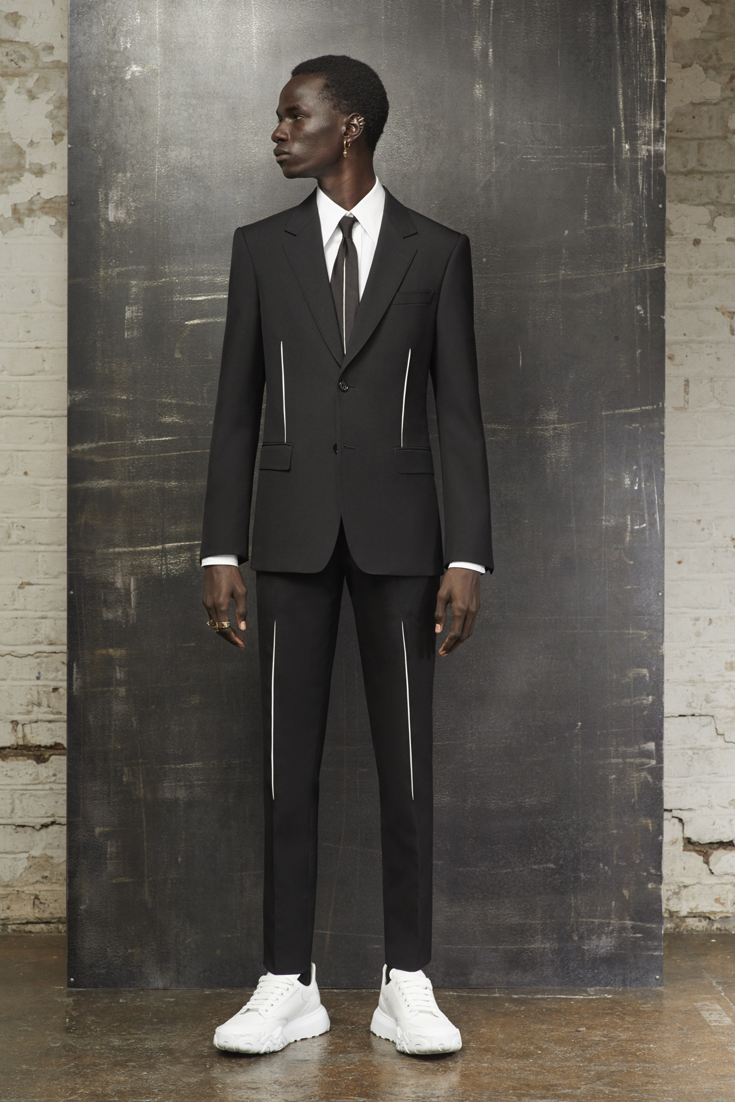 Heritage McQueen, lignes nettes, épaules emblématiques et alignement continu entre les vêtements pour hommes et les femmes d’Alexander McQueen.