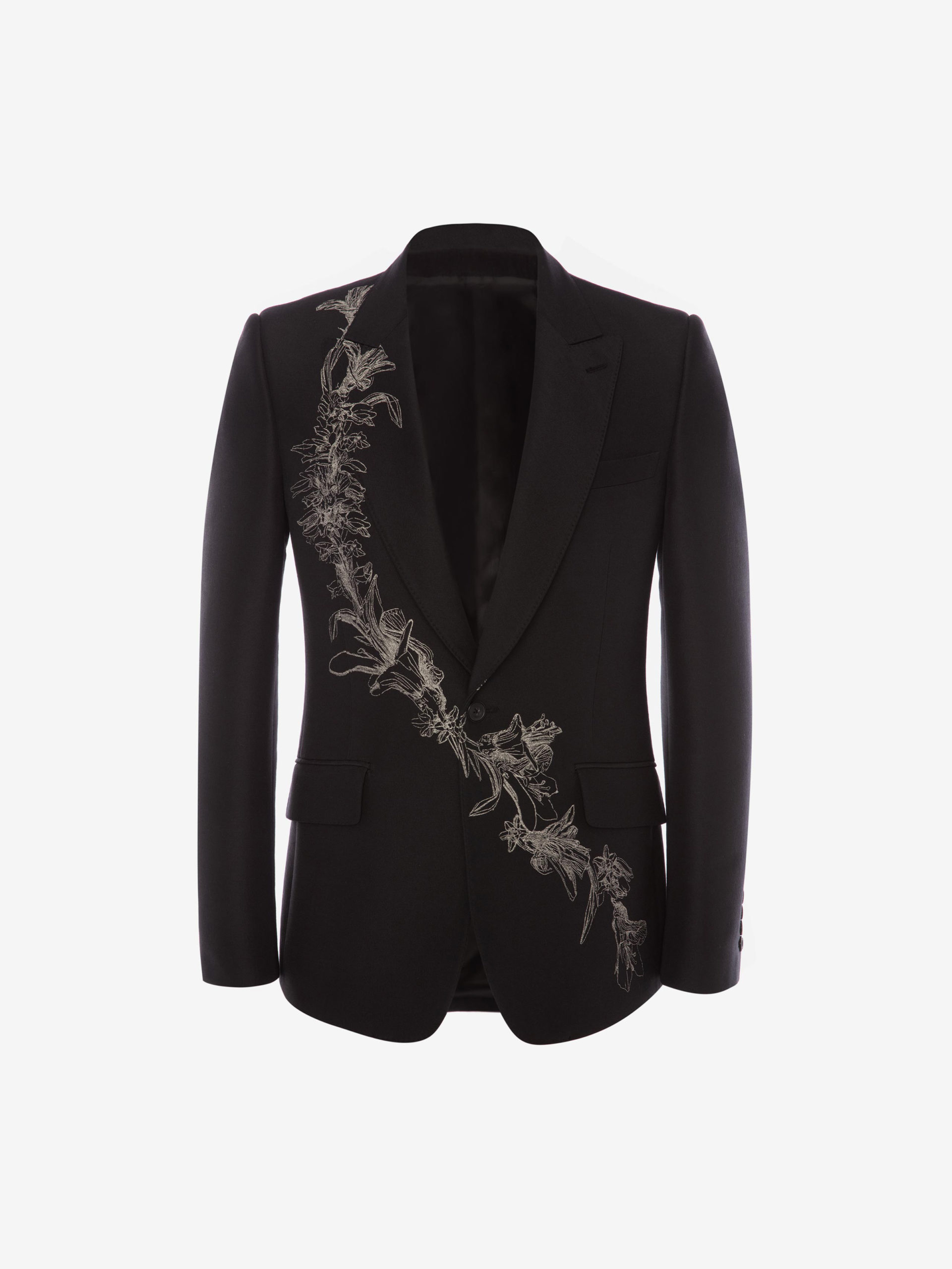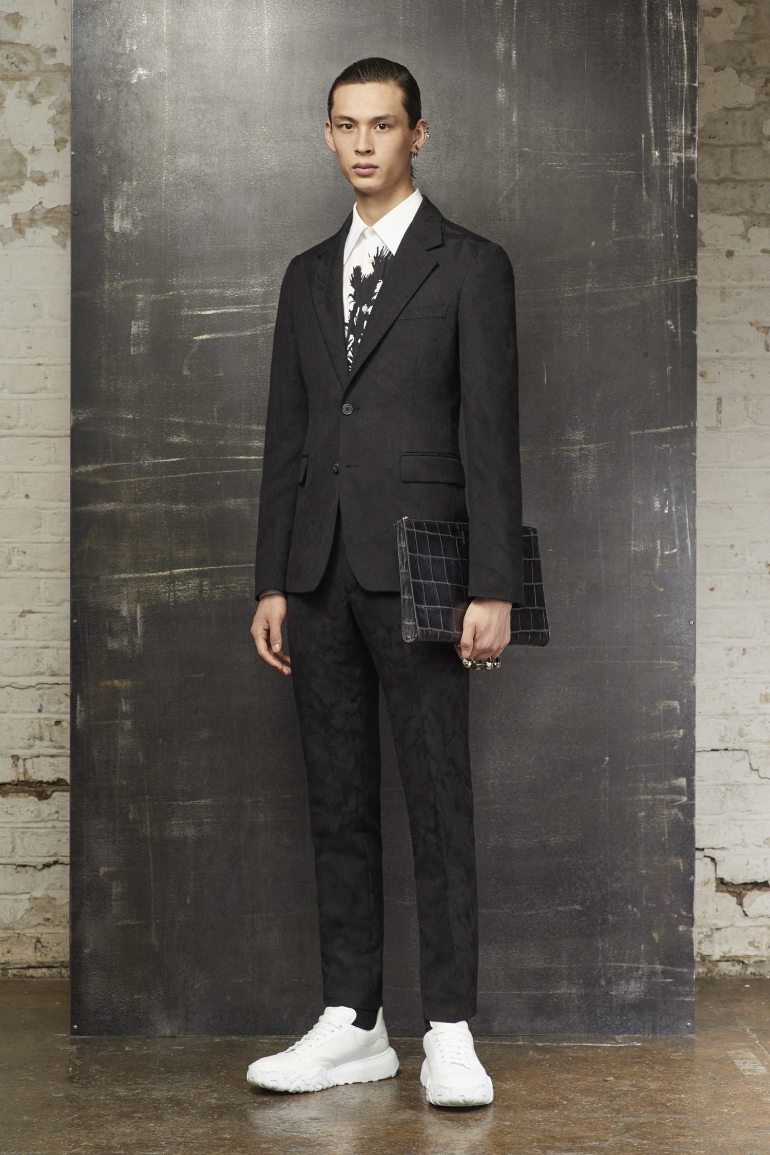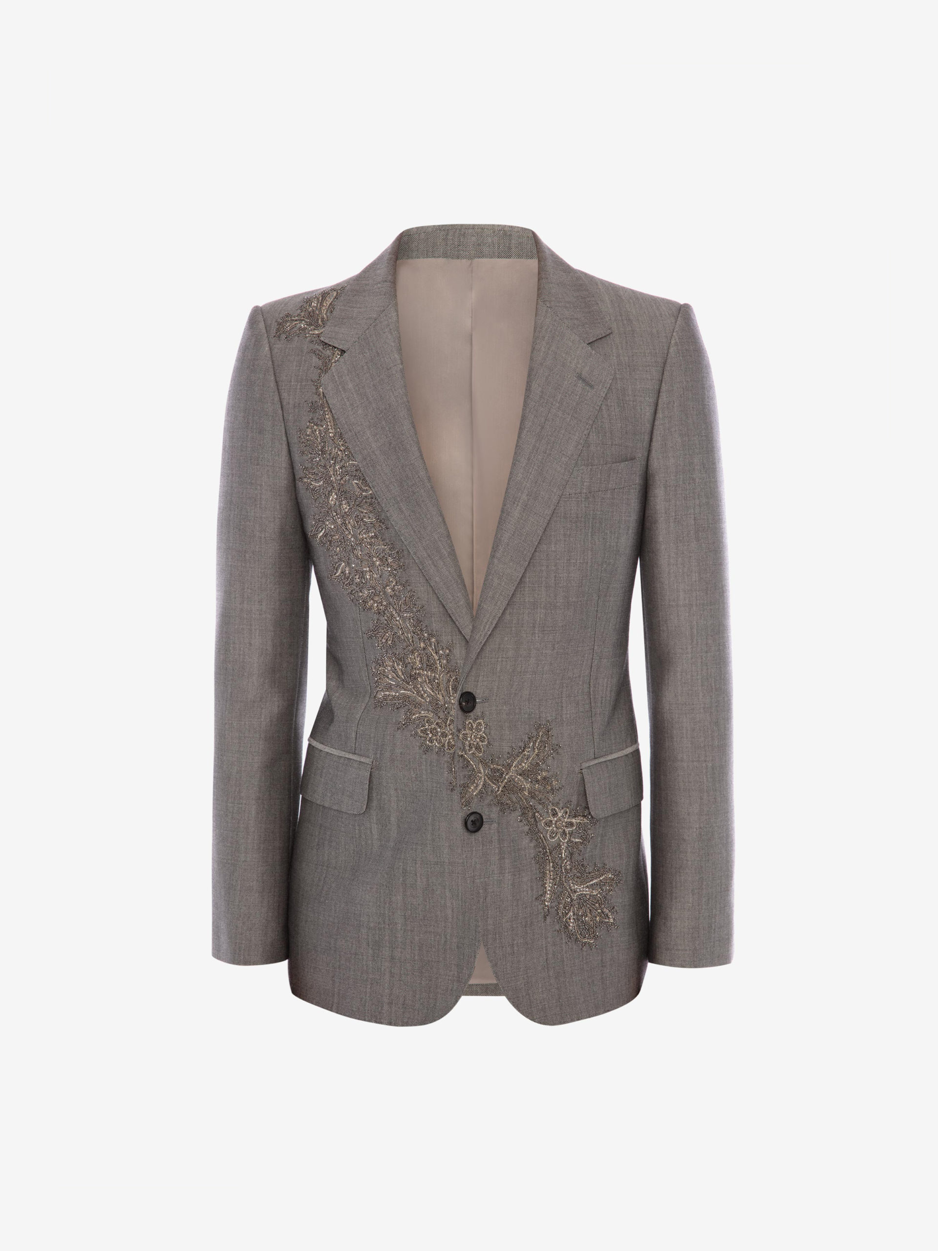 Heritage McQueen, lignes nettes, épaules emblématiques et alignement continu entre les vêtements pour hommes et les femmes d’Alexander McQueen.