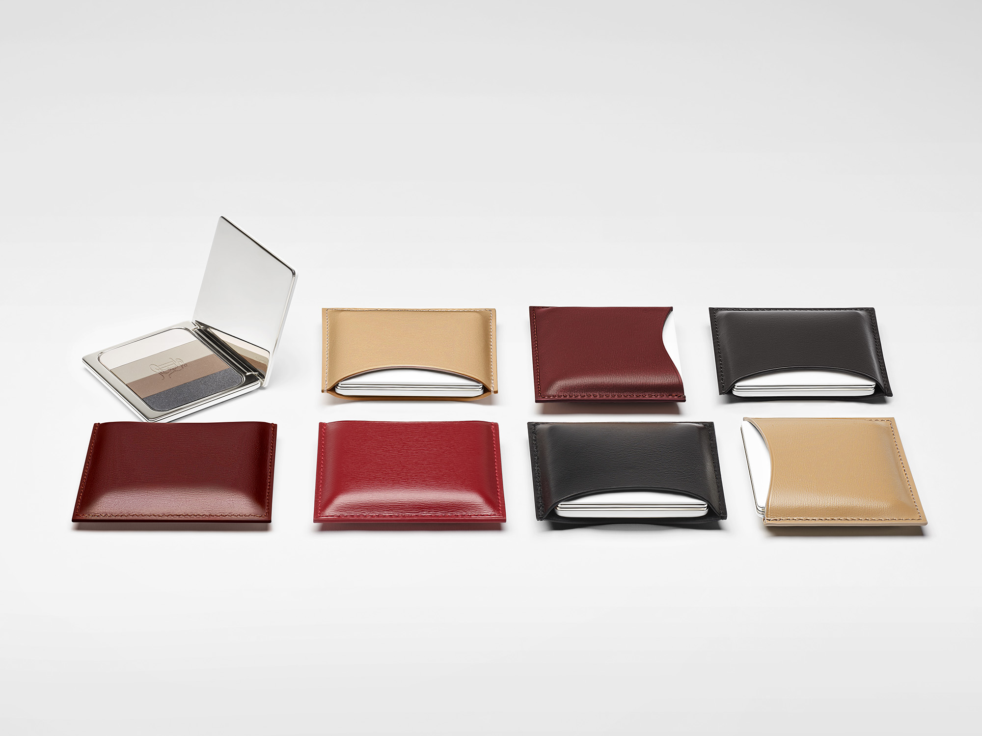 Le poudrier, un objet rechargeable intemporel pour le bronzer, l’highlighter et les ombres à paupières. Accompagné de son écrin en cuir, il devient un superbe accessoire de mode.