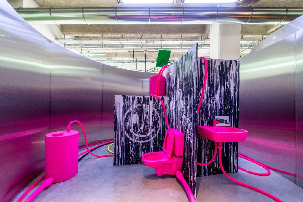 Salle de bain – O.M.R Sanitary Unit #1 par Jerszy Seymour pour l’exposition Places to be à la Fondation d’entreprise Martell © C.K. Mariot