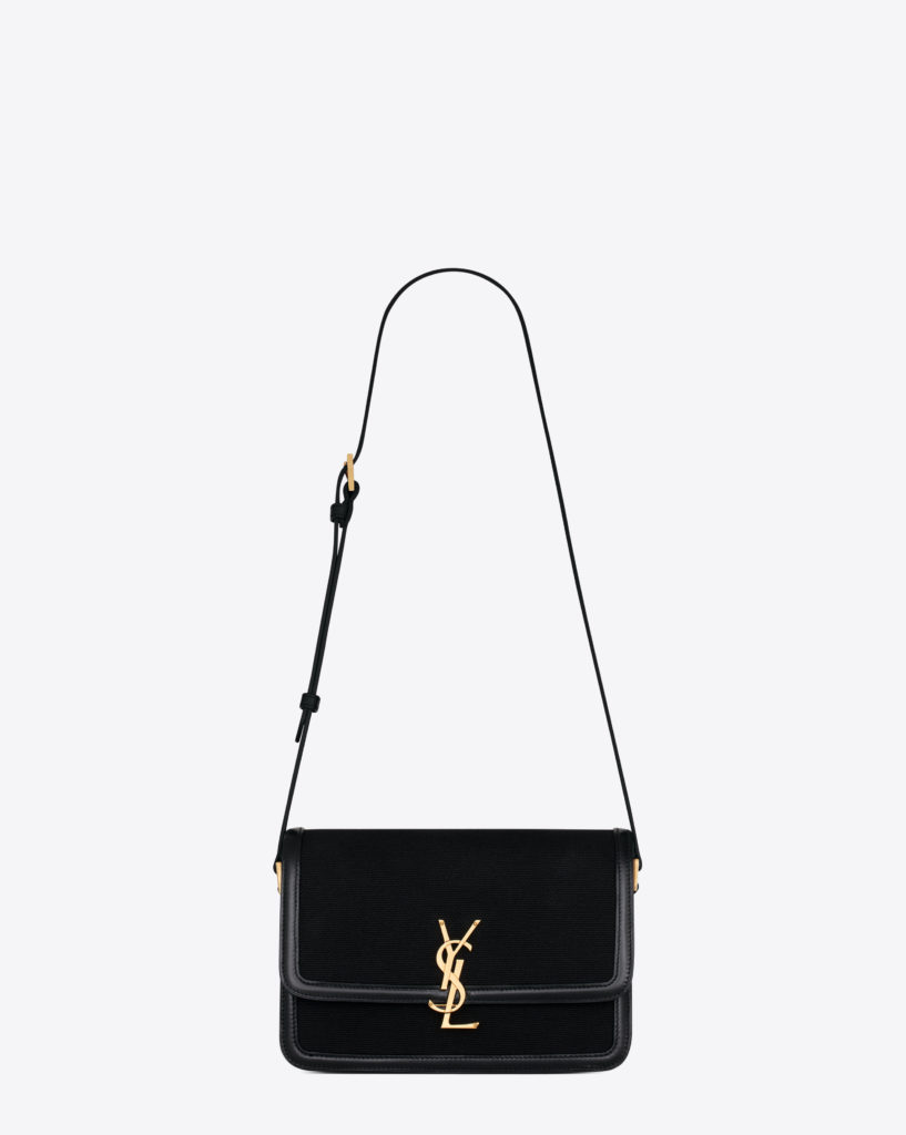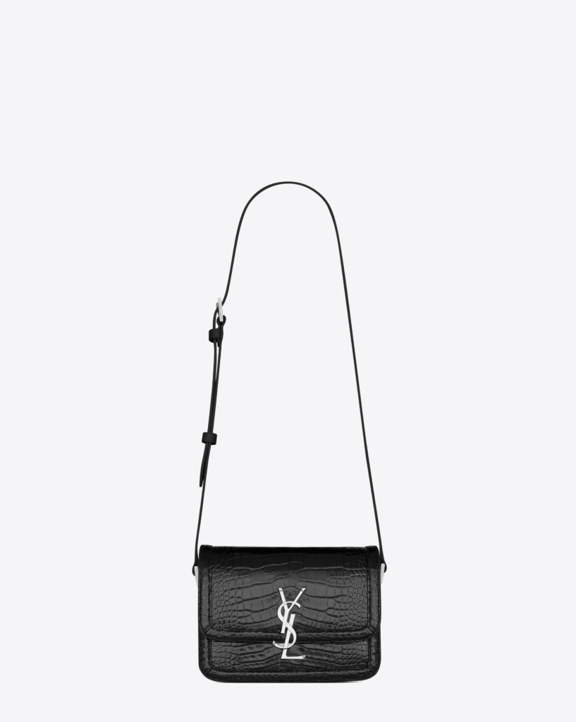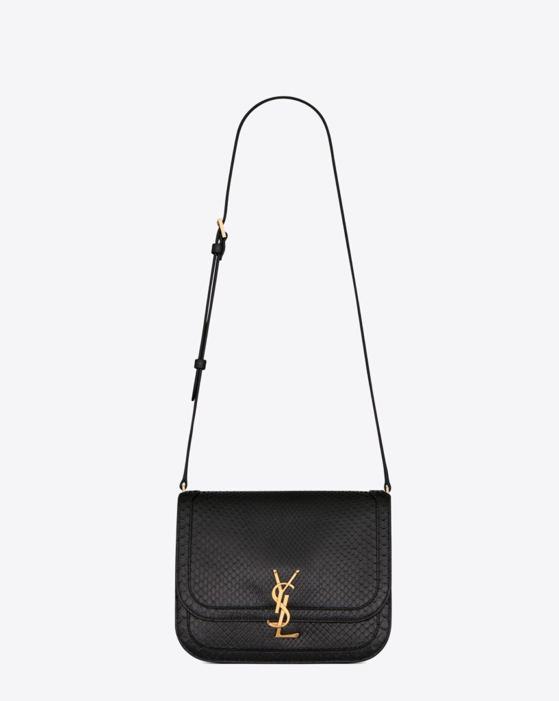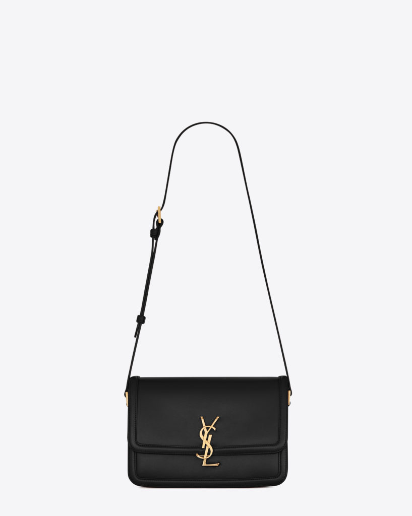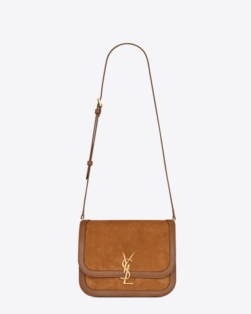 FOR FALL 2020, SAINT LAURENT PRESENTS THE SOLFERINO SATCHEL. THE NEW BAG IS PROPOSED IN A RIGID VERSION IN EXCEPTIONAL SAINT LAURENT BOX LEATHER (AND IN TWO SIZES) OR IN A SUPPLE VERSION IN SUEDE AND MEDIUM SIZE, AND A TIMELESS CHOICE OF MATERIALS AND COLORS. ITS SHORT PORTÉ AS WELL AS ITS MECHANICAL CLOSURE, IN THE SHAPE OF THE JEWEL-LIKE LOGO, MAKE OF THE SOLFERINO THE NEW SAINT LAURENT ESSENTIAL.