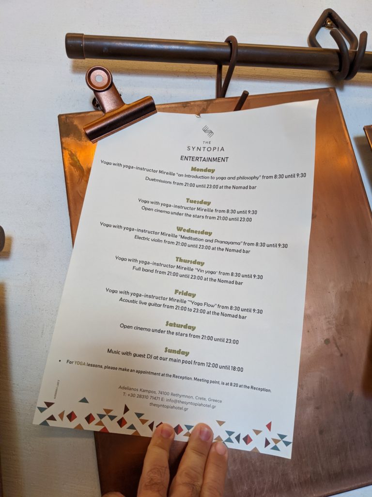 Un calendrier d’événements soigneusement organisé – yoga du matin, concerts en soirée, dégustation de vins, cinéma en plein air.