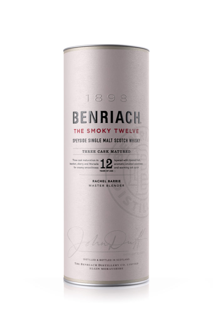 Fondée en 1898, la distillerie Benriach n’a de cesse d’expérimenter pour créer des Single Malts uniques, parmi les plus complexes du Speyside. Au début des années 1970, Benriach brise les conventions de la région en revenant à la distillation traditionnelle d’orge maltée tourbée, ce qui fait d’elle l’une des seules distilleries du Speyside à proposer des whiskies tourbés dans sa gamme permanente. Benriach décline dans son portefeuille des expressions tourbées bien distinctes, en fonction des types de fûts et des temps de vieillissement utilisés. The Smoky Twelve révèle un riche caractère fumé et possède son propre profil aromatique, grâce à un assemblage atypique et rare de trois types de fûts : Bourbon, Xérès et Marsala. Le résultat est un Single Malt tourbé âgé de 12 ans aux reflets d’or brun et aux arômes de fruits mûrs crémeux et de chêne épicé enrobés d’une douce fumée. Son nez libère la richesse de la tourbe avec des notes de vanille fumée, d’orange grillée et d’amande toastée. À la dégustation, les notes tourbées sont soutenues, suivies d’arômes de chocolat noir, de pelures de fruits, de sucre brun et de chêne fumé. Une note persistante de cacao et une finale d’orange fumée viennent compléter cet héritage créatif.