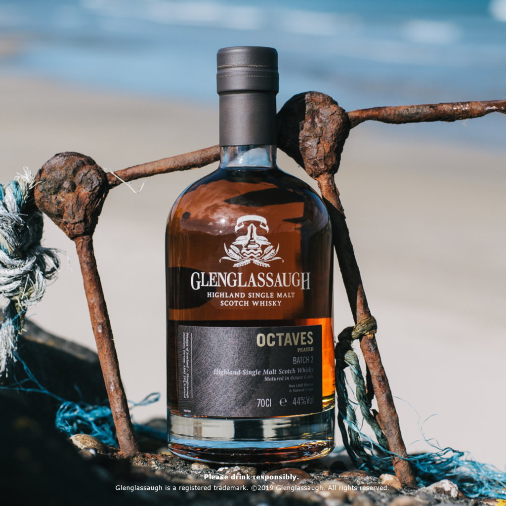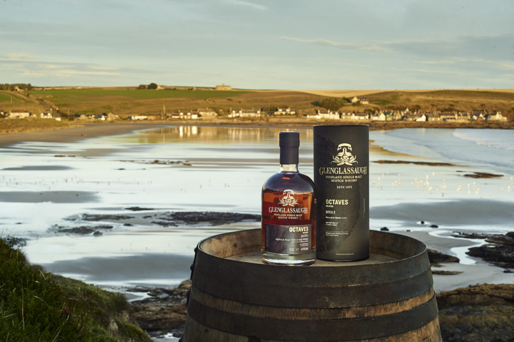 Située au bord de la magnifique baie de Sandend, Glenglassaugh est la plus maritime des distilleries des Highlands. Cette distillerie propose des whiskies singuliers des plus originaux, dont l’essence est influencée par sa situation exceptionnelle au carrefour du Speyside et des Highlands, et au bord de la Mer du Nord. Le vieillissement en octaves – des fûts de capacité huit fois inférieure aux fûts de Bourbon – permet un échange plus grand et plus rapide entre le bois et le liquide. Ainsi, la référence Glenglassaugh Octaves Peated Batch 2 dévoile rapidement l’influence du bois des fûts de Bourbon, de Porto et de Xérès, ayant servi à la construction de l’octave, et laisse percevoir une note légèrement saline apportée par le vieillissement en bord de mer. D’une robe miel doré, le nez propose un subtil équilibre entre la fumée salée par la mer et des notes de sablé au caramel salé, de chocolat pimenté et de bois. À la dégustation, on découvre des notes d’abricots, de gingembre et de mangue, qui se prolongent sur des arômes de bacon fumé et de prune jaune épicée au paprika. La finale est riche, proposant des arômes de noix rôties et de fruits épicés, le tout ponctué par une légère salinité.
