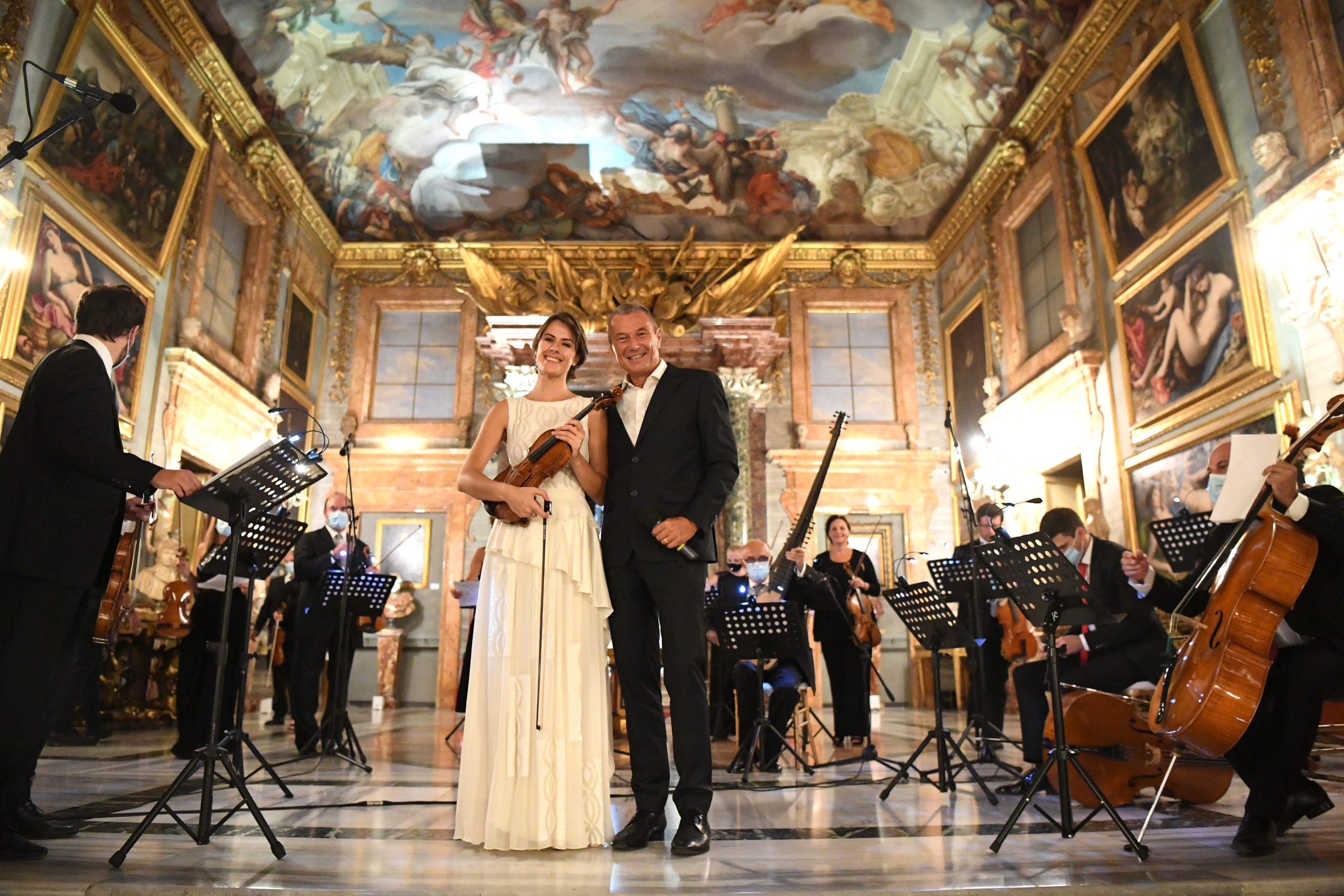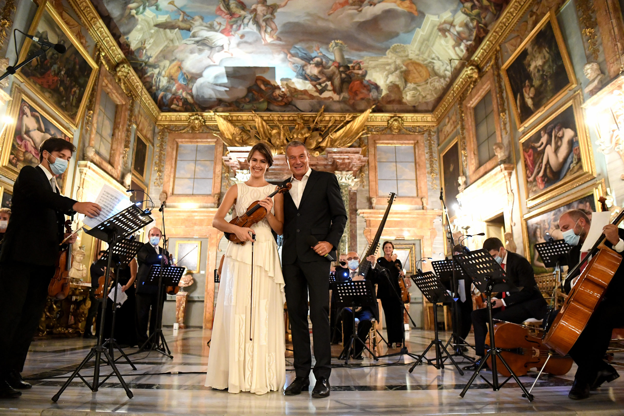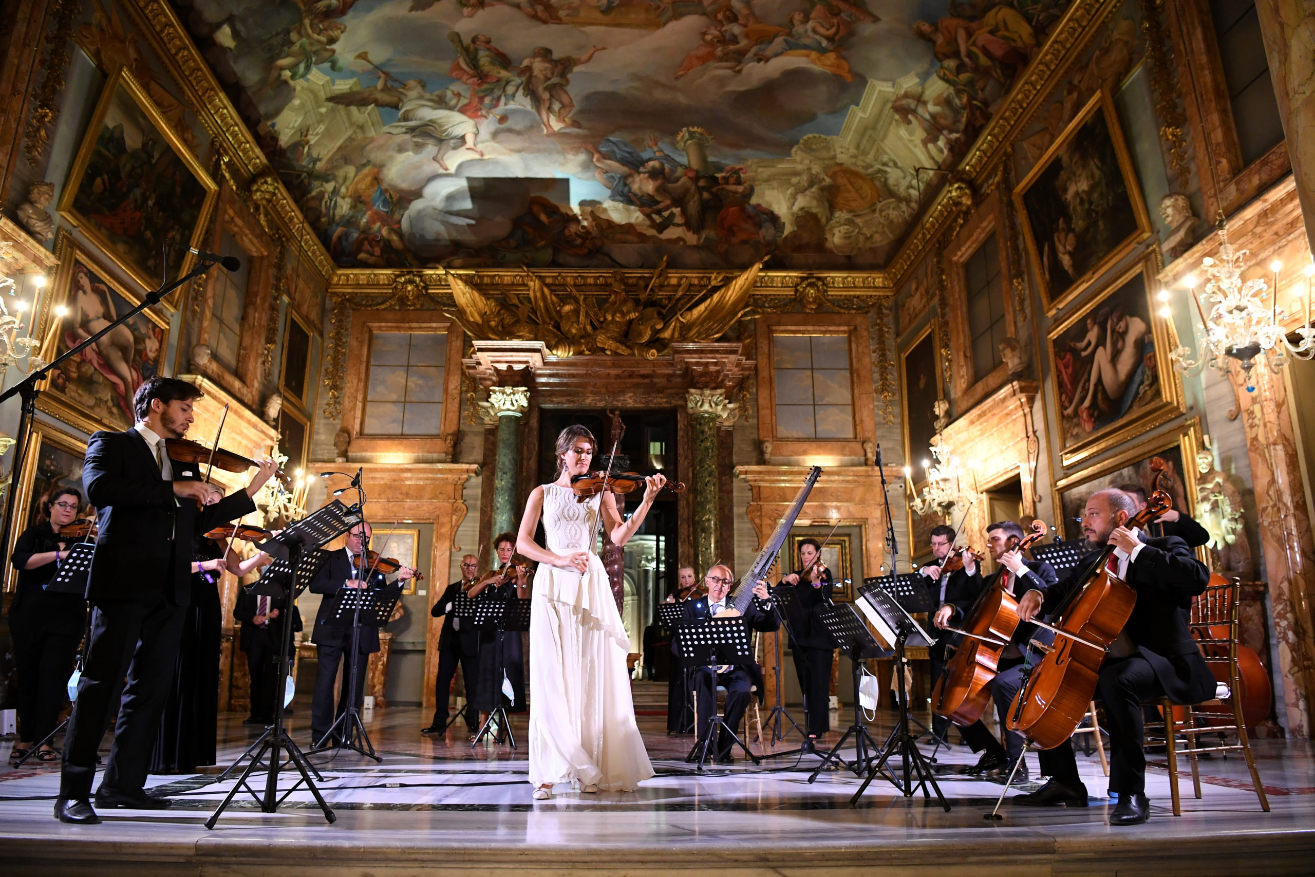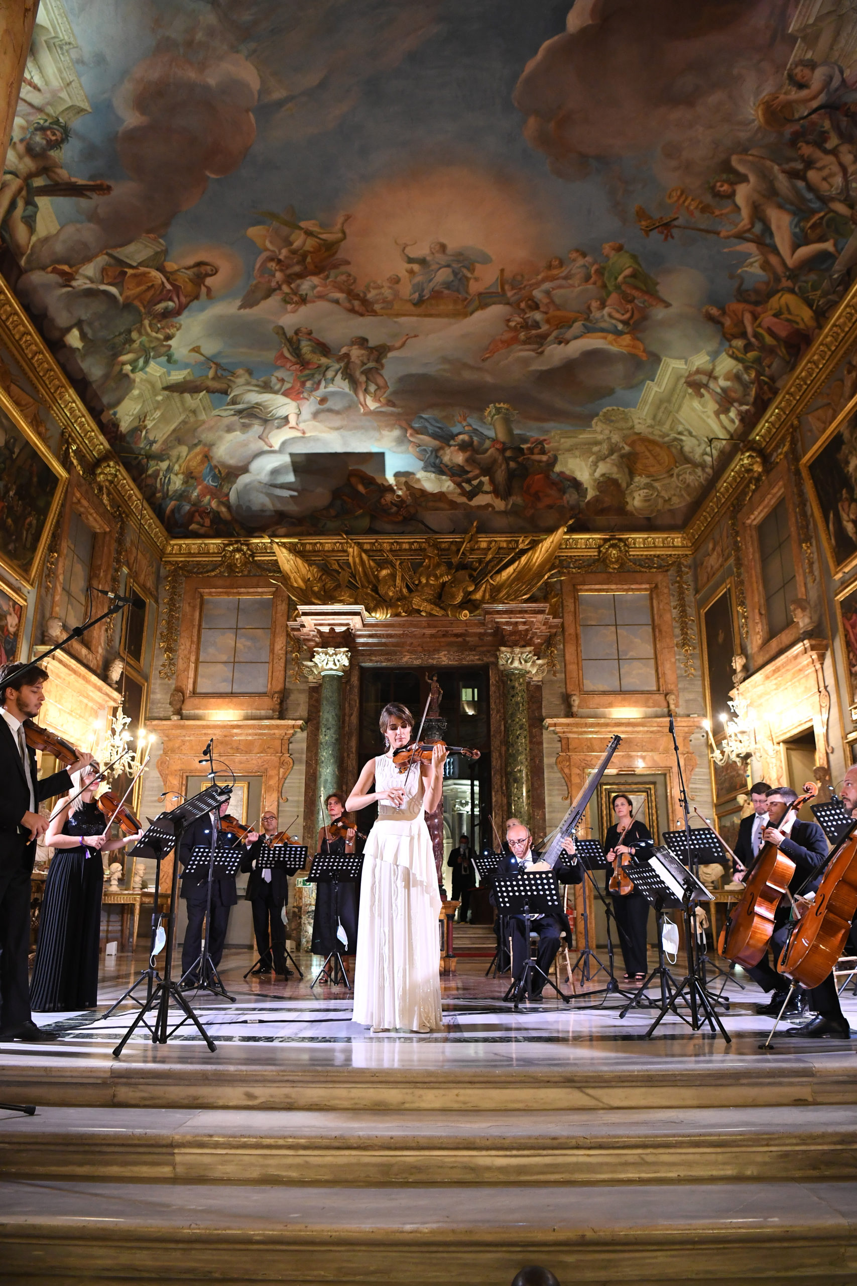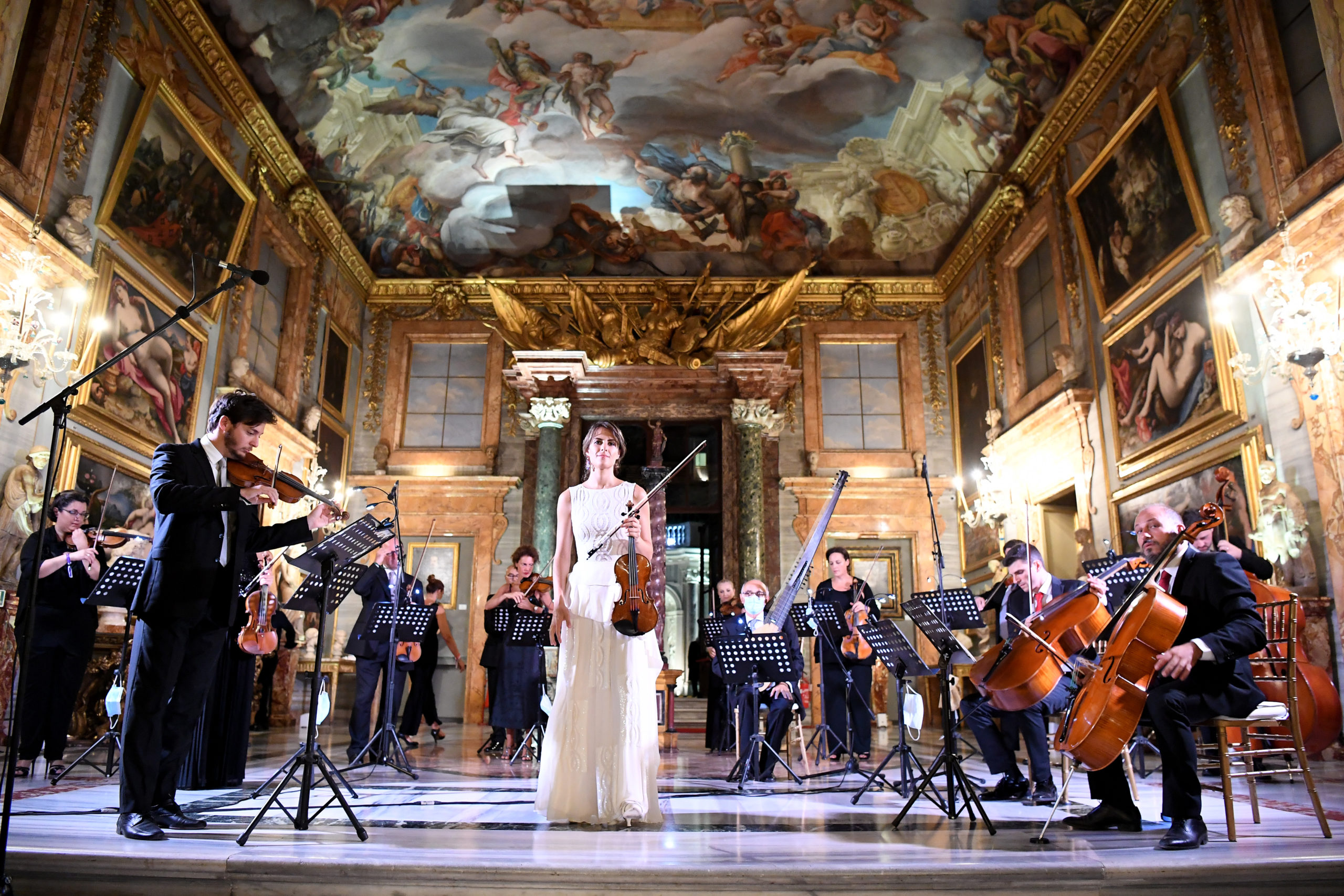 Vingt mannequins ont défilé en portant les pièces les plus emblématiques de la collection Barocko pendant un concert live de l’orchestre de l’Académie Nationale di Santa Cecilia de Rome, l’une des plus anciennes institutions musicales du monde.