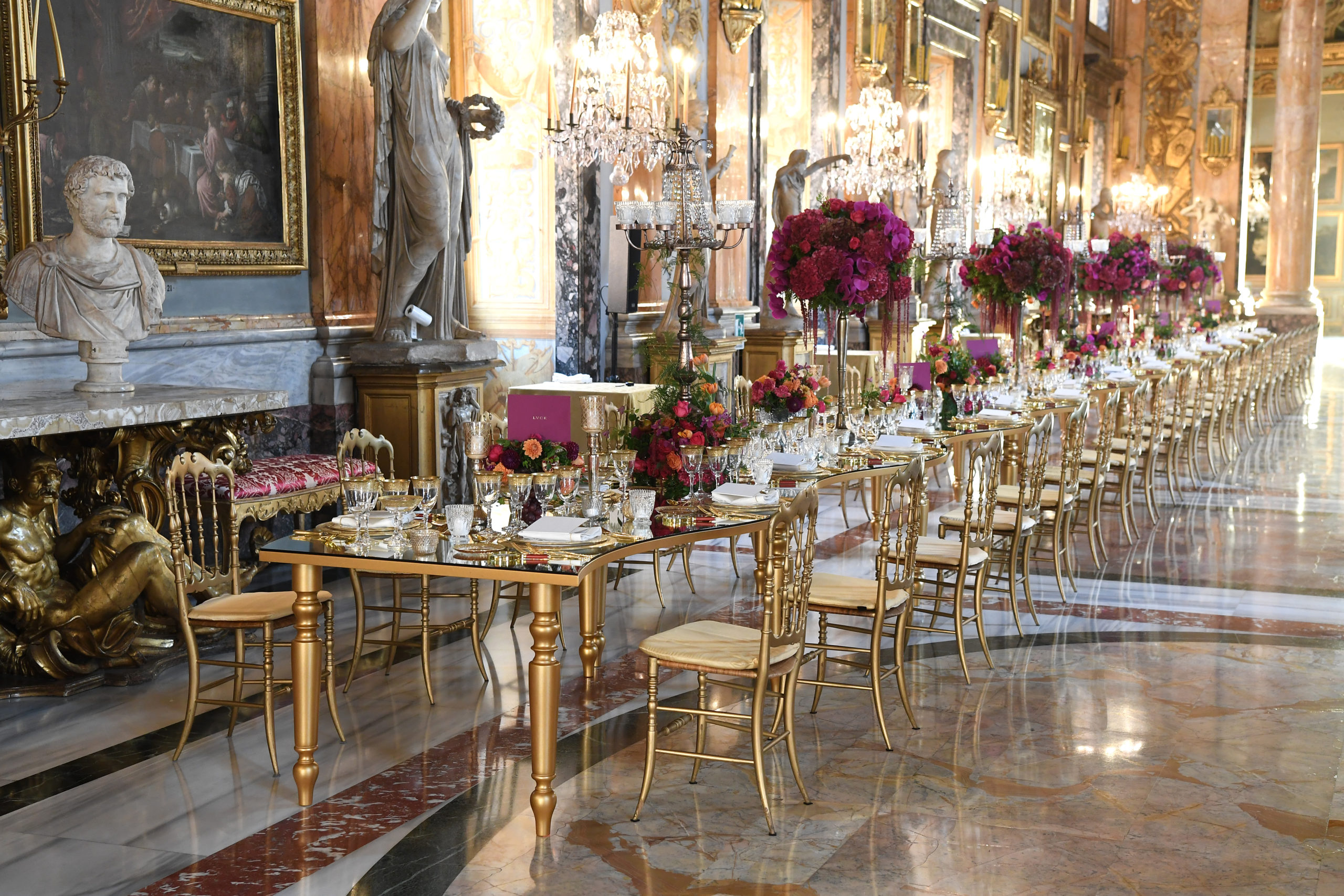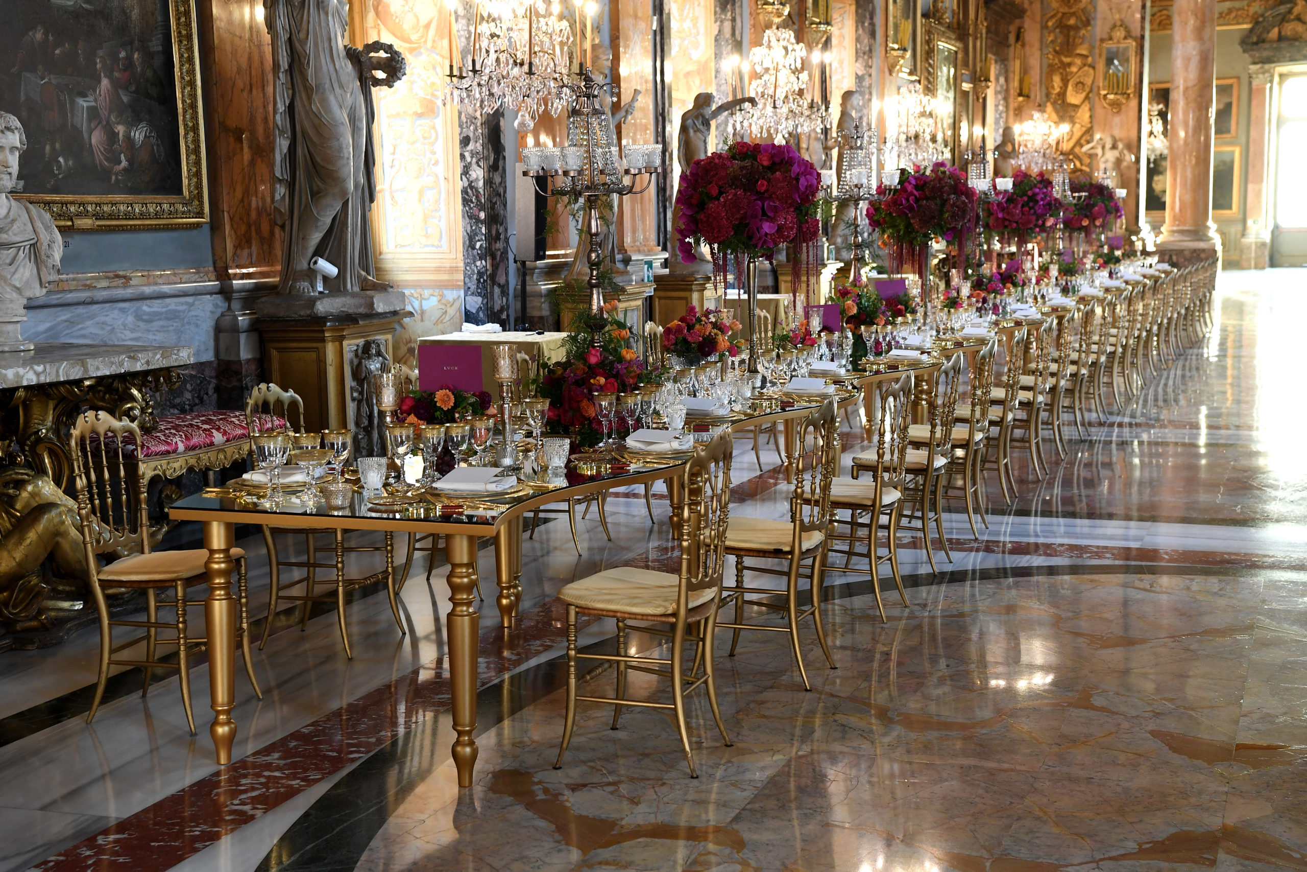 Après le spectacle, les invités ont été invités à un dîner raffiné dans la galerie Colonna, où le chef Emanuele Scarello les a surpris avec un menu soigneusement inspiré du lien étroit entre Bvlgari et le Baroque.