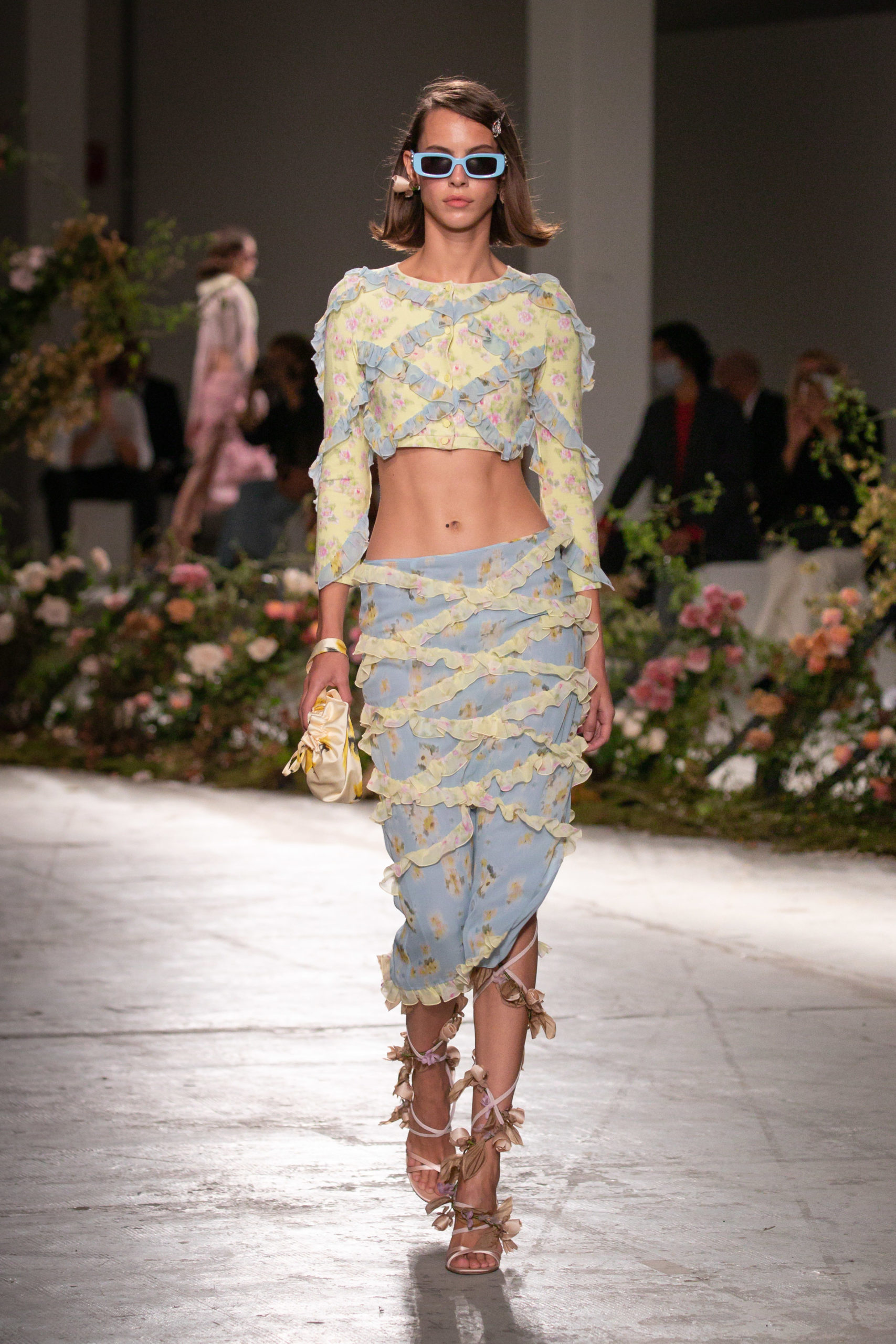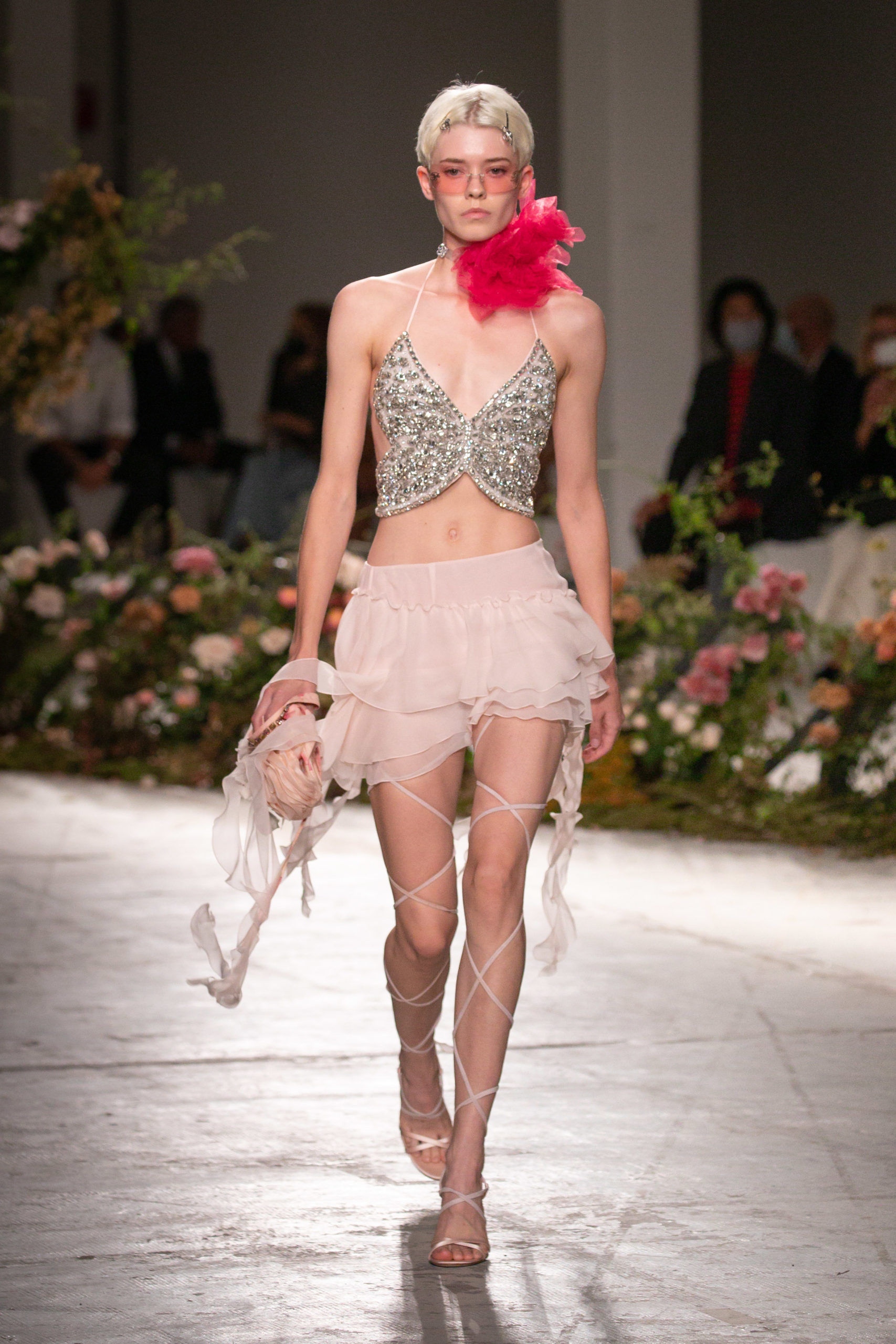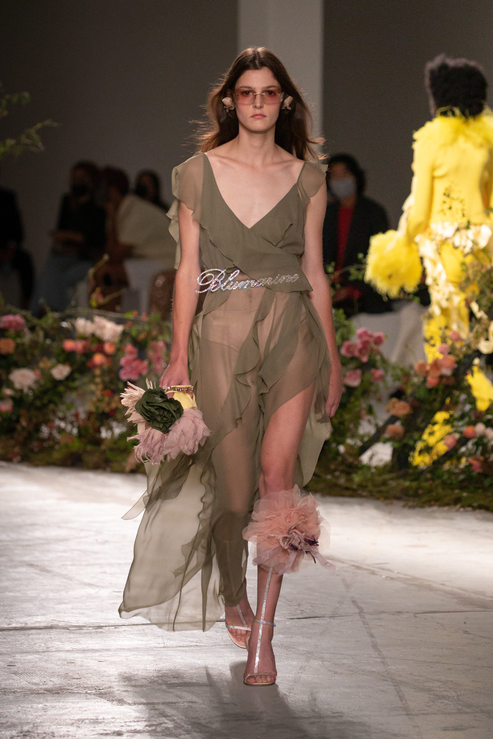 Looking at the archive through a young and personal lens, Nicola Brognano gives Blumarine Spring Summer 2021 collection an attitude of fresh femininity, of a seductive and playful ease, concocting an expressive mix of sensuality and self-confidence.
