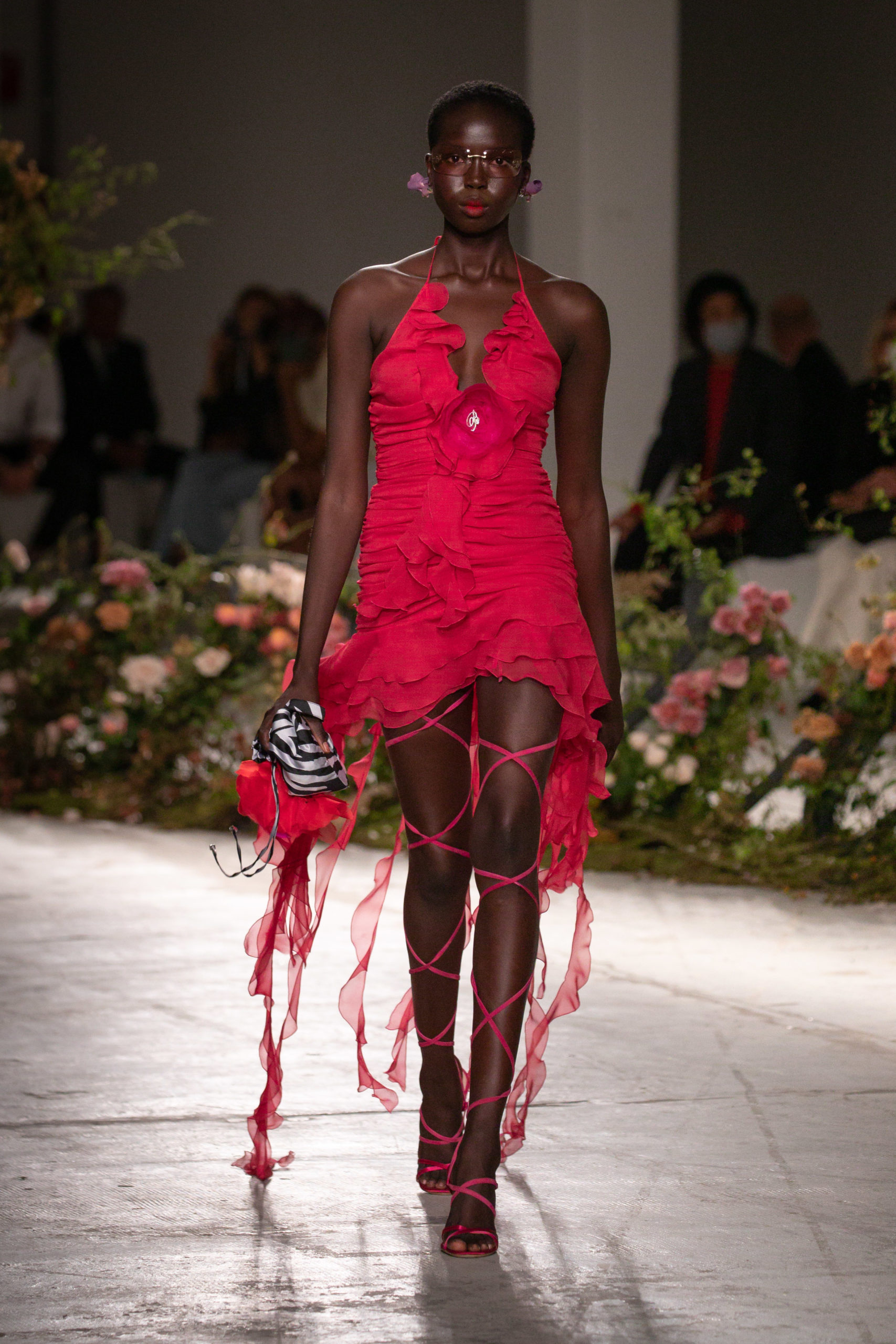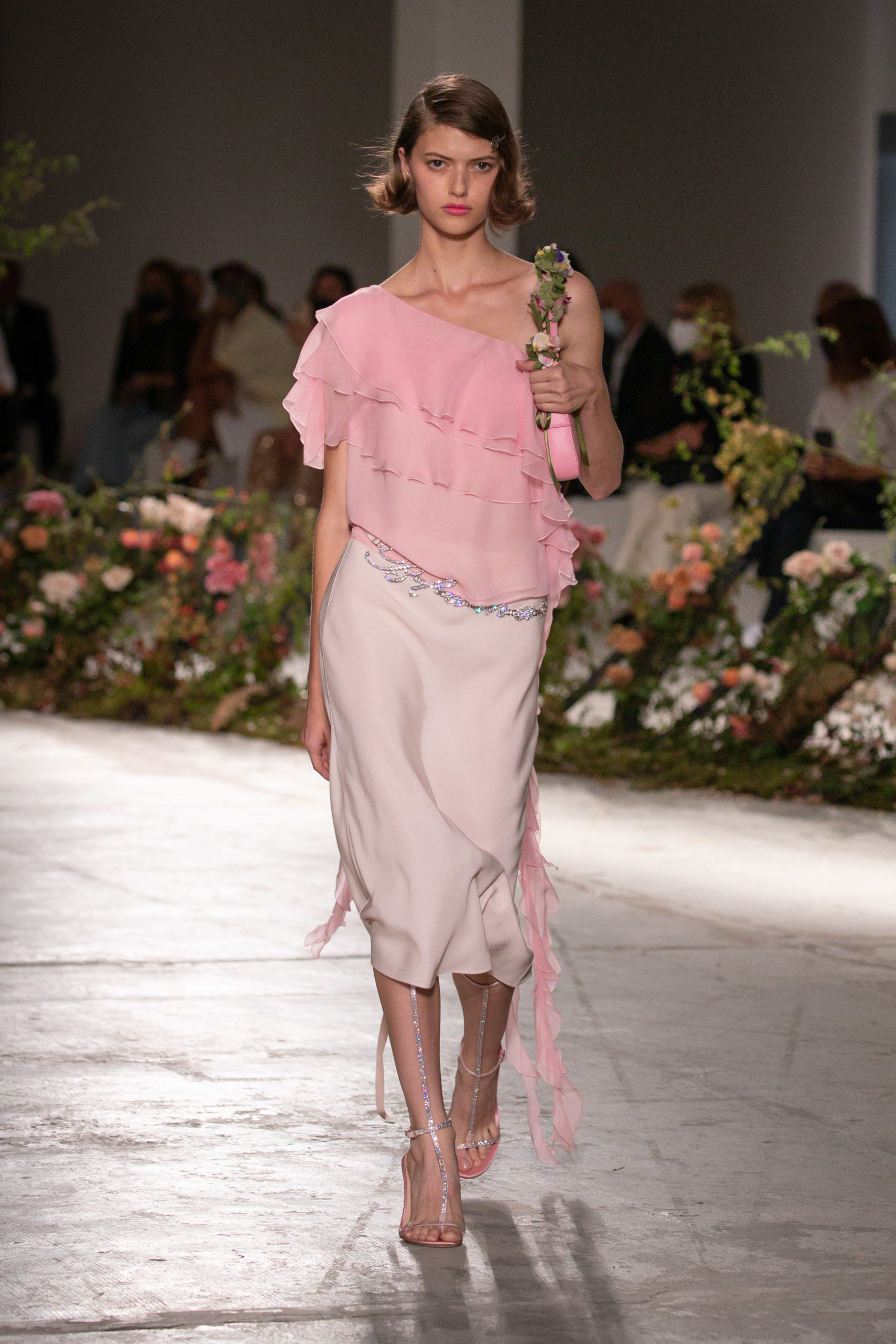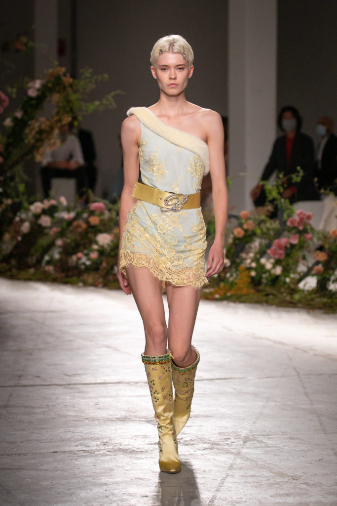 Looking at the archive through a young and personal lens, Nicola Brognano gives Blumarine Spring Summer 2021 collection an attitude of fresh femininity, of a seductive and playful ease, concocting an expressive mix of sensuality and self-confidence.