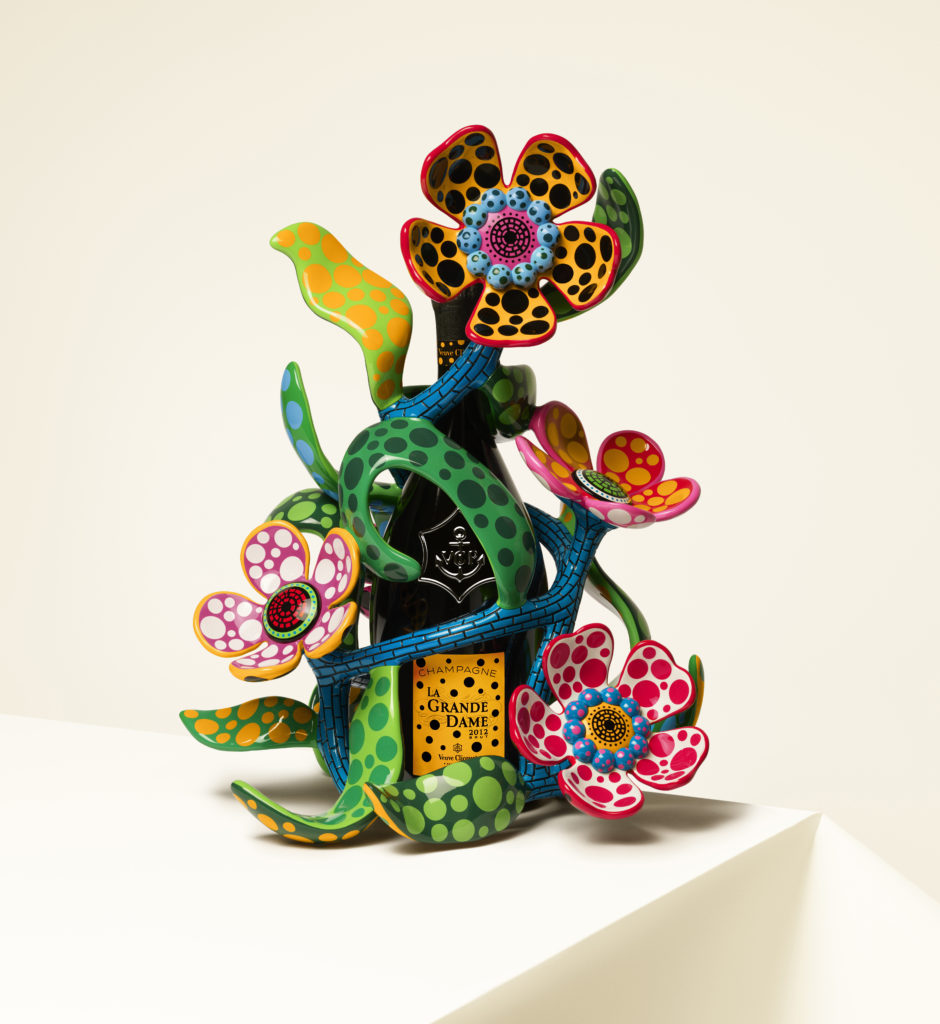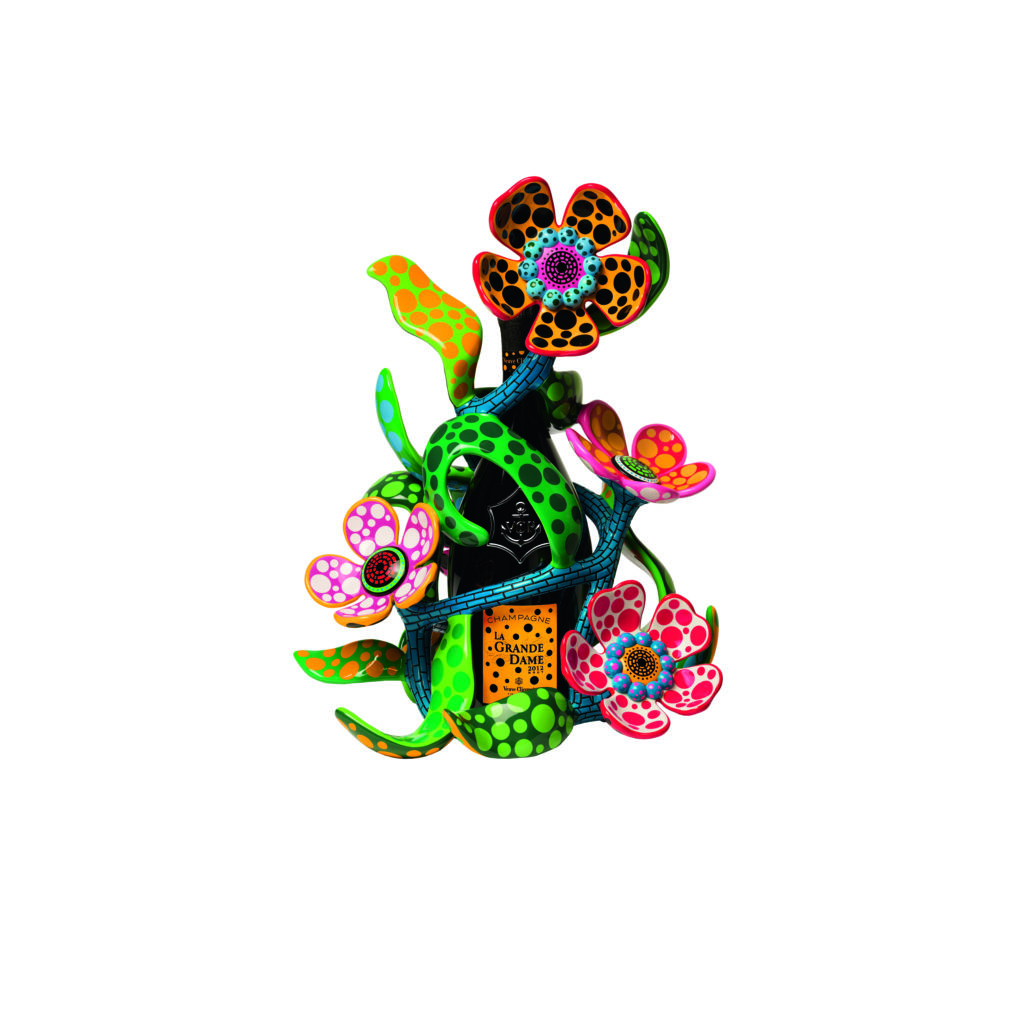 L’iconique artiste japonaise Yayoi Kusama imagine une création unique pour la Maison Veuve Clicquot, qui célèbre son nouveau millésime, La Grande Dame 2012. Cette création originale est un hommage à l’emblématique « grande dame de la Champagne », Madame Clicquot.