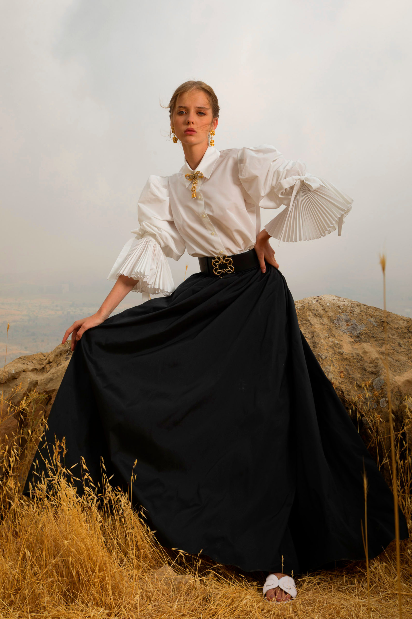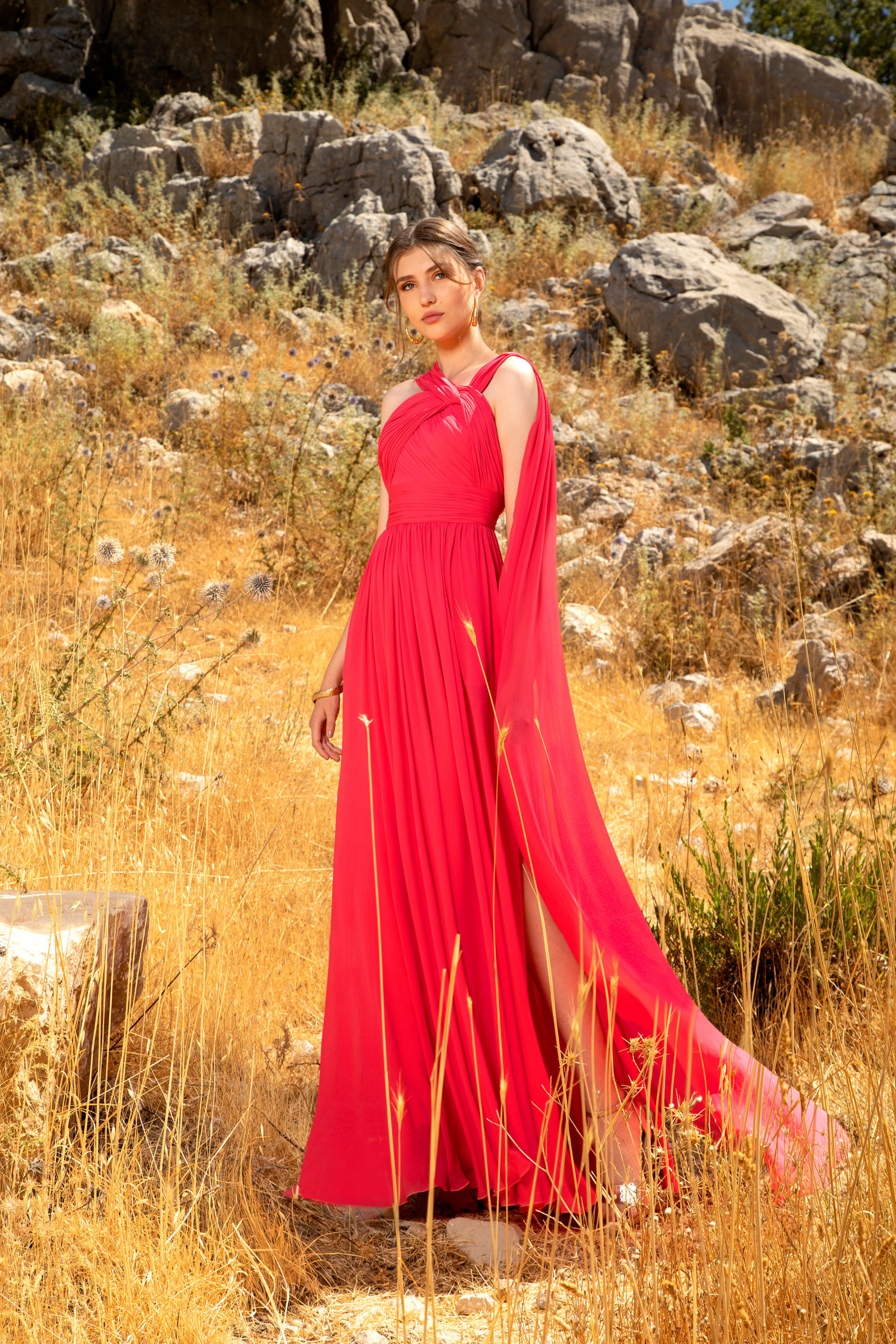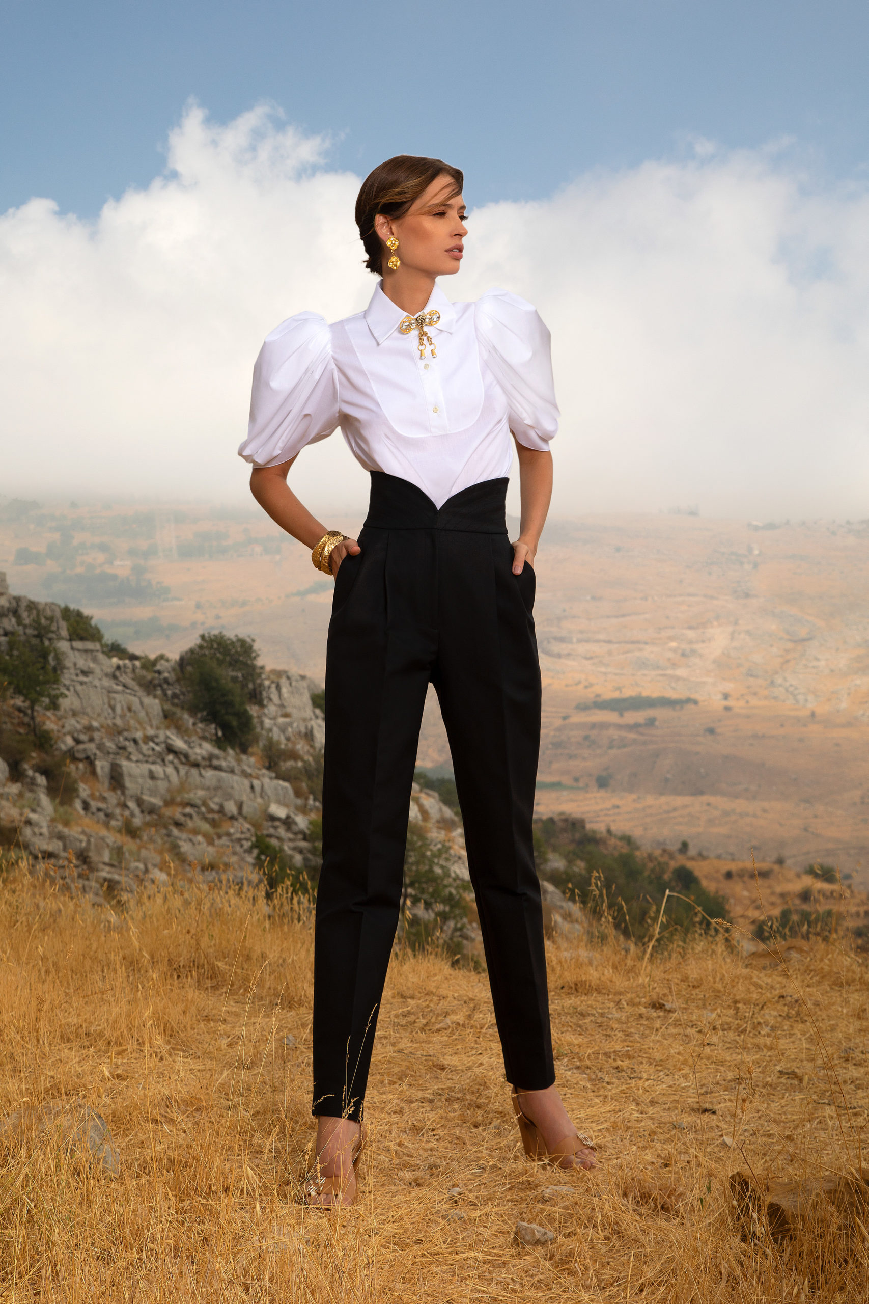 L’aube d’un jour nouveau s’annonce. Chaque femme s’épanouit et affirme son identité. Sa silhouette, fièrement dressée, crée un contraste audacieux avec le paysage aride qui l’entoure. Elle dégage une féminité passionnée et un mystère intérieur empreint de courage. Son regard perçant est résolument tourné vers un horizon empli de possibilités infinies. Elle sait que de nombreux chemins s’offrent à elle et a hâte de se mettre en route.