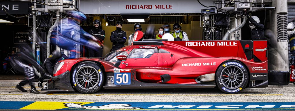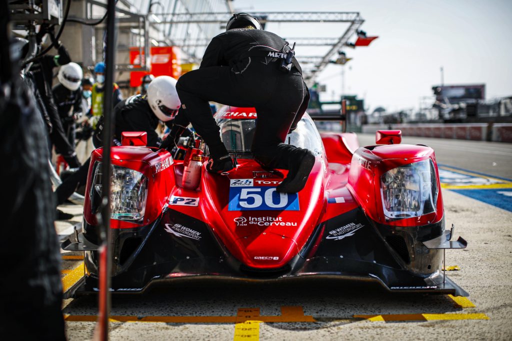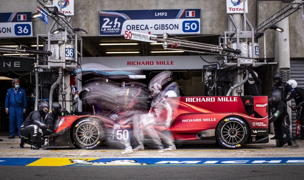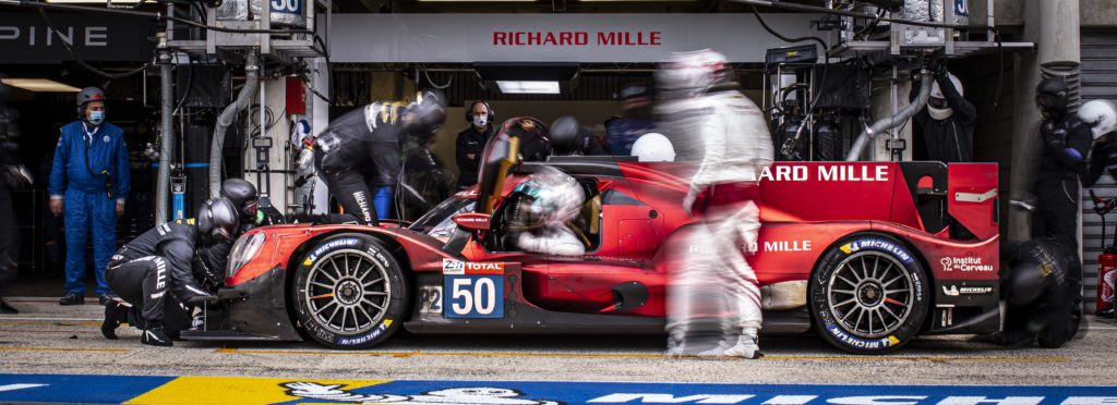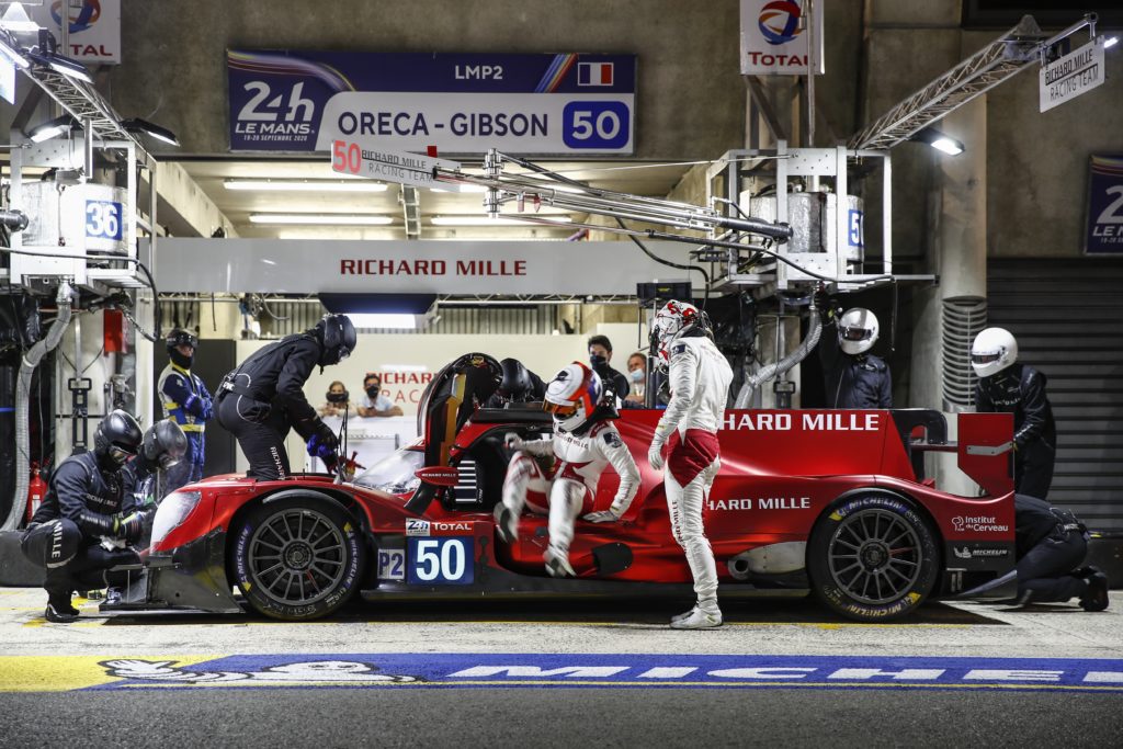 50 Calderon Tatiana (col), Florsch Sophia (ger), Visser Beitske (nld), Richard Mille Racing Team, Oreca 07-Gibson, pit stop during the free practice sessions of the 2020 24 Hours of Le Mans, 7th round of the 2019-20 FIA World Endurance Championship on the Circuit des 24 Heures du Mans, from September 16 to 20, 2020 in Le Mans, France – Photo Xavi Bonilla / DPPI