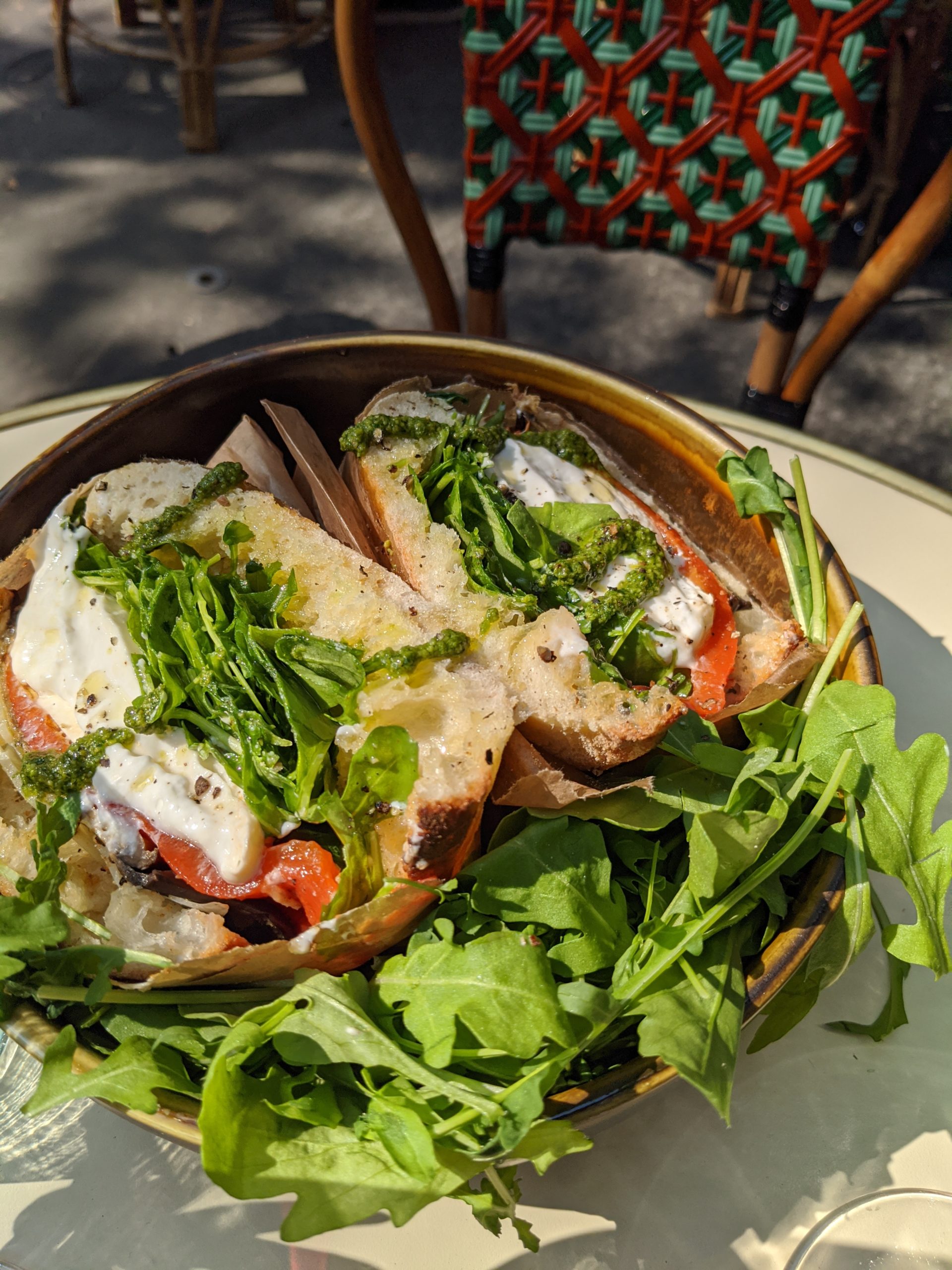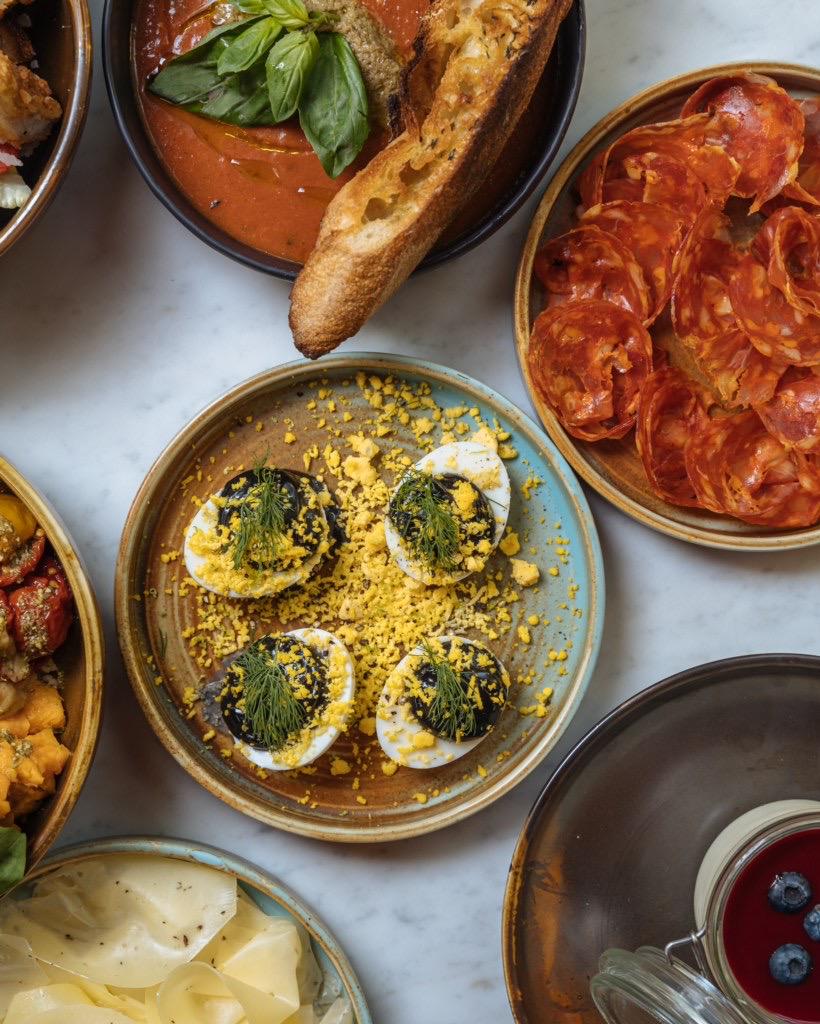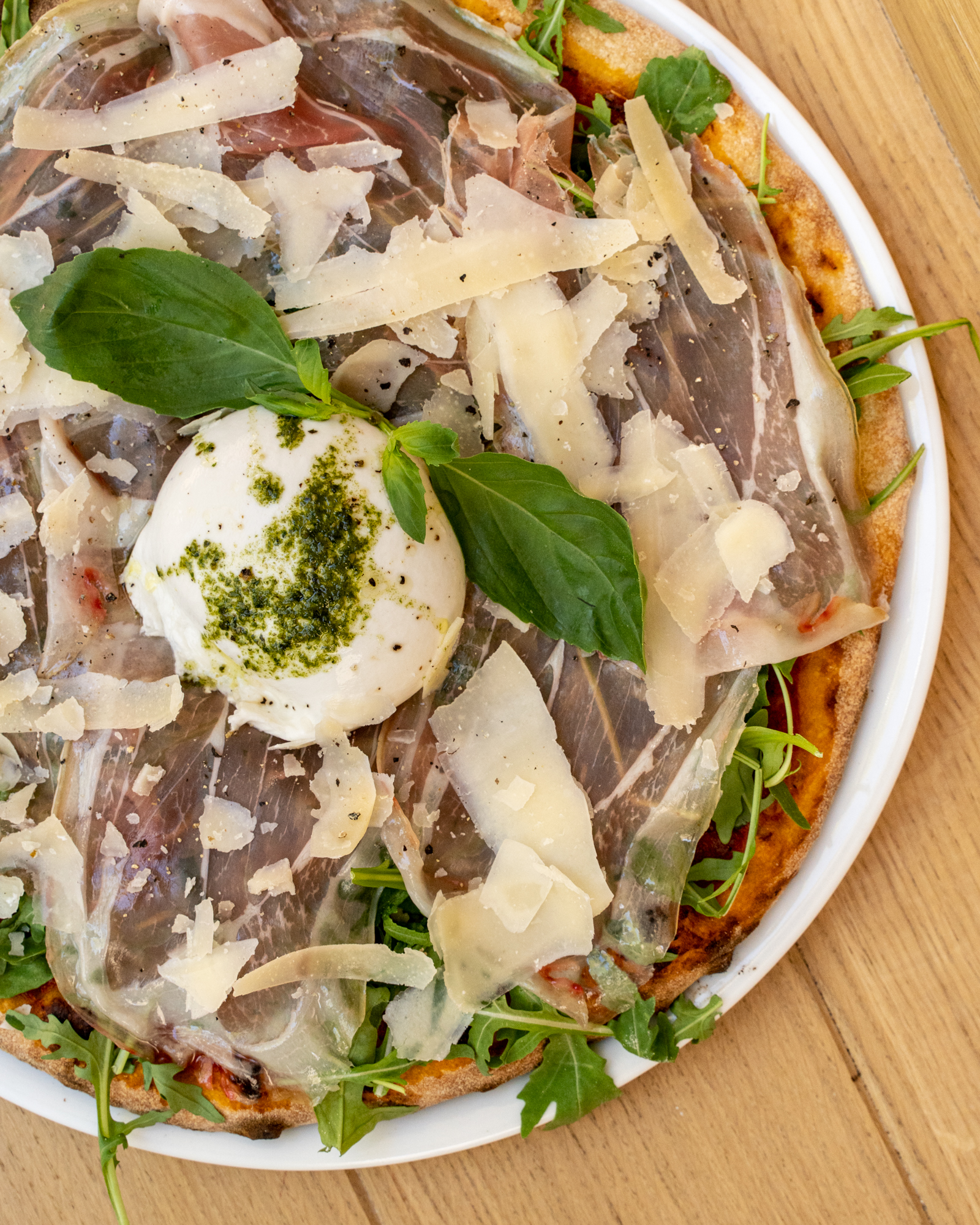 On ne présente plus les vertus du régime méditerranéen, à base de fruits, légumes, légumineuses, herbes aromatiques et huile d’olive, mais aussi des œufs, des produits laitiers, du poisson et du vin en quantité raisonnable, et un peu de viande. Voici parfaitement résumé l’esprit de la carte de Pépita, avec son accent italien prononcé, mais pas que. Les produits sont minutieusement sourcés, tracés, naturels, bios chaque fois que possibles. La carte des jus de fruits pressés minutes, celle des vins sains et des bières artisanales, affichent les mêmes engagements. Burrata, gaspacho, pata negra 100 % bellota, cecina de bœuf, une douzaine de pizze, pas plus, des salades et des sandwiches aux saveurs transalpines de mortadelle, roquette, tomates confites, fior di latte, tallegio, parmesan ou pesto, mais aussi plus orientales, boulgour, grenade et houmous. La partition est jouée par un jeune chef au parcours atypique, Julien Bonci. « Animé et passionné » sont les deux mots qui le caractérisent. Après avoir travaillé dans le luxe, le monde de la nuit et la distribution d’alcools fins, puis dans la production de films et la mode, il s’est jeté à corps perdu dans la restauration, mixant ses influences et son parcours sans œillères ni barrières. Chez Pépita, c’est le collectif qui prime, chacun apportant sa pierre à l’édifice, ensemble dans la même direction. Laquelle ? Le plaisir de faire et faire plaisir. Ça paraît aller de soi mais ça demande beaucoup de conviction et de professionnalisme. Chez Pépita, on n’en manque pas.