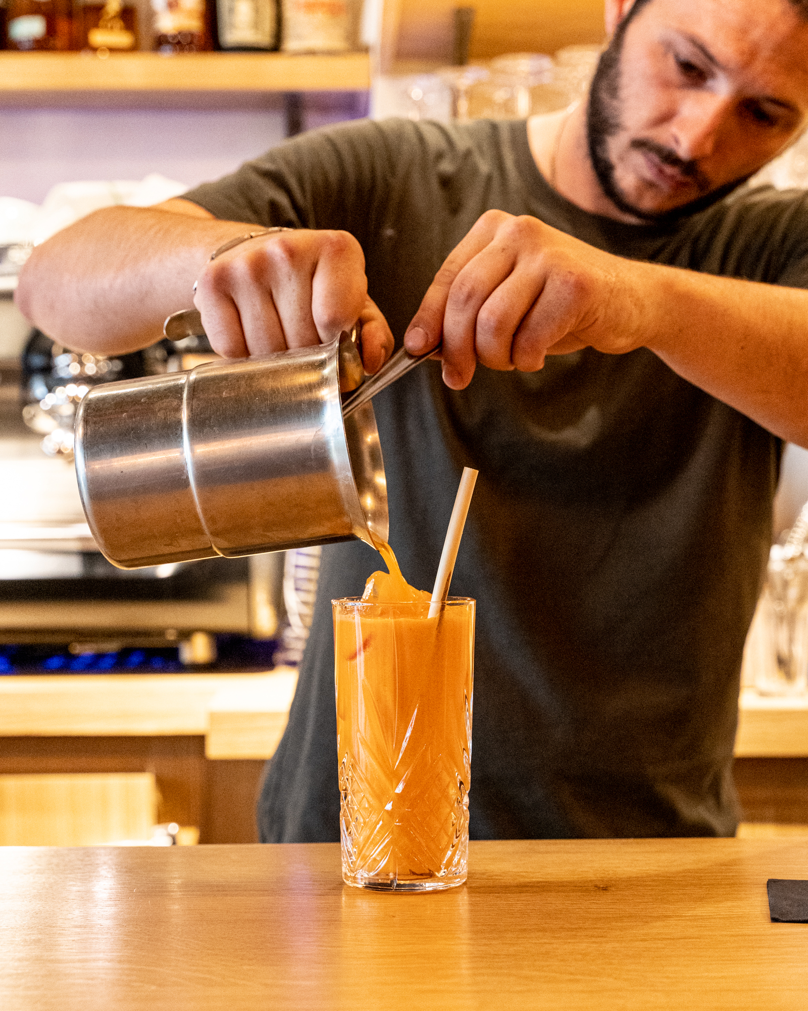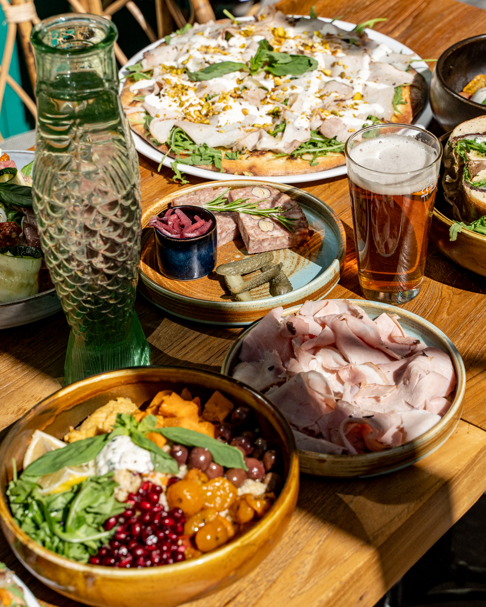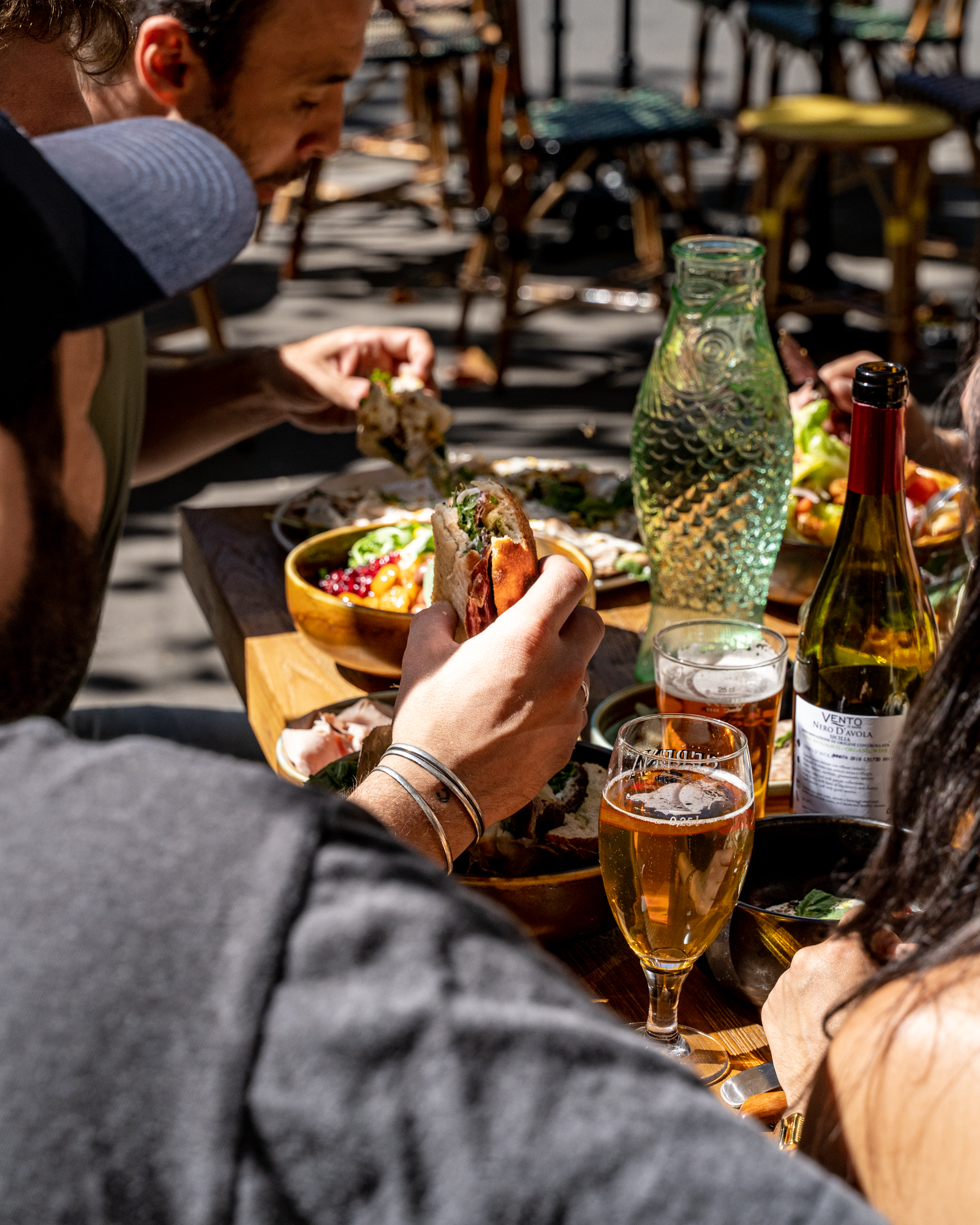 On ne présente plus les vertus du régime méditerranéen, à base de fruits, légumes, légumineuses, herbes aromatiques et huile d’olive, mais aussi des œufs, des produits laitiers, du poisson et du vin en quantité raisonnable, et un peu de viande. Voici parfaitement résumé l’esprit de la carte de Pépita, avec son accent italien prononcé, mais pas que. Les produits sont minutieusement sourcés, tracés, naturels, bios chaque fois que possibles. La carte des jus de fruits pressés minutes, celle des vins sains et des bières artisanales, affichent les mêmes engagements. Burrata, gaspacho, pata negra 100 % bellota, cecina de bœuf, une douzaine de pizze, pas plus, des salades et des sandwiches aux saveurs transalpines de mortadelle, roquette, tomates confites, fior di latte, tallegio, parmesan ou pesto, mais aussi plus orientales, boulgour, grenade et houmous. La partition est jouée par un jeune chef au parcours atypique, Julien Bonci. « Animé et passionné » sont les deux mots qui le caractérisent. Après avoir travaillé dans le luxe, le monde de la nuit et la distribution d’alcools fins, puis dans la production de films et la mode, il s’est jeté à corps perdu dans la restauration, mixant ses influences et son parcours sans œillères ni barrières. Chez Pépita, c’est le collectif qui prime, chacun apportant sa pierre à l’édifice, ensemble dans la même direction. Laquelle ? Le plaisir de faire et faire plaisir. Ça paraît aller de soi mais ça demande beaucoup de conviction et de professionnalisme. Chez Pépita, on n’en manque pas.