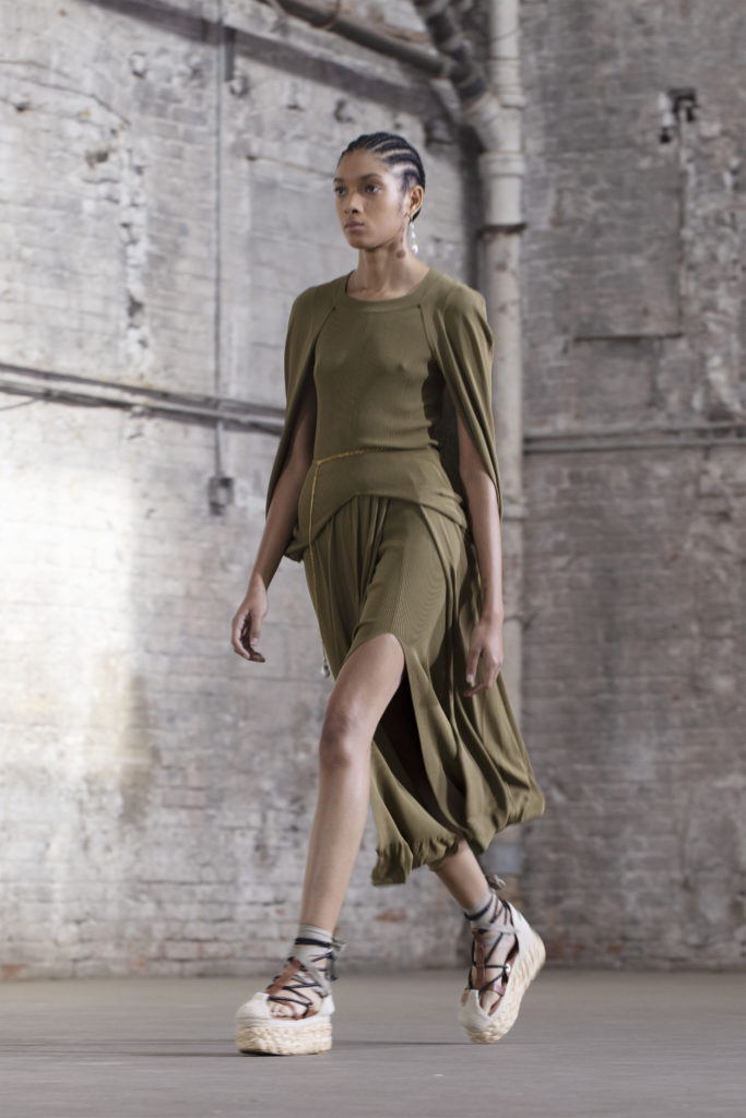 Drawing on Dune, a futuristic science fiction novel that examines the relationship between man and nature, Joseph leaned heavily on the notion of drapey, soft, and earthy garments that were described throughout the tome—a starting point for the collection.