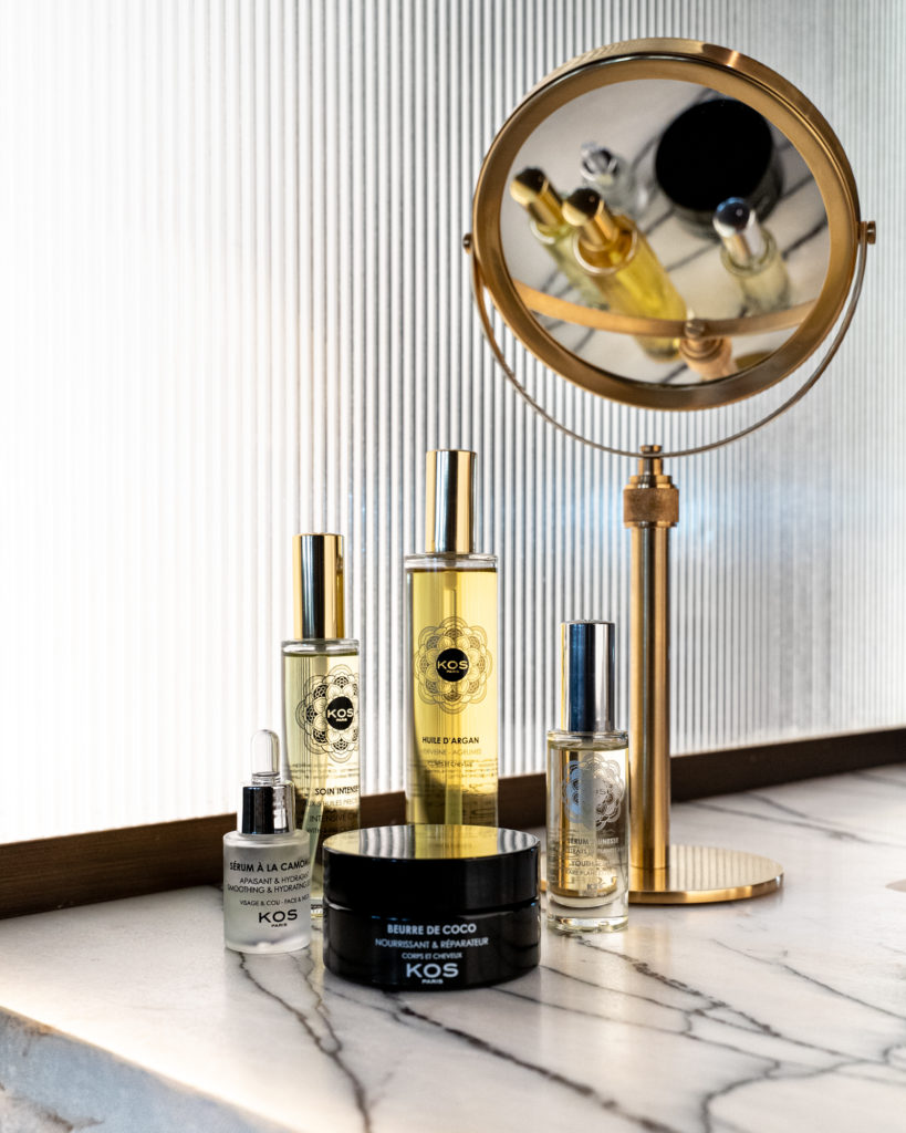 Kos Paris partage les valeurs du Brach : énergie, équilibre et générosité, un univers entre exotisme et expérience sensorielle. Pour chaque soin, Kos Paris utilise des ingrédients naturels et issus de l’agriculture biologique en provenance de plusieurs régions du monde pour des protocoles précieux et apaisants.