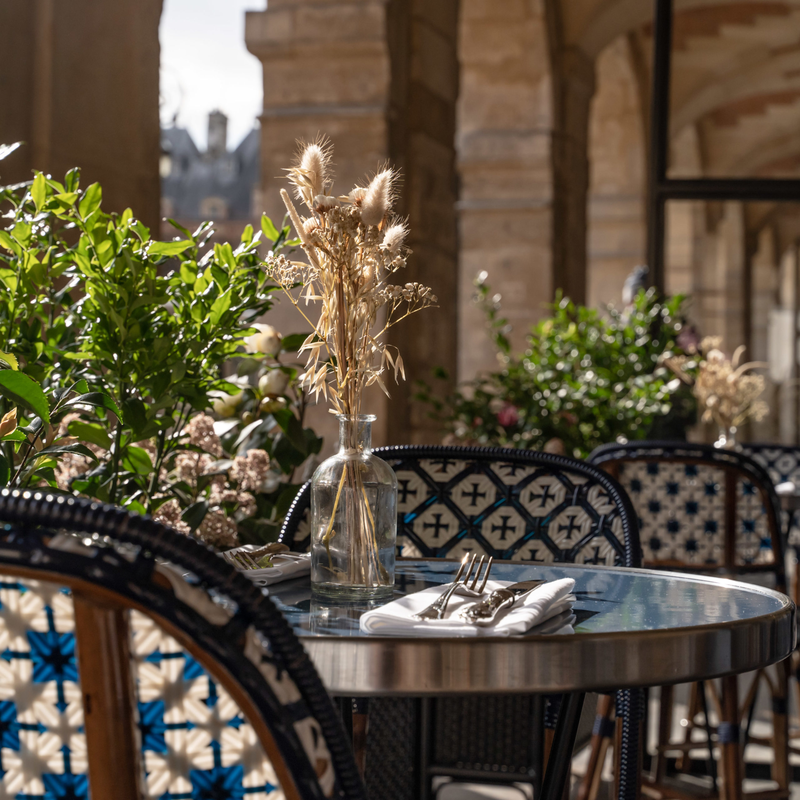 Au cœur des jardins éponymes, Palais-Royal Le Restaurant, première étoile au Guide Michelin, rend hommage à son environnement. Les grandes baies vitrées donnant sur le jardin créent une ambiance contemporaine. Dès les beaux jours, la terrasse se transforme pour accueillir déjeuners et diners au cœur des jardins. Avec une volonté de retrouver des goûts francs, le Chef crée une cuisine lisible et sobre qui s’accompagne d’une carte de cocktails créatifs. Le cérémonial est allégé. L’atmosphère et le service sont décontractés et simples. Serveurs en chino et baskets aux pieds. L’élégance est toujours présente. Elle et se cache dans un sourire, une attention, un détail, qui font de cette table, une adresse étoilée. Une nouvelle vision conviviale et détendue de la table gastronomique.