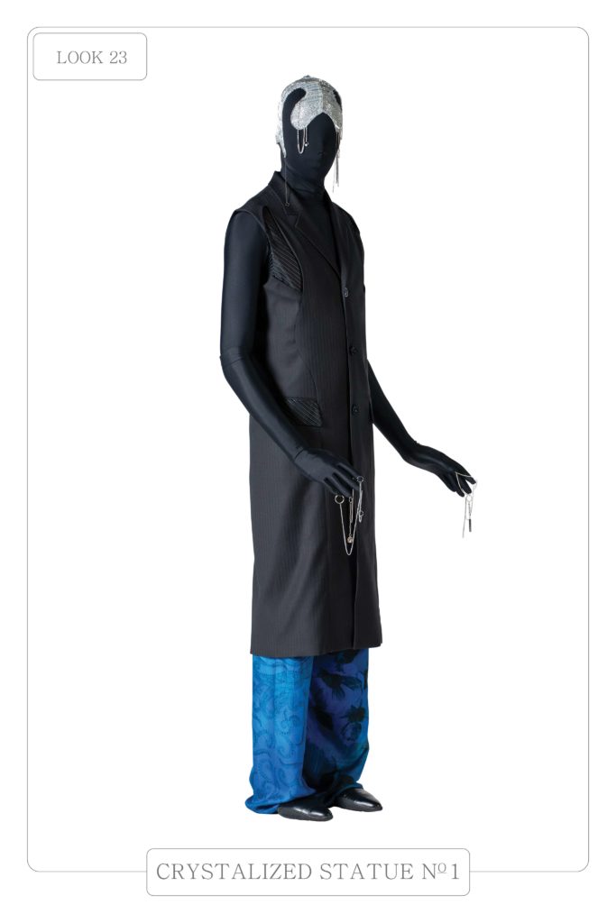 Two chameleonic figures transition through these different worlds as their garments and appearances adapt to the situations they encounter. There are three associated ‘clans’: close-knit groups of people who both shape and support the central characters’ journey, as keepers of their fate. This transition reflects a human being’s mobility in real life, where one has the power to change their style or mode of being, to transform or to blend in, building personal narratives through the garments that they choose to wear.