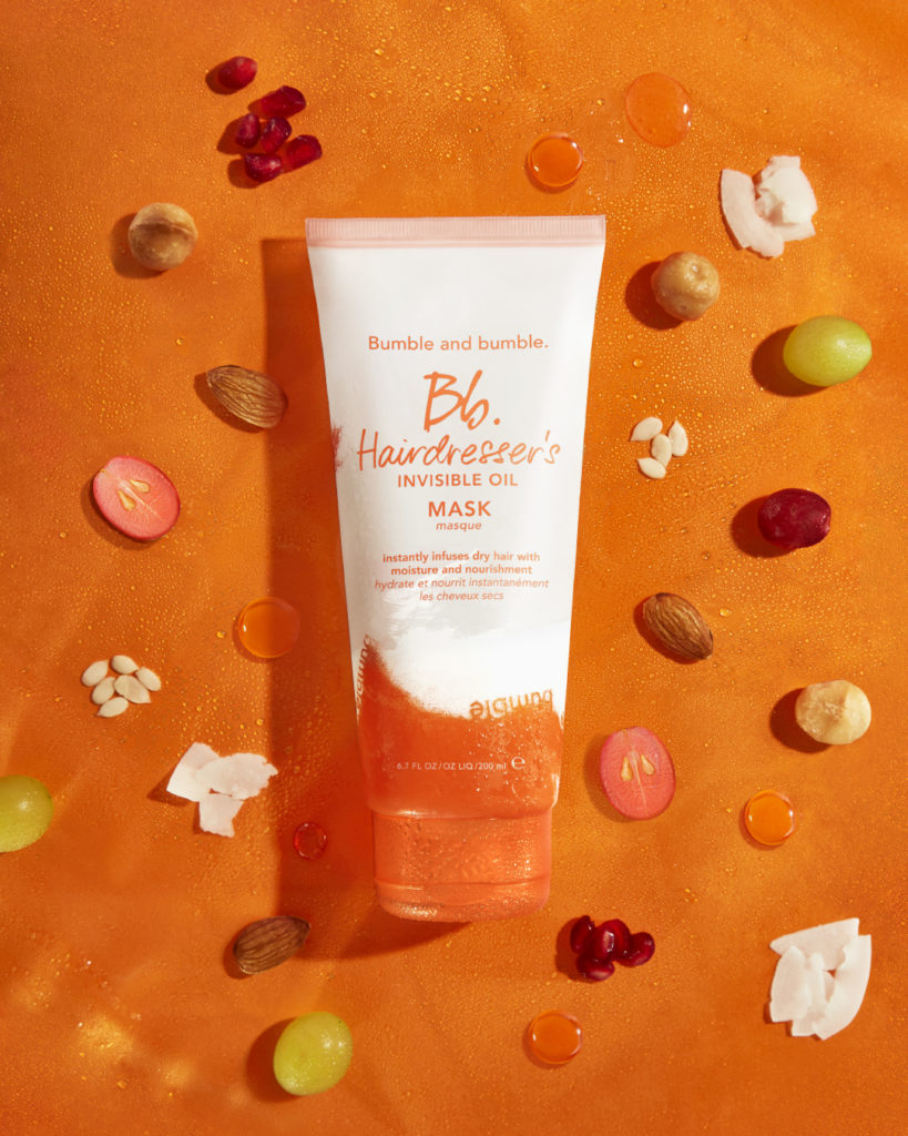 Hairdresser’s Invisible Oil Masque est un masque innovant et ultra-nourrissant qui soigne les cheveux secs pour une hydratation qui dure jusqu’à 72 heures. Hairdresser’s Invisible Oil Masque est infusé de notre élixir signature aux 6 huiles ultra-légères : coco, argan, amande douce, pépin de raisin, noix de macadamia et graine de carthame. De plus, ce soin est boosté par un mélange d’huile de moringa et d’extraits de pépins de grenade pour encore plus d’hydratation. Les cheveux secs à très secs et déshydratés vont adorer ce nouveau masque. Multi-bénéfices, il démêle, dompte les frisottis, apporte de la brillance, et restaure l’hydratation des cheveux secs et abîmés – en plus, il est adapté aux cheveux colorés. Comme tous les produits Bumble and bumble, ce masque est cruelty free, non testé sur les animaux. Sans parabène, phtalates, sulfates, huiles minérales et formaldéhyde.