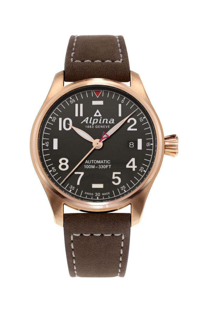 Pour répondre à la demande des nombreux collectionneurs qui ont fait de la Startimer Pilot Automatic le succès d’Alpina, la Maison a repris les cinq designs iconiques qui en ont forgé la légende : un boîtier en acier plaqué or rose paré d’un cadran gris et habillé d’un bracelet en cuir veau brun, deux versions en acier avec un cadran blanc ou bleu marine finalisées d’un bracelet en cuir de veau noir, ainsi qu’une troisième en acier revêtu de PVD titane, montée sur un bracelet en cuir de veau noir.