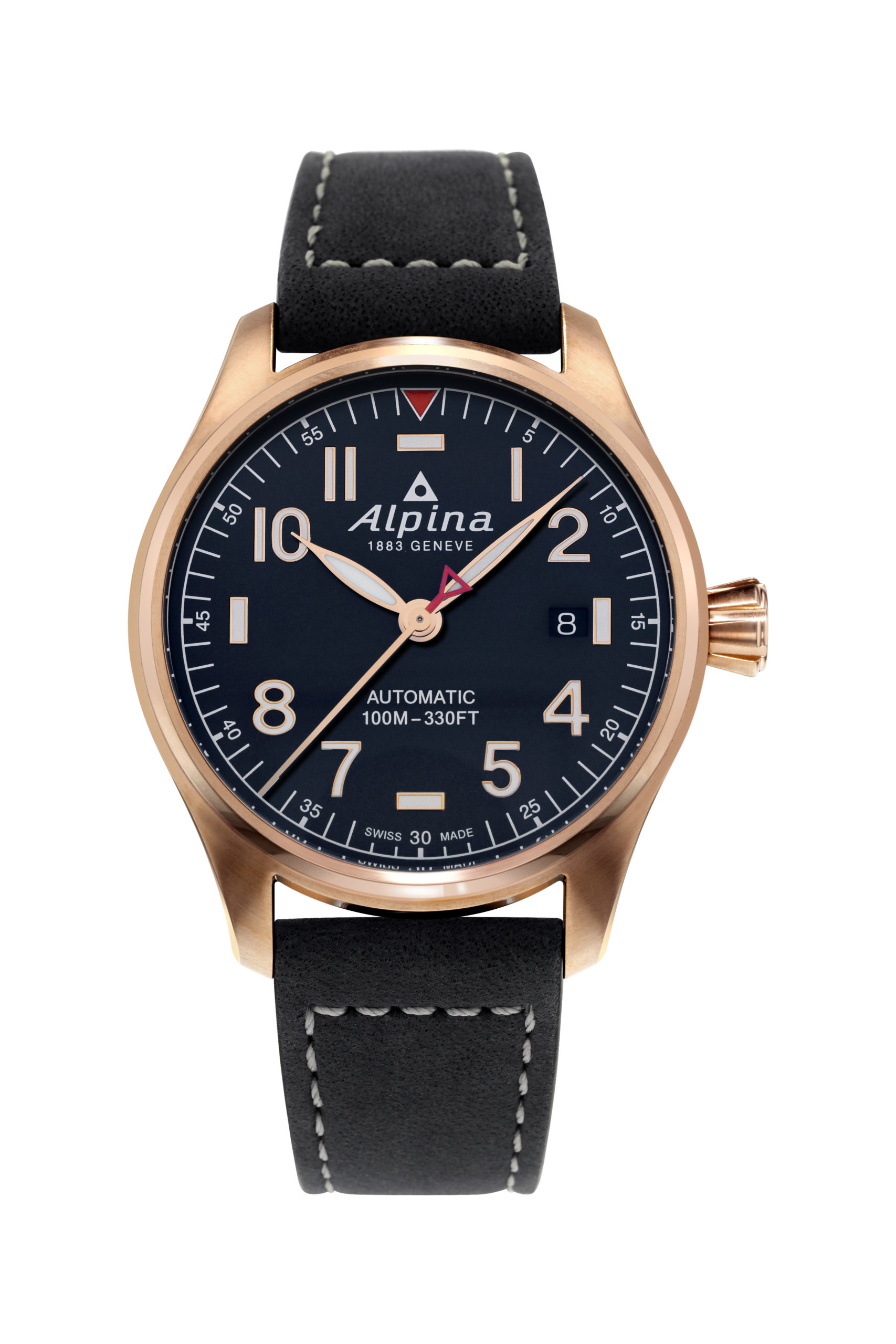 Pour répondre à la demande des nombreux collectionneurs qui ont fait de la Startimer Pilot Automatic le succès d’Alpina, la Maison a repris les cinq designs iconiques qui en ont forgé la légende : un boîtier en acier plaqué or rose paré d’un cadran gris et habillé d’un bracelet en cuir veau brun, deux versions en acier avec un cadran blanc ou bleu marine finalisées d’un bracelet en cuir de veau noir, ainsi qu’une troisième en acier revêtu de PVD titane, montée sur un bracelet en cuir de veau noir.