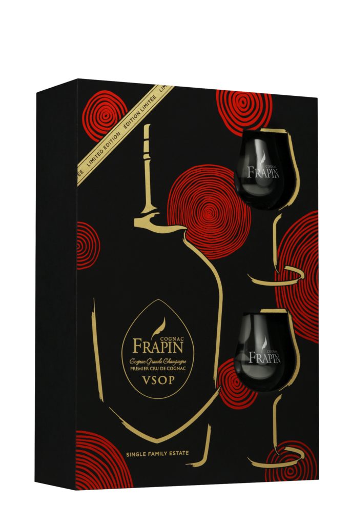 Quant au nouveau coffret VSOP, issu exclusivement du domaine viticole de 240 ha situé au coeur du Premier Cru de Cognac, il contient la carafe VSOP ainsi que deux verres tulipe. Issu exclusivement du domaine viticole de 240ha situé au cœur du Premier Cru de Cognac, ce VSOP bénéficie d’un savoir faire traditionnel séculaire de la famille Frapin. Récolté, distillé sur lies et vieilli au domaine. Le nouveau coffret VSOP contient la carafe VSOP ainsi que deux verres tulipe. Le tout est contenu dans un packaging éco-conçu en mono-matériaux recyclables et réutilisables. Il est produit en Europe et réalisé à partir de carton 100% recyclé et de colles sans solvant. La cale est amovible et en carton 100% recyclable. Le décor en marquage à chaud rappelle, de part ses formes, la rondeur et la générosité des cognacs Frapin. La technologie innovante et le design moderne de ce coffret en font le cadeau idéal pour les fêtes mais aussi pour tous les moments de l’année que vous souhaitez célébrer. Harmonieux, équilibré, raffinement aromatique avec une persistance des saveurs et notamment du fruit (orange). La finale est épicée avec des notes de cannelle ou de poivre.
