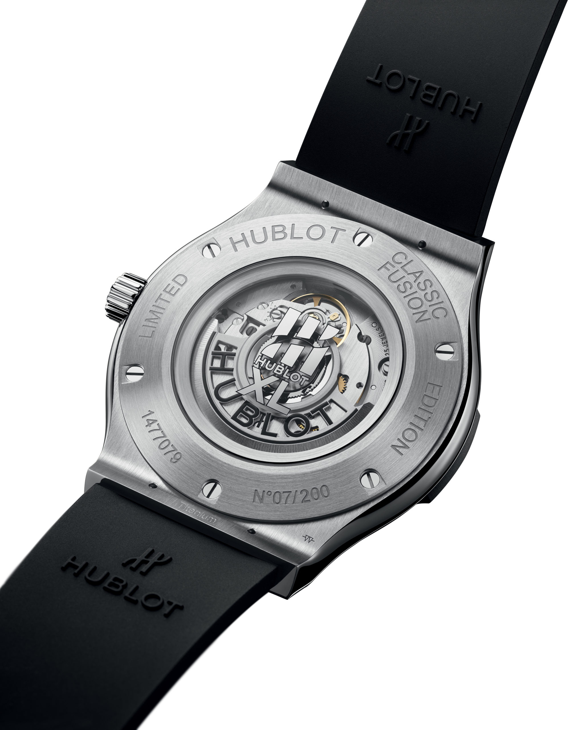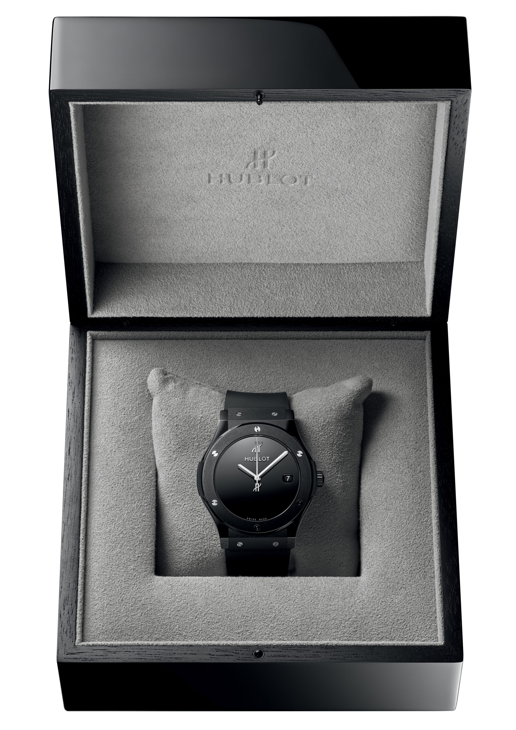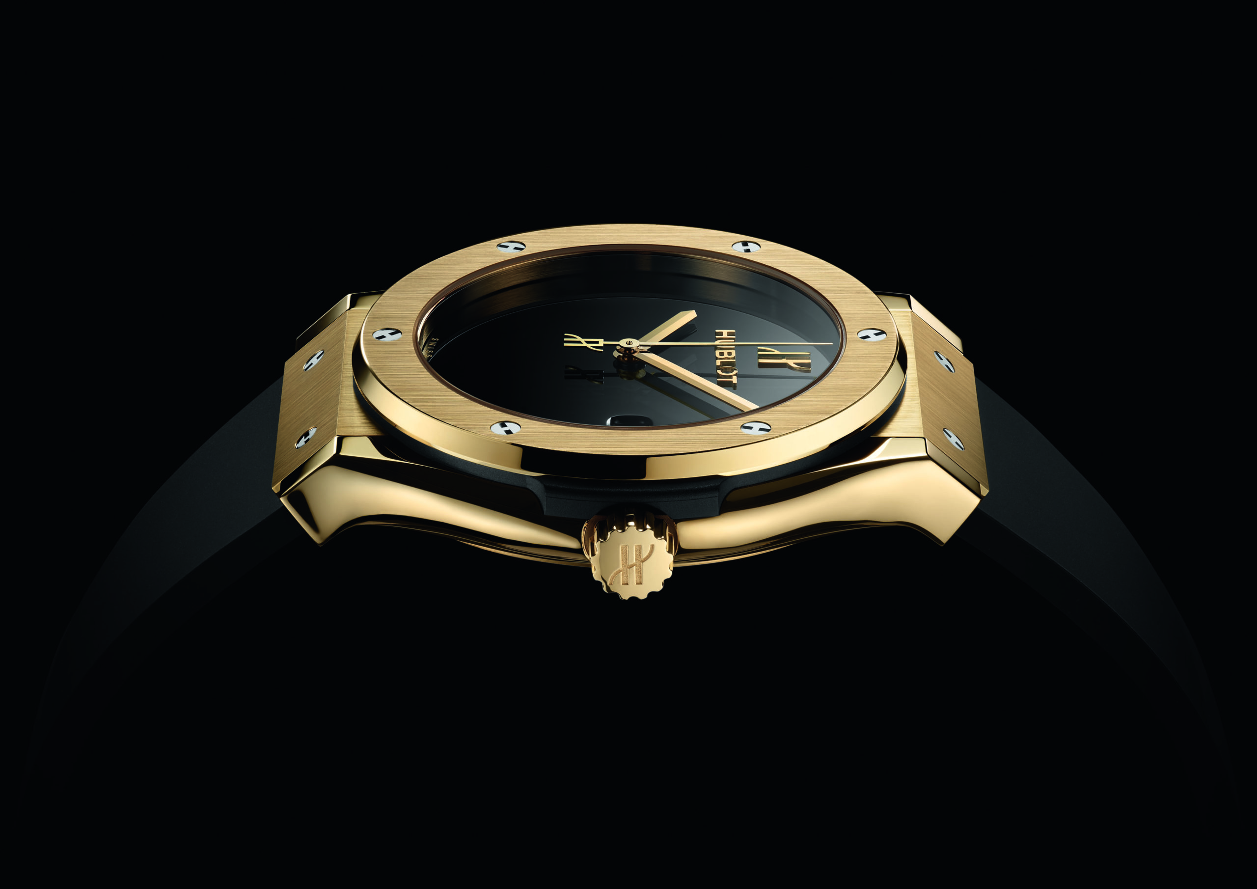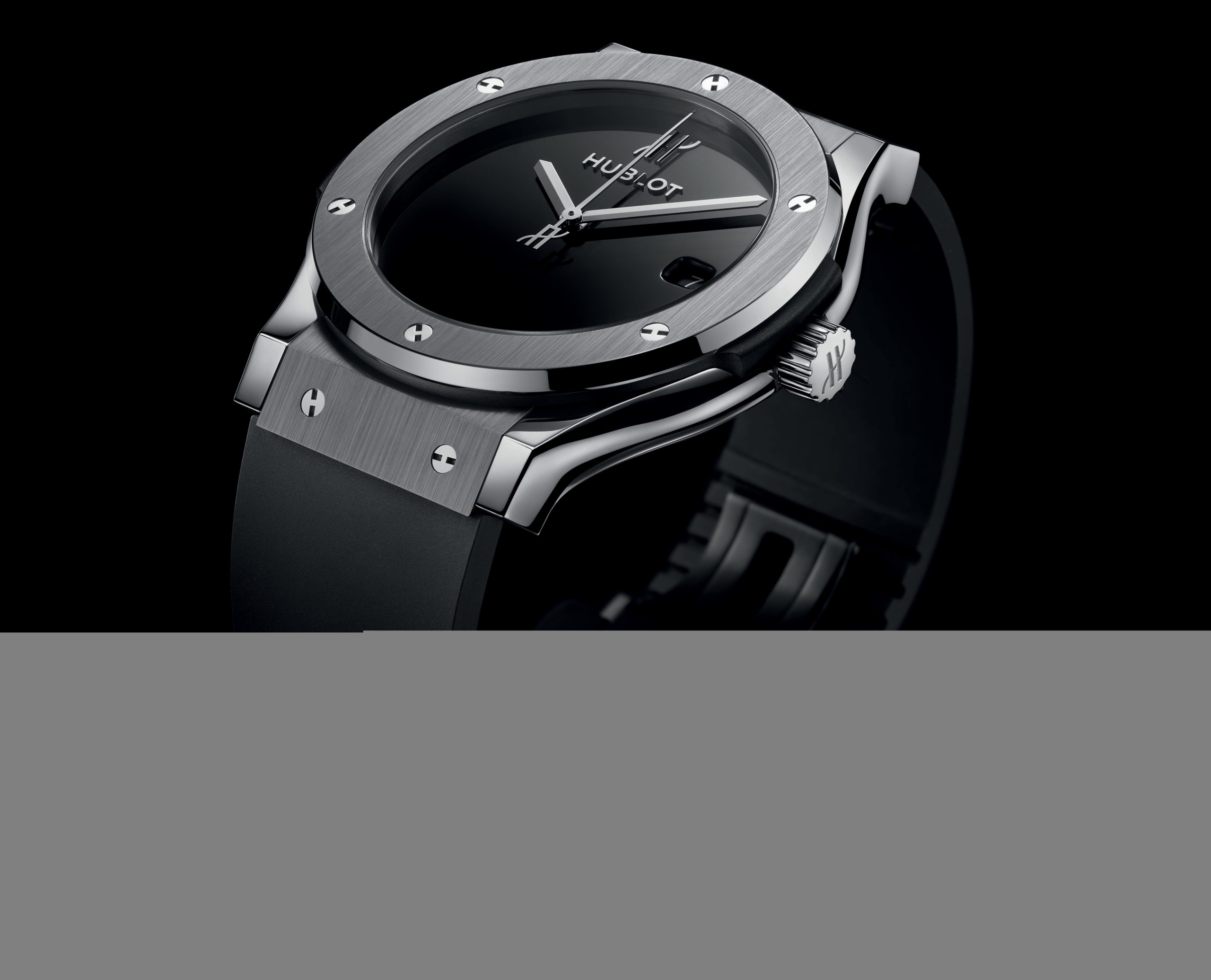 Les nouvelles Classic Fusion expriment l’élégance, le raffinement intemporels de la 1980 Classic Original et la modernité de quarante ans d’exploration et d’innovation sans cesse renouvelées. Le cadran noir laqué poli affiche une ultra sobriété distraite uniquement par la présence des aiguilles facettées, du logo H et Hublot en applique. Le boîtier de 45 mm façonné en or jaune, titane ou céramique noire est traversé par les fameuses vis sur la lunette et dotés d’un fond glace saphir, le tout porté sur l’immuable bracelet en caoutchouc aisément ajustable au poignet et offrant un porté agréable grâce au fermoir triple déployant. Ces détails devenus signature actualisent la première montre Hublot et laissent penser que ces garde-temps traverseront le temps avec autant de caractère.