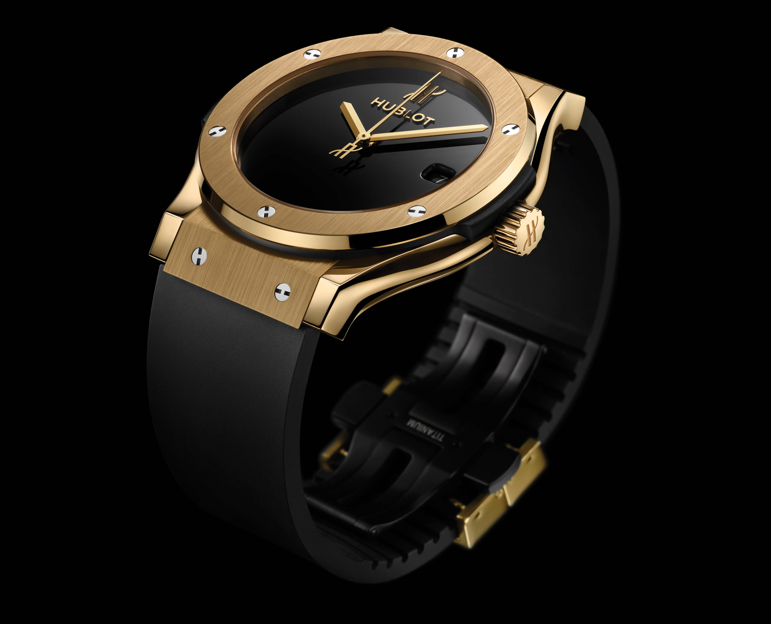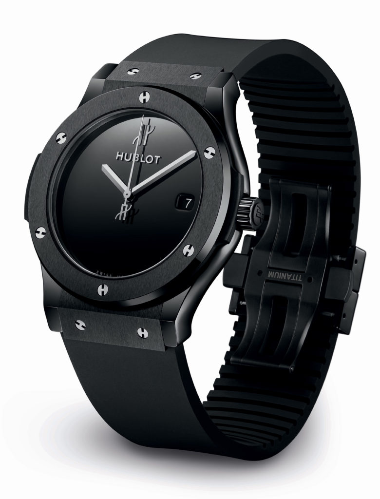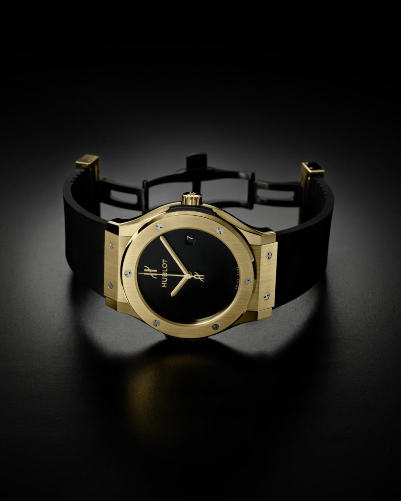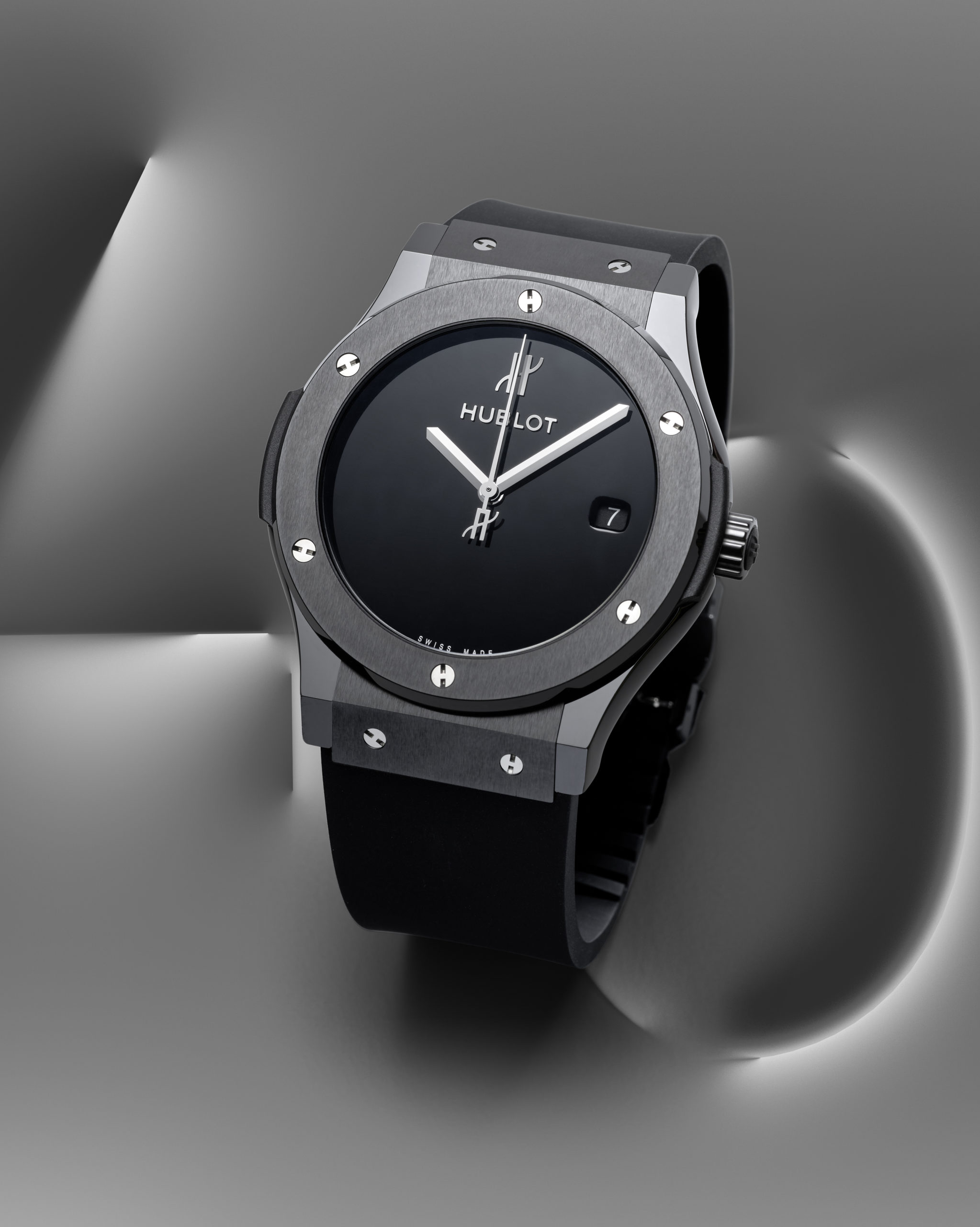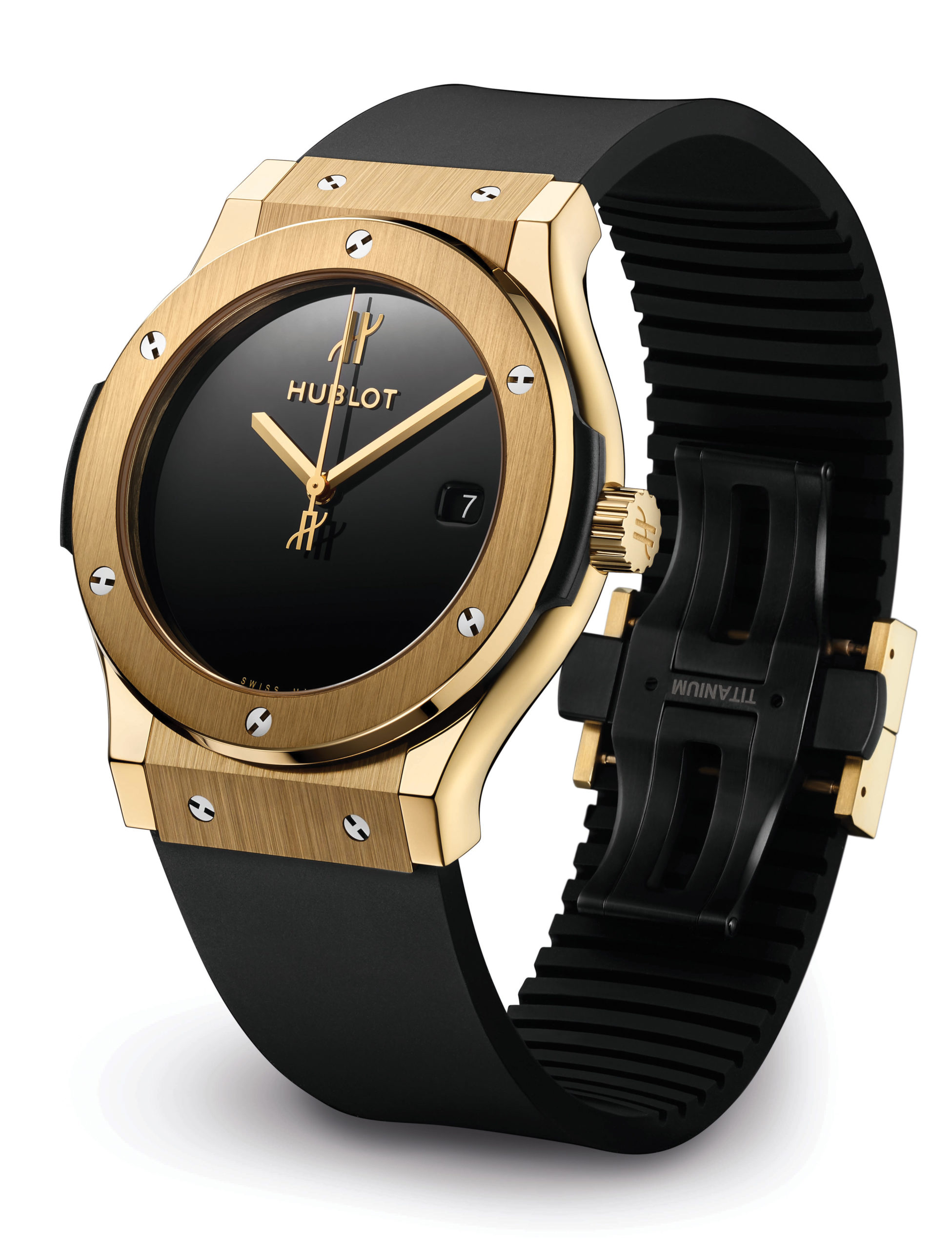 Les nouvelles Classic Fusion expriment l’élégance, le raffinement intemporels de la 1980 Classic Original et la modernité de quarante ans d’exploration et d’innovation sans cesse renouvelées. Le cadran noir laqué poli affiche une ultra sobriété distraite uniquement par la présence des aiguilles facettées, du logo H et Hublot en applique. Le boîtier de 45 mm façonné en or jaune, titane ou céramique noire est traversé par les fameuses vis sur la lunette et dotés d’un fond glace saphir, le tout porté sur l’immuable bracelet en caoutchouc aisément ajustable au poignet et offrant un porté agréable grâce au fermoir triple déployant. Ces détails devenus signature actualisent la première montre Hublot et laissent penser que ces garde-temps traverseront le temps avec autant de caractère.