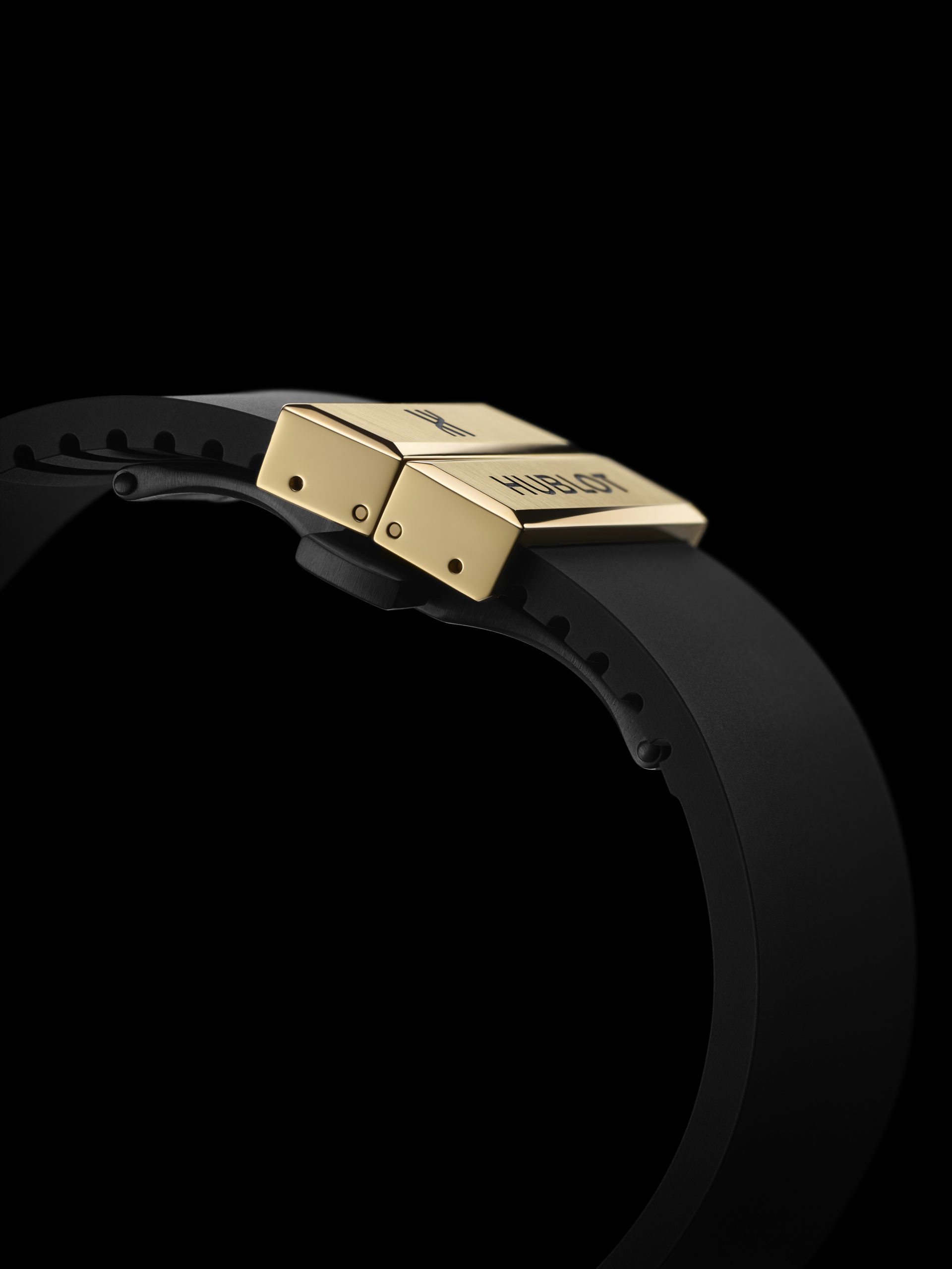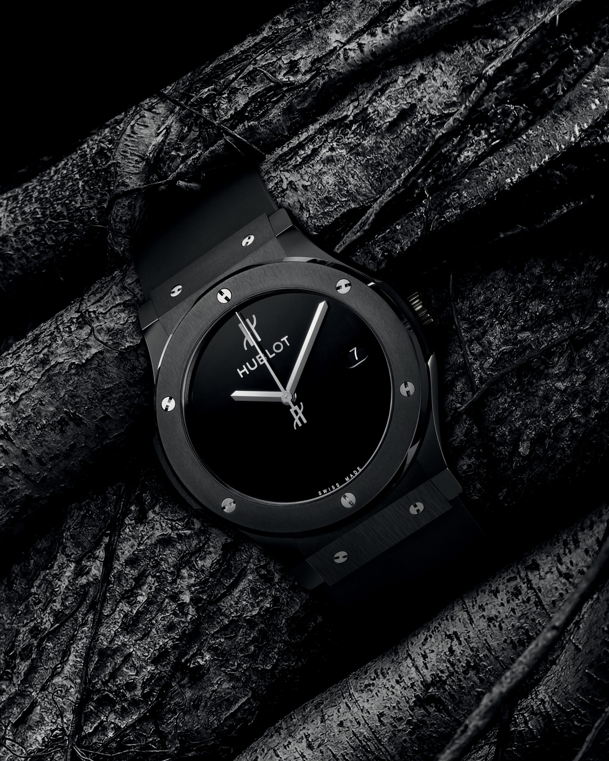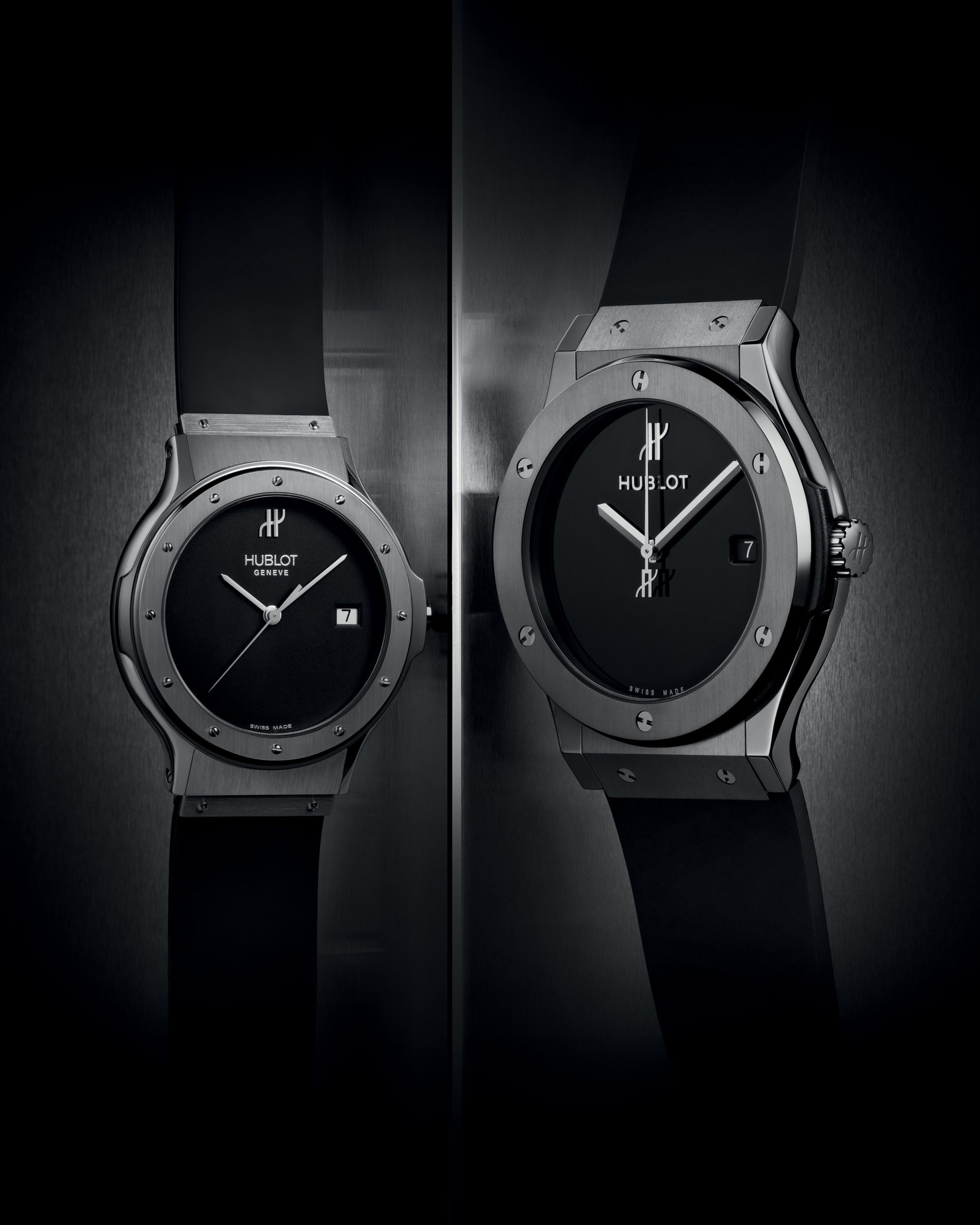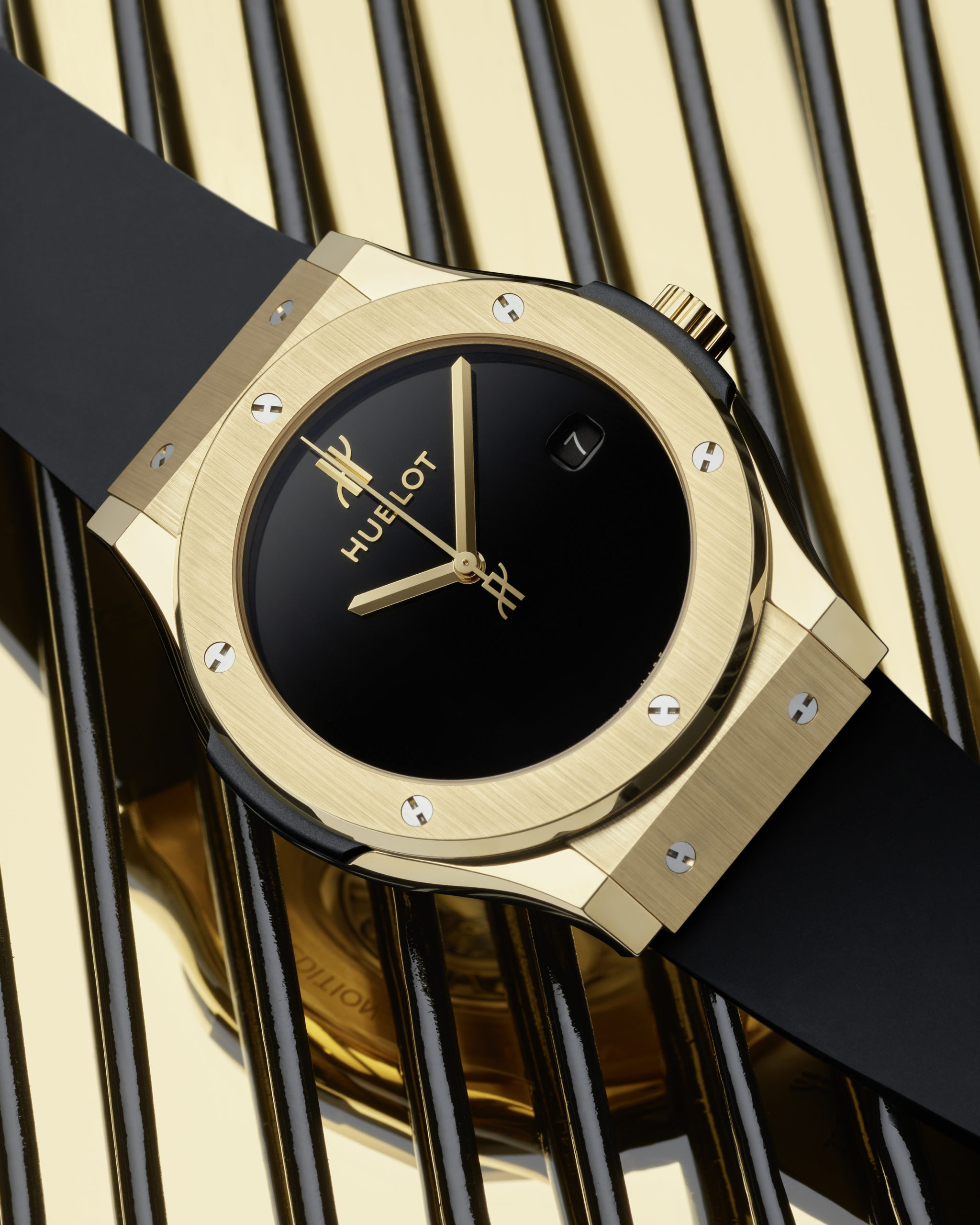 Les nouvelles Classic Fusion expriment l’élégance, le raffinement intemporels de la 1980 Classic Original et la modernité de quarante ans d’exploration et d’innovation sans cesse renouvelées. Le cadran noir laqué poli affiche une ultra sobriété distraite uniquement par la présence des aiguilles facettées, du logo H et Hublot en applique. Le boîtier de 45 mm façonné en or jaune, titane ou céramique noire est traversé par les fameuses vis sur la lunette et dotés d’un fond glace saphir, le tout porté sur l’immuable bracelet en caoutchouc aisément ajustable au poignet et offrant un porté agréable grâce au fermoir triple déployant. Ces détails devenus signature actualisent la première montre Hublot et laissent penser que ces garde-temps traverseront le temps avec autant de caractère.