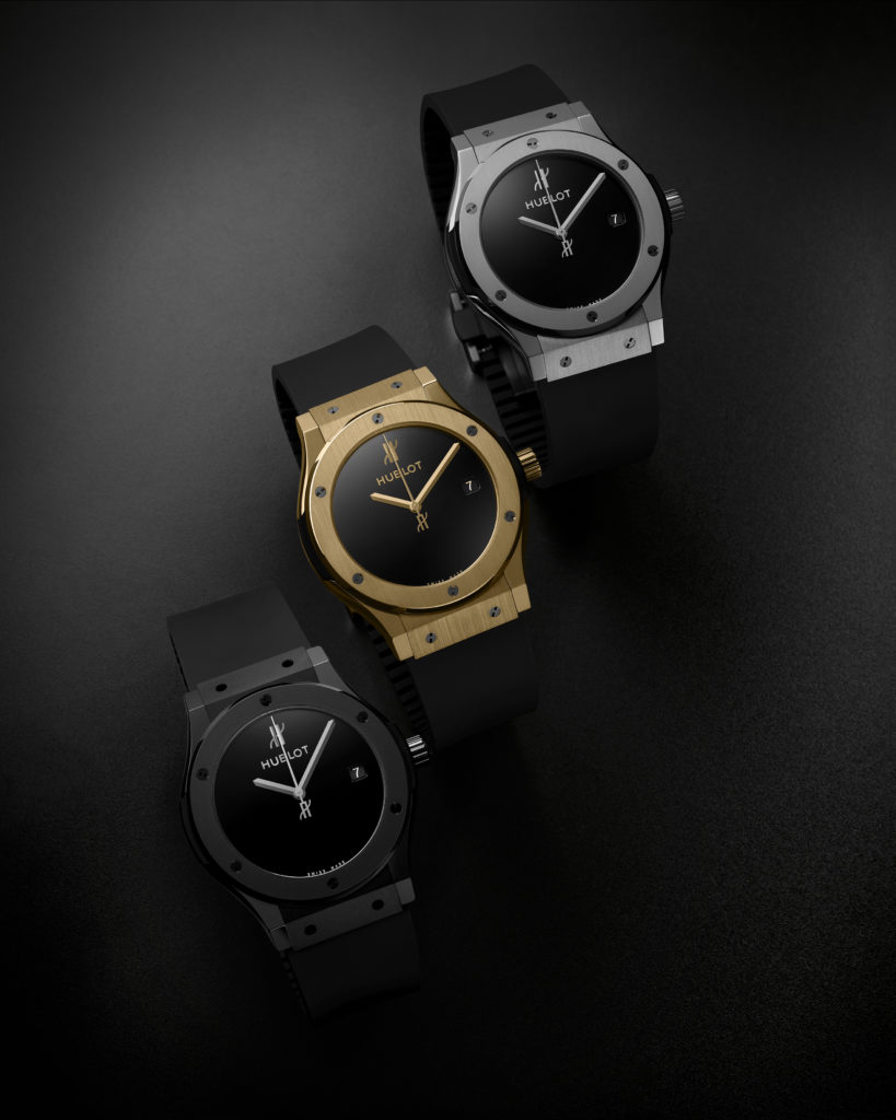 Matériaux, finitions, technologies modernes et fétiches multiplient cette icône en trois modèles à collectionner, en hommage aux 40 ans de Hublot.