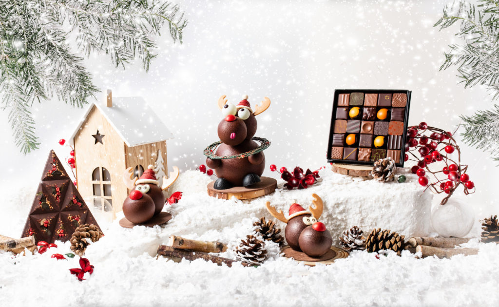 Cette année, Edwart met à l’honneur une version chocolatée du célèbre conte Rudolph, le petit renne au nez rouge, toujours avec des Grands Crus de chocolat.