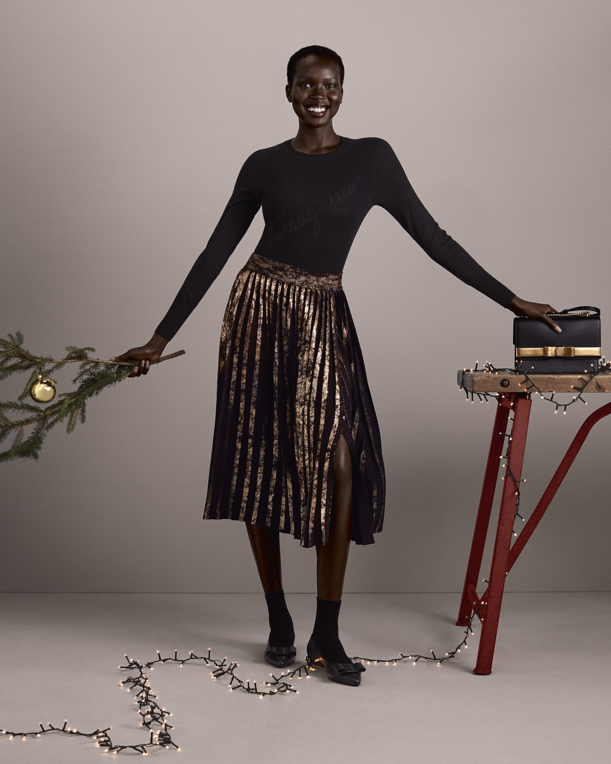 Rêver ensemble, souhaiter de la joie : pour cette saison de fêtes, Salvatore Ferragamo vous propose une campagne spécialement consacrée au temps partagé, ce qui nous est finalement ce que nous avons de plus cher au monde. Comme nous le montre cette campagne chaleureuse et pleine d’esprit, la préparation engendre le rêve et l’anticipation – l’élaboration d’un décor de fêtes Ferragamo fait partie de notre tradition. Cette tradition appelle également à la proximité et à la diversité, c’est pourquoi un joyeux mélange a été réuni sur le set de la campagne, qu’il s’agisse de vêtements pour femmes, pour hommes, de chaussures ou d’accessoires. Ce rassemblement reflète le délicieux récit de la fête, qui consiste à se réunir avec ses proches pour préparer la fête, choisir les cadeaux à offrir et souhaiter ceux que l’on pourrait recevoir. Ces ingrédients se combinent dans un portfolio de natures mortes festives qui mettent l’accent sur l’interaction entre la main humaine et les accessoires artisanaux de Ferragamo. Que ce soit à travers l’acte de fabriquer, de donner ou de recevoir, ce sont des pièces qui vous touchent. Et enfin, la joie : une série explosive de portraits « pyrotechniques » met en avant nos pièces Made in Italy. Joyeuses fêtes ! Le directeur de la création, Paul Andrew déclare « Tradition et l’union sont des valeurs fondamentales ici chez Salvatore Ferragamo : notre tradition de savoir-faire artisanal et notre réseau d’artisans italiens qui mettent en œuvre leurs compétences diverses pour travailler ensemble est la plate-forme qui nous permet de créer, d’innover et de captiver. Pour cette période de vacances, il était logique de se concentrer sur les traditions de l’époque ; une tradition de se réunir avec les personnes aimées, de prendre le temps de réfléchir et de s’amuser, et d’échanger des gages de respect, d’amour et d’affection. Parce que Salvatore Ferragamo est notre travail, il est également au cœur de notre expérience des fêtes : participer à la conception et à la création d’un objet fait main qui est ensuite sélectionné par un individu comme un cadeau qui touchera le cœur d’un être aimé, c’est un grand privilège et une source de joie. Notre collection pour les fêtes propose des chaussures, des accessoires et des vêtements qui ont été créés pour améliorer la qualité de vie de ceux qui les reçoivent – ce sont des pièces qui resteront avec vous, qui vous serviront bien et qui vous rappelleront chaque jour la personne qui sait que vous aurez autant de plaisir à les posséder et à les utiliser qu’elle en a eu pour les choisir comme cadeau. C’est de cette collection que sont faits les souvenirs de fêtes ».