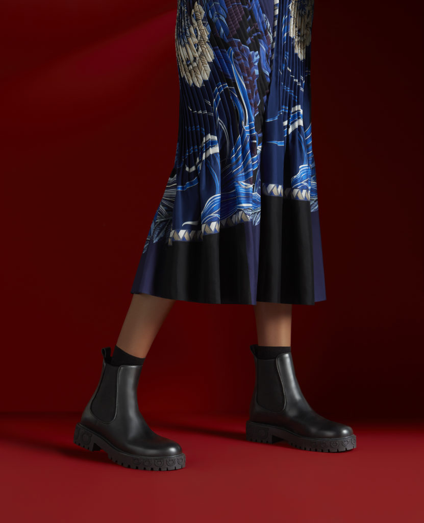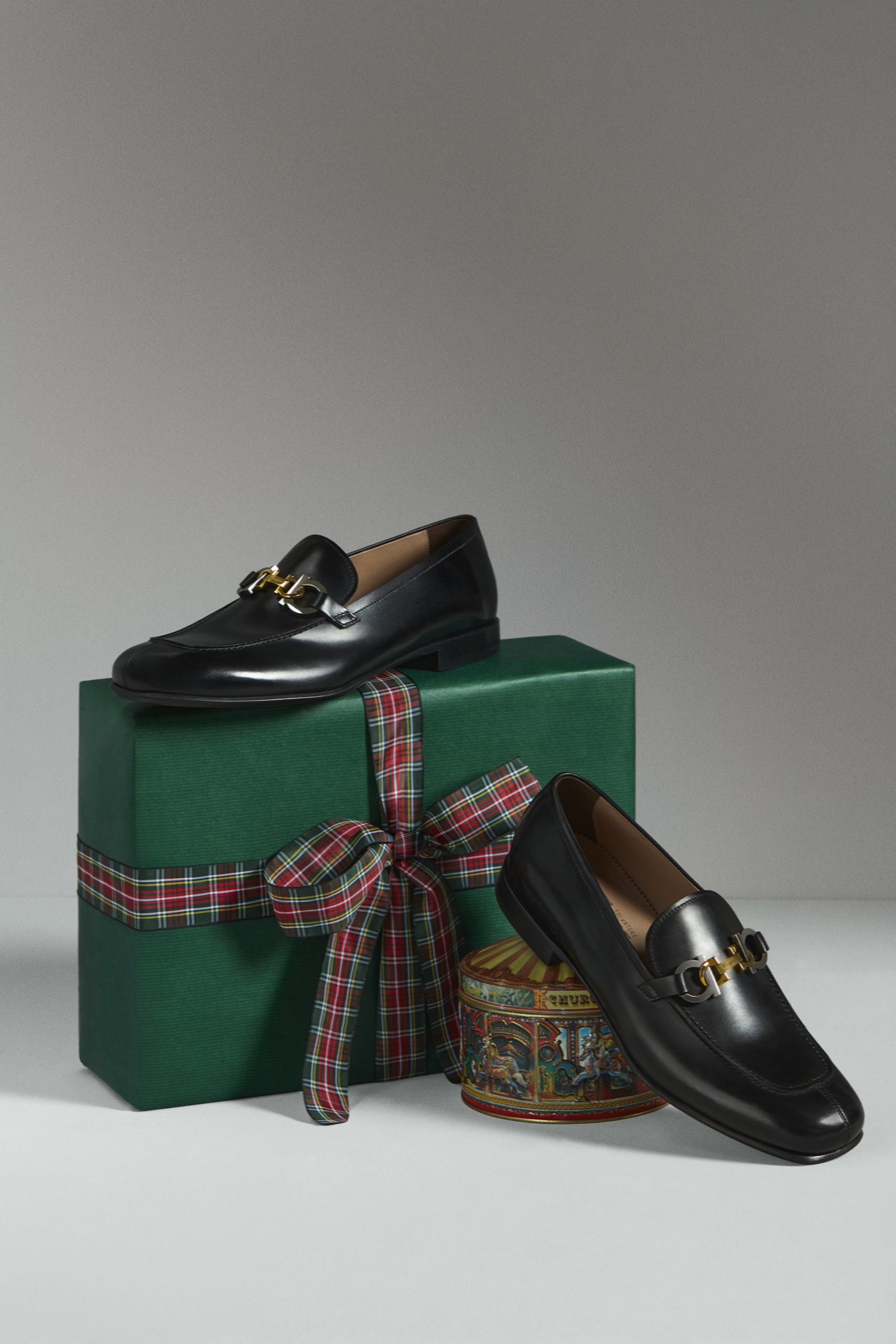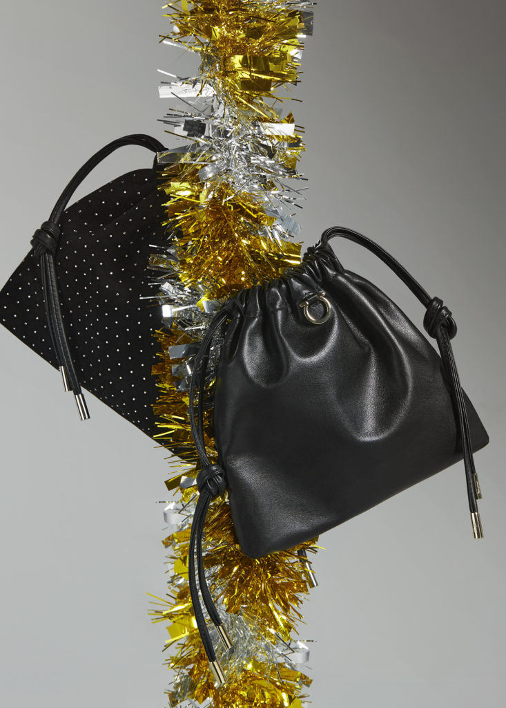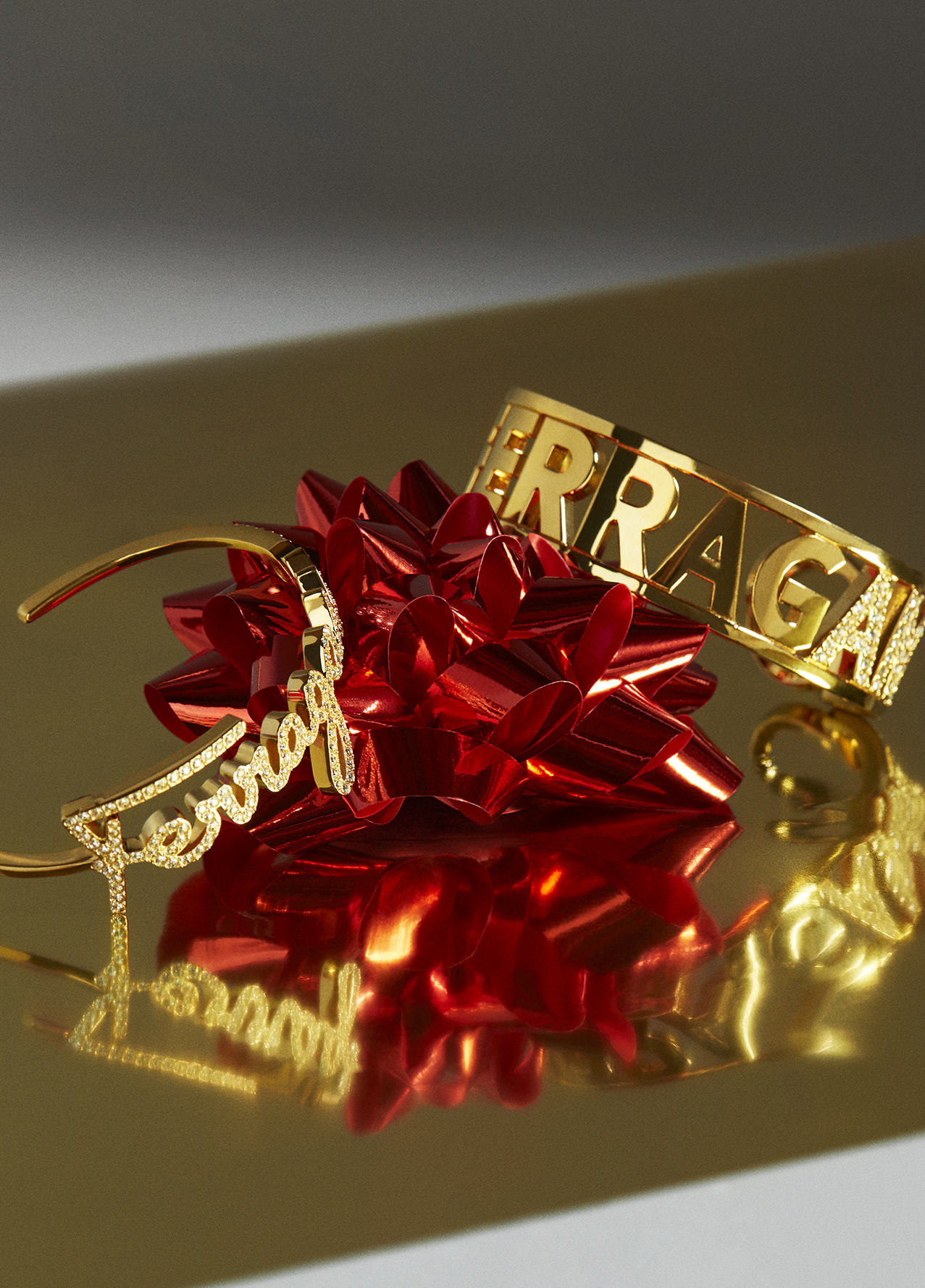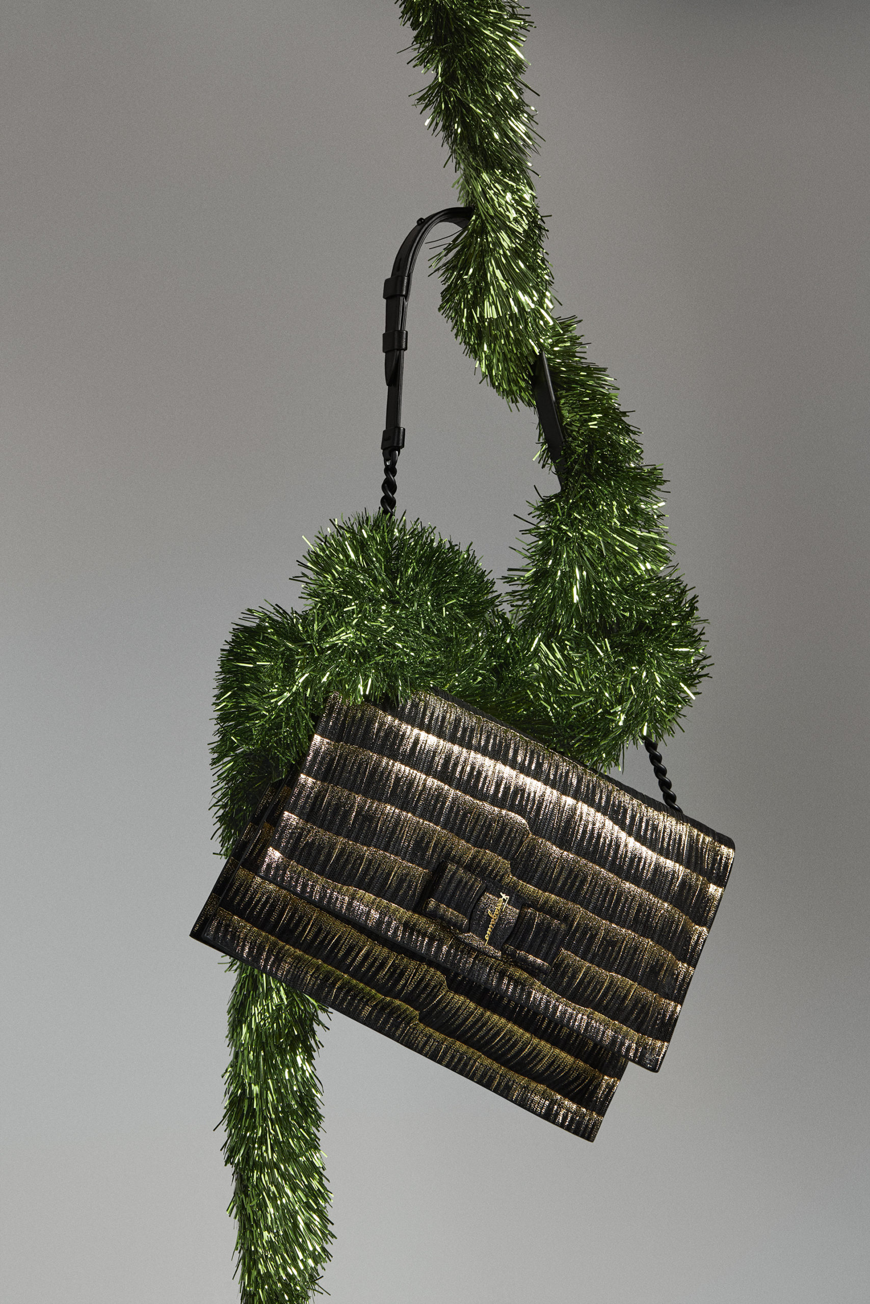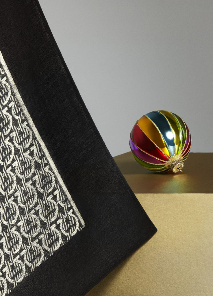 Pour elle La couture moderniste. Tricots métalliques. Robes et jupes en chaîne dorée. Robes en soie martelée et tricot foulard. Souliers Viva à talons moyens et chaussons de ballerines ornés de cristaux Gancini. Sac Studio à motif foulard. Deux modèles de sac Viva Bow, l’un avec un nœud doré sur fond noir, l’autre avec un effet de chaîne dorée pour compléter une sandale Viva assortie. Un nouveau sac Viva Bow rembourré en noir. Des lunettes de soleil Gancini-edge de nouvelle forme. Des boucles d’oreilles Gancini et poignets en cuir ornés de ferrures. Pour lui La couture à double couche. La chemise traditionnelle. Des pièces en tricot et en laine. Ceintures Gancini. Portefeuilles et porte-cartes. Montres, bracelets, lunettes de soleil et baskets Ferragamo. Souliers Tramezza fabriqués à la main. La collection de Fêtes occupera le devant de la scène dans les vitrines des magasins Salvatore Ferragamo et sera présentée dans tous nos canaux numériques et partenaires à travers le monde.