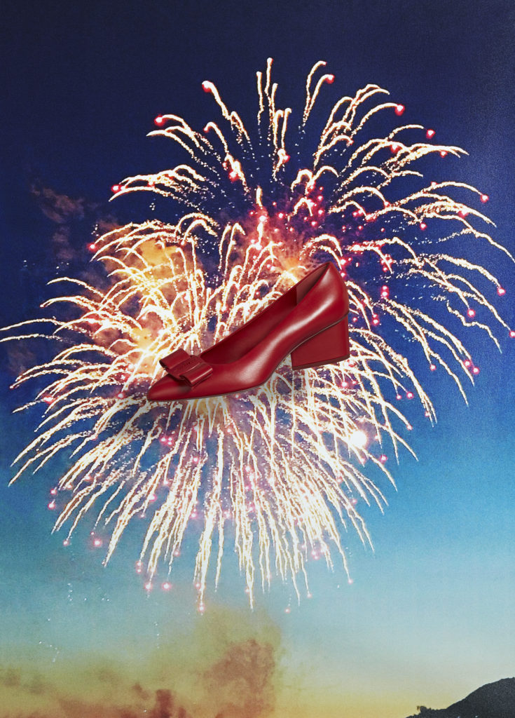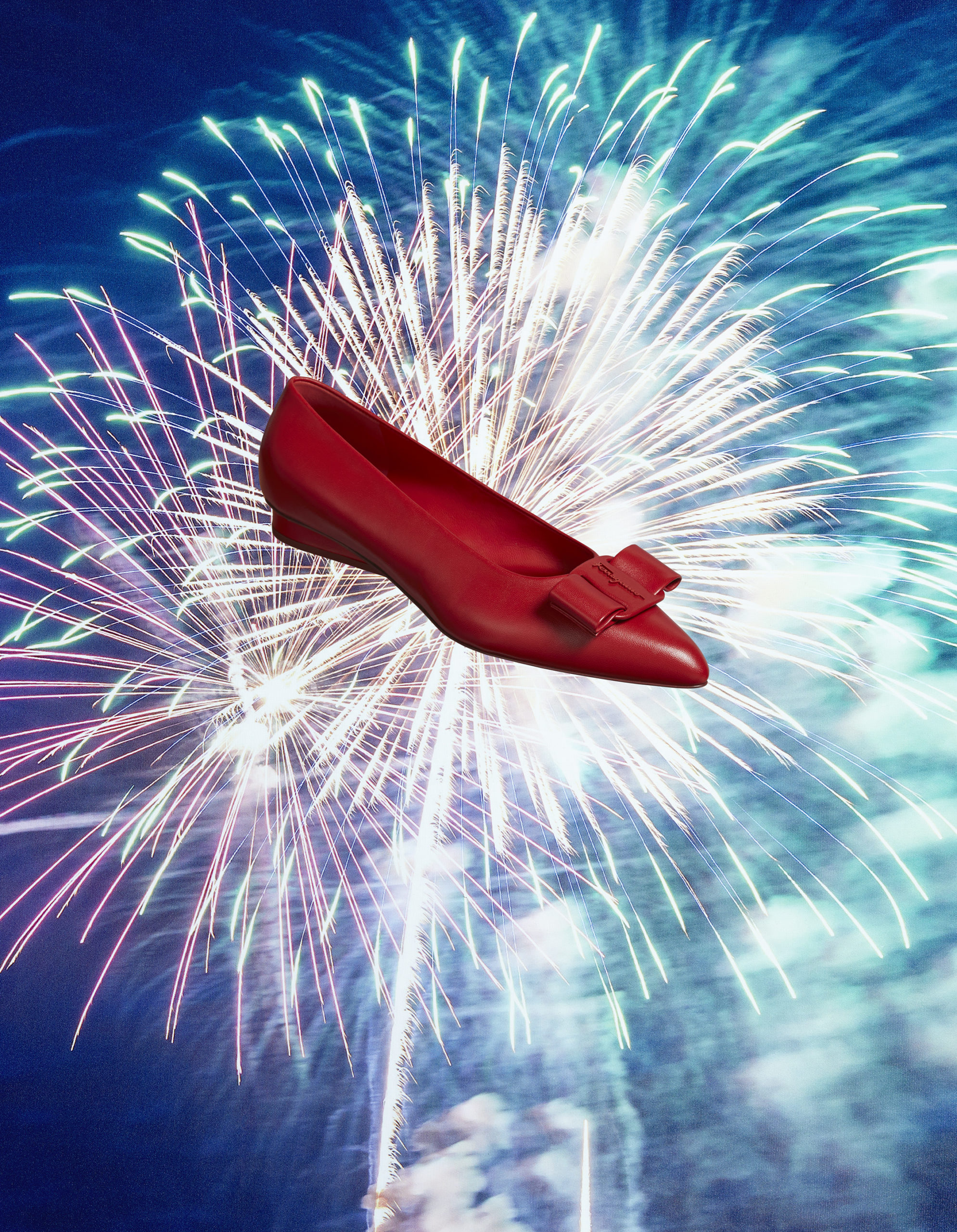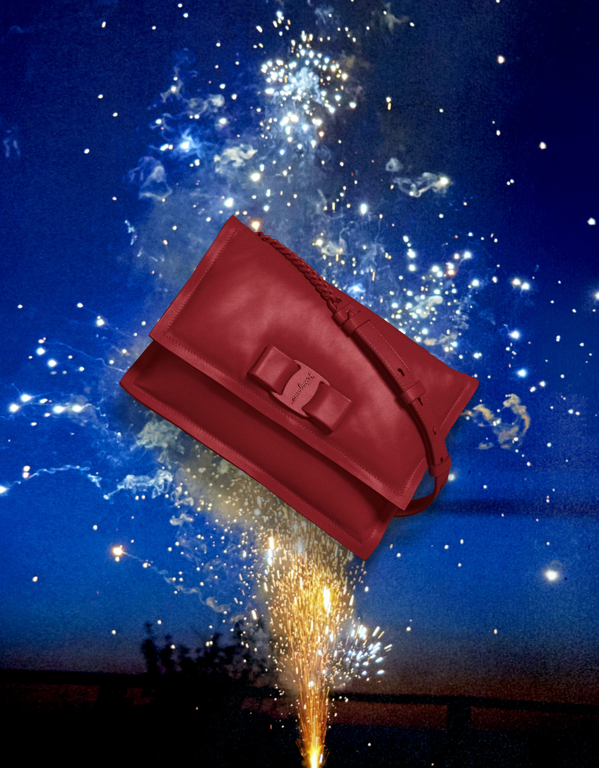 Ces ingrédients se combinent dans un portfolio de natures mortes festives qui mettent l’accent sur l’interaction entre la main humaine et les accessoires artisanaux de Ferragamo. Que ce soit à travers l’acte de fabriquer, de donner ou de recevoir, ce sont des pièces qui vous touchent. Et enfin, la joie : une série explosive de portraits « pyrotechniques » met en avant nos pièces Made in Italy.