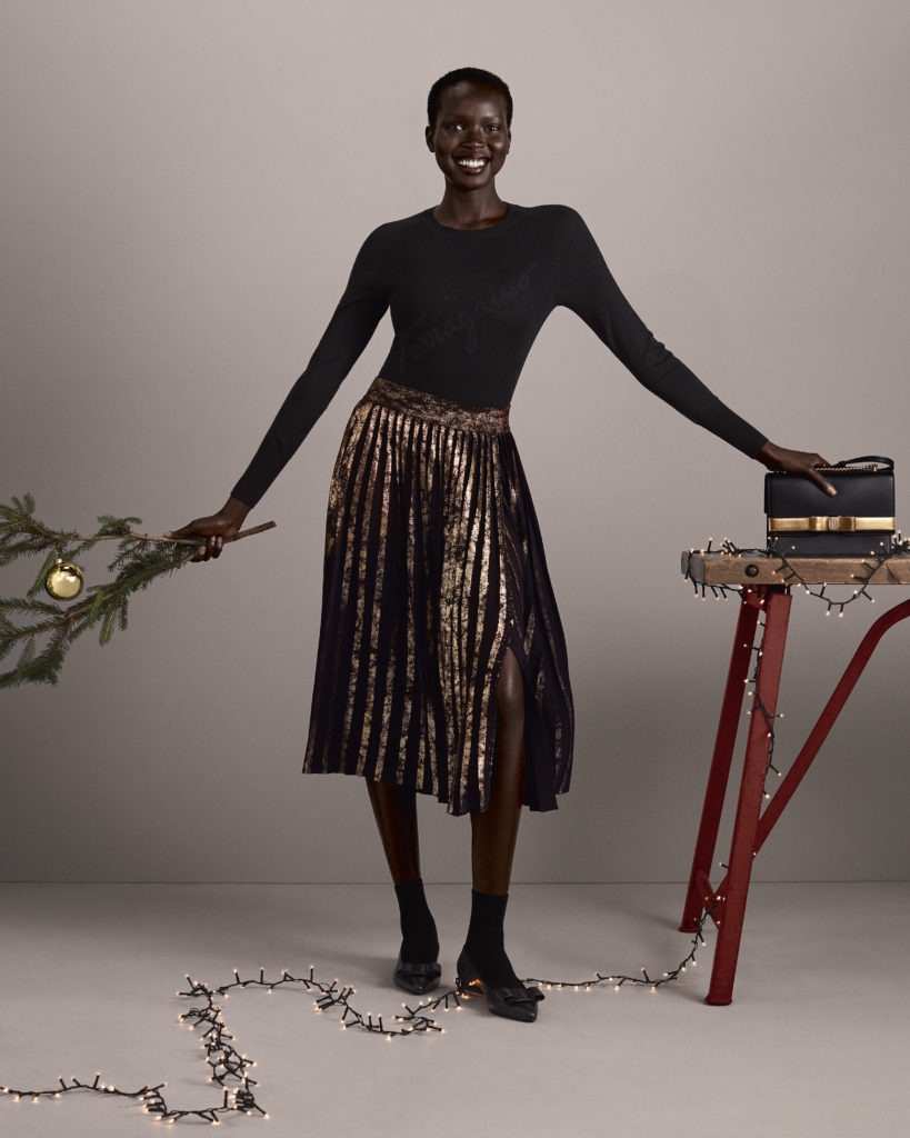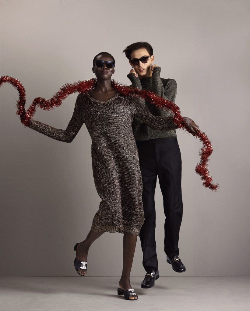 Un joyeux mélange a été réuni sur le set de la campagne, qu’il s’agisse de vêtements pour femmes, pour hommes, de chaussures ou d’accessoires. Ce rassemblement reflète le délicieux récit de la fête, qui consiste à se réunir avec ses proches pour préparer la fête, choisir les cadeaux à offrir et souhaiter ceux que l’on pourrait recevoir.