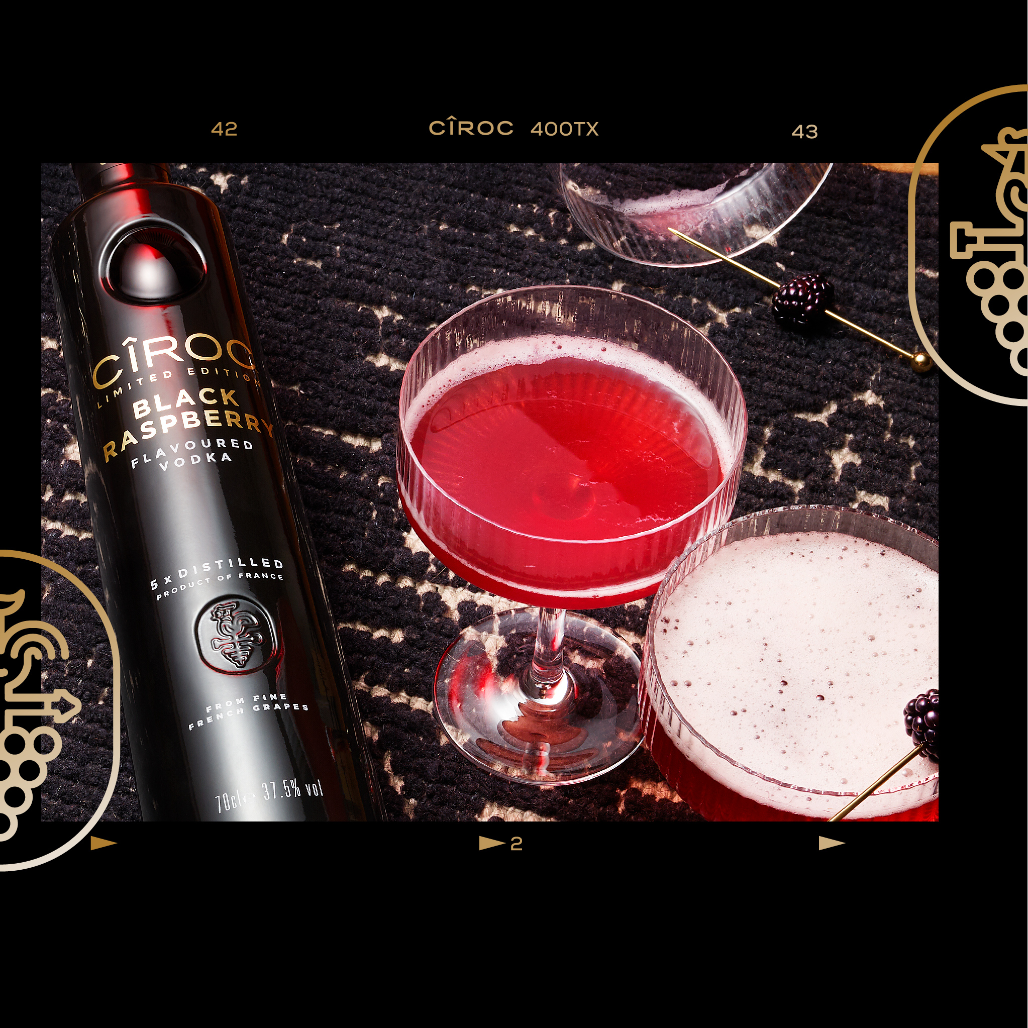 Ce produit d’exception, Cîroc® Blackraspberry, est idéale pour réaliser des cocktails inédits, hivernaux et festifs : Cîroc Blackraspberry Royal et Cîroc Velvet Crush.