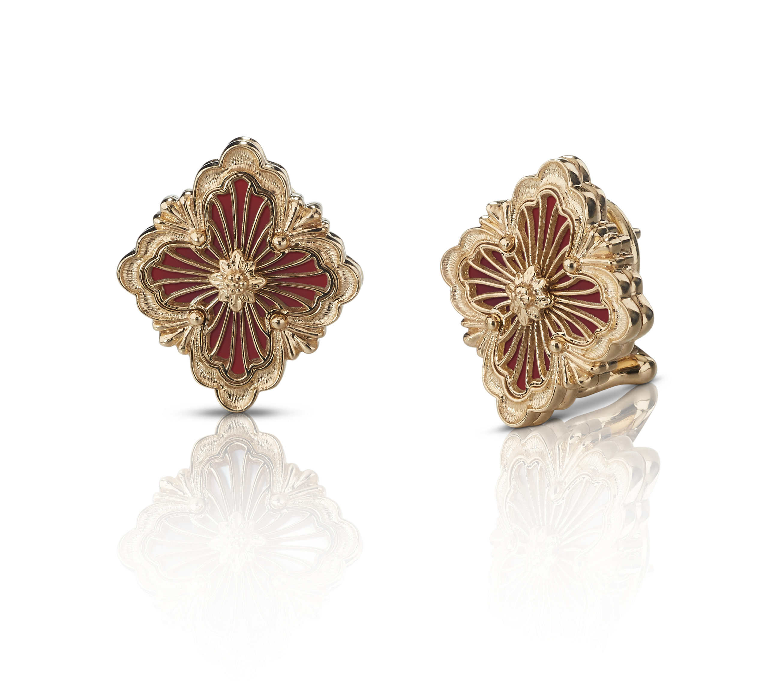 La collection Opera color « Tulle » composée d’émail, de nacre ou d’onyx est enrichie de bagues, de bracelets, de pendentifs et de boutons d’oreilles. Des pièces rehaussées d’une décoration tulle, qui est une des signatures Buccellati, enveloppe l’émail, la nacre ou l’onyx et donne une touche intemporelle. L’or est ainsi gravé à la main.