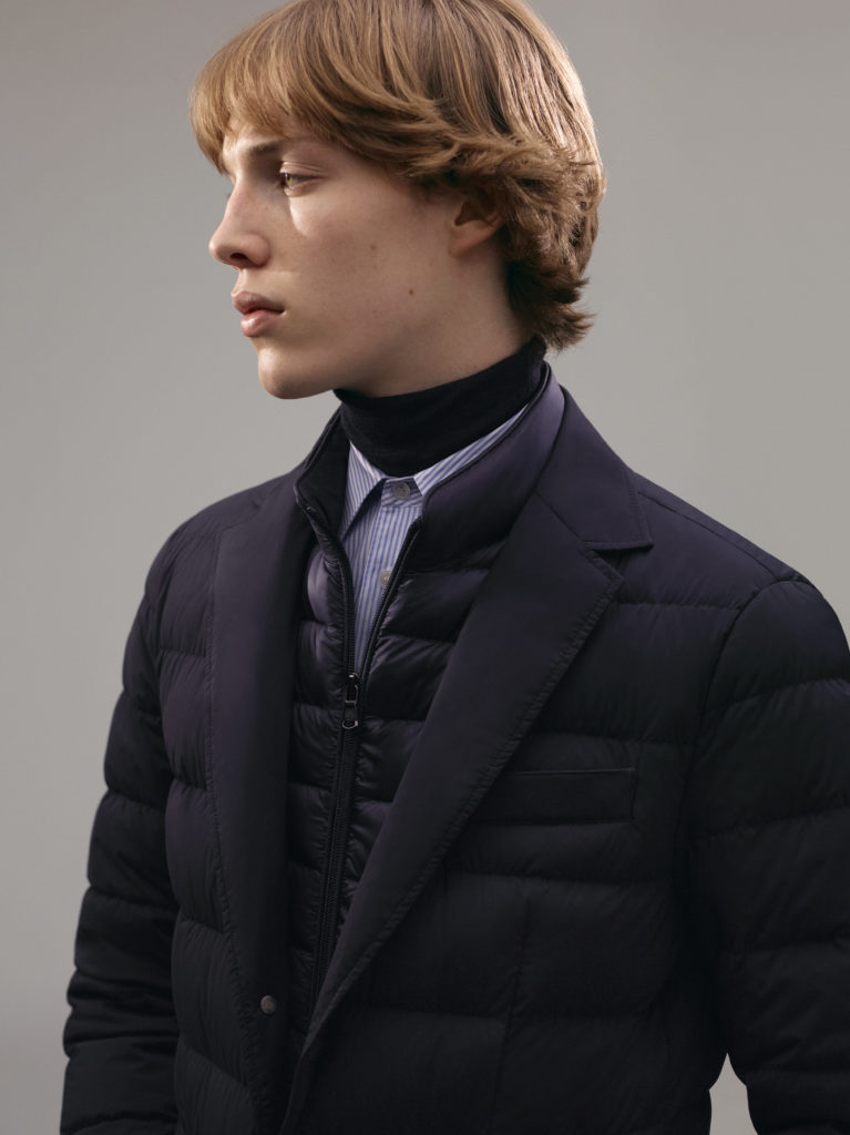Les tissus normalement utilisés dans la production de pièces classiques sont retravaillés pour donner des vestes chaudes comme la Bess, un blazer à double épaisseur et à carreaux Prince de Galles, ou encore les Schreckhorn et l’Obergabelhorn, en laine 100% vierge pour une versatilité intemporelle.