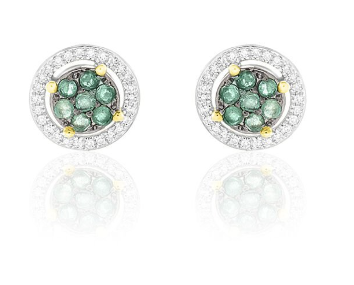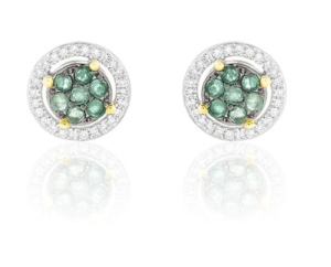 Puces d’oreilles Lise-Laure en or jaune, émeraude et diamants (399 €)