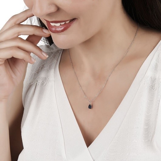 Collier goutte en or blanc orné d’un saphir (219 €)