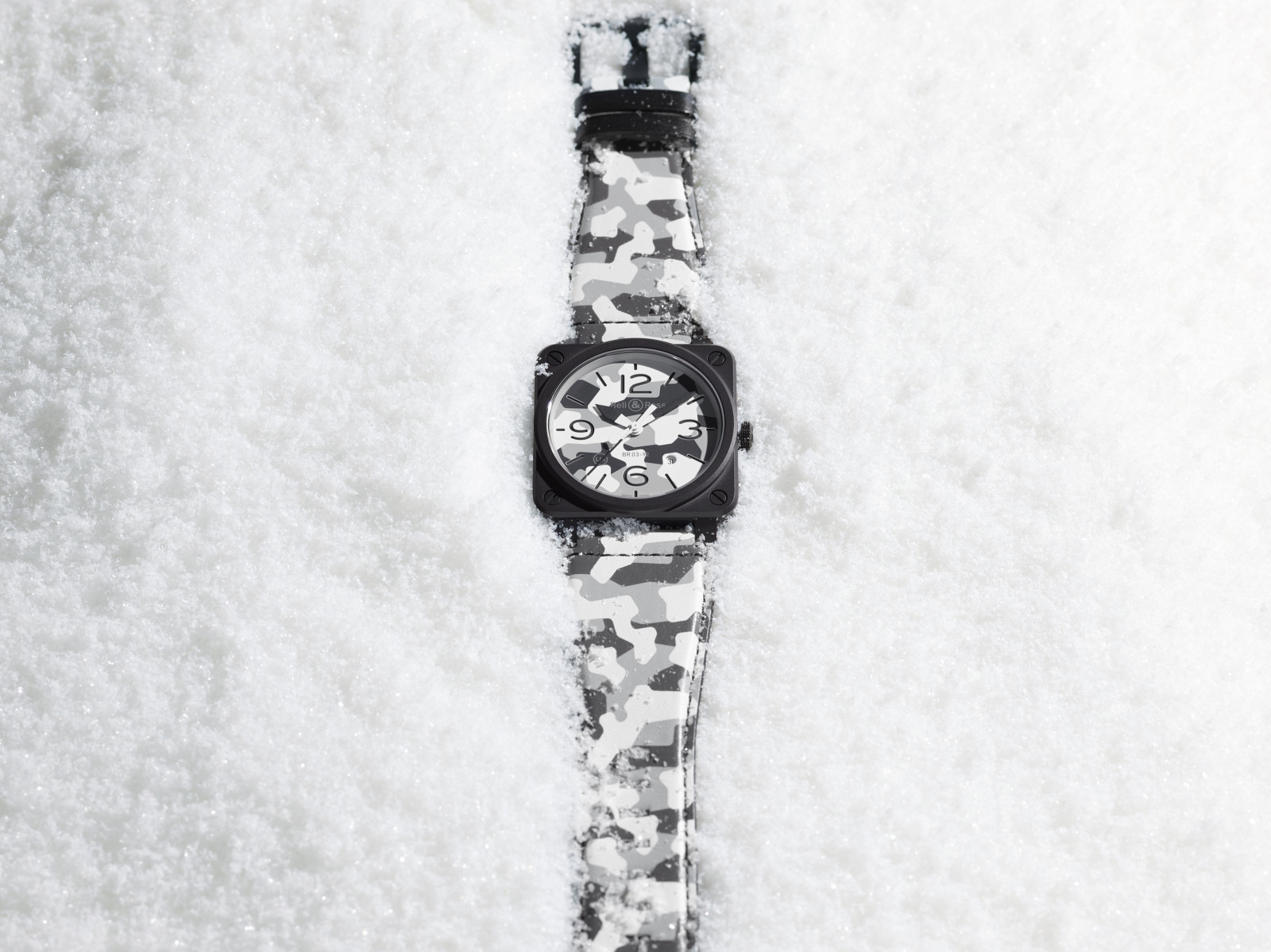 Bell & Rossprésente la nouvelle BR 03-92 WHITE CAMO, elle vient cette année compléter l’emblématique famille des montres camouflage.