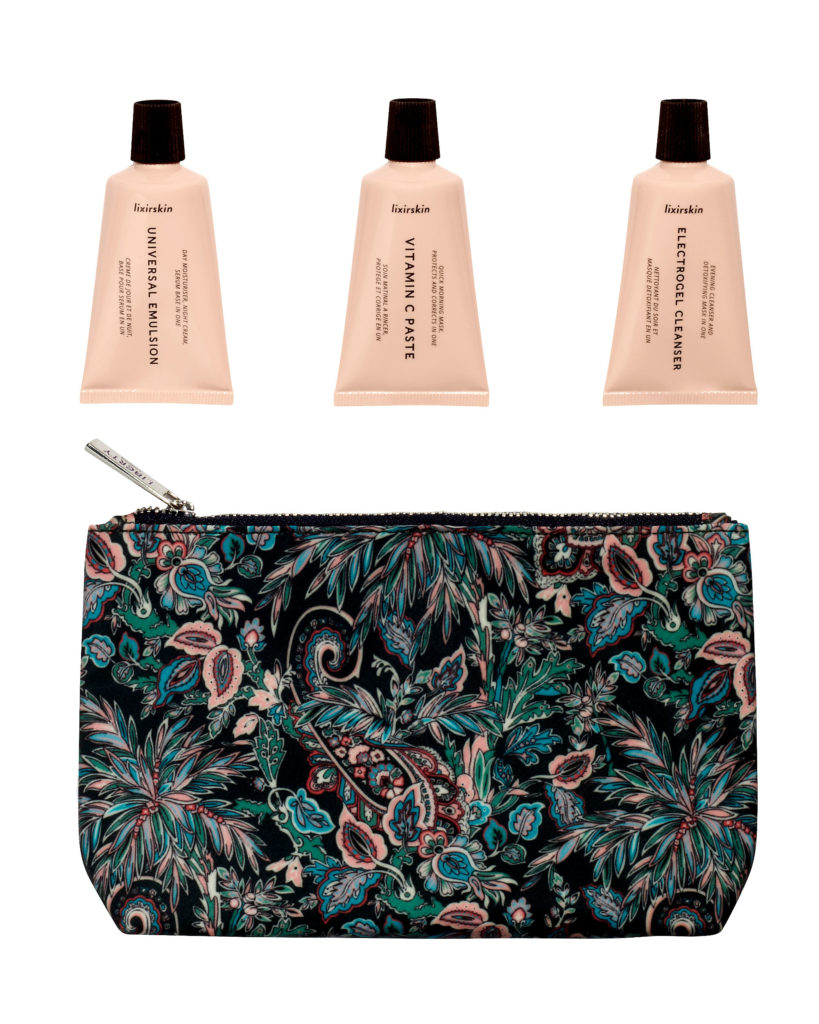 Lixirskin – Excusivité Noël – Trio format voyage skincare « Good Skin » et et sa pochette Liberty London
