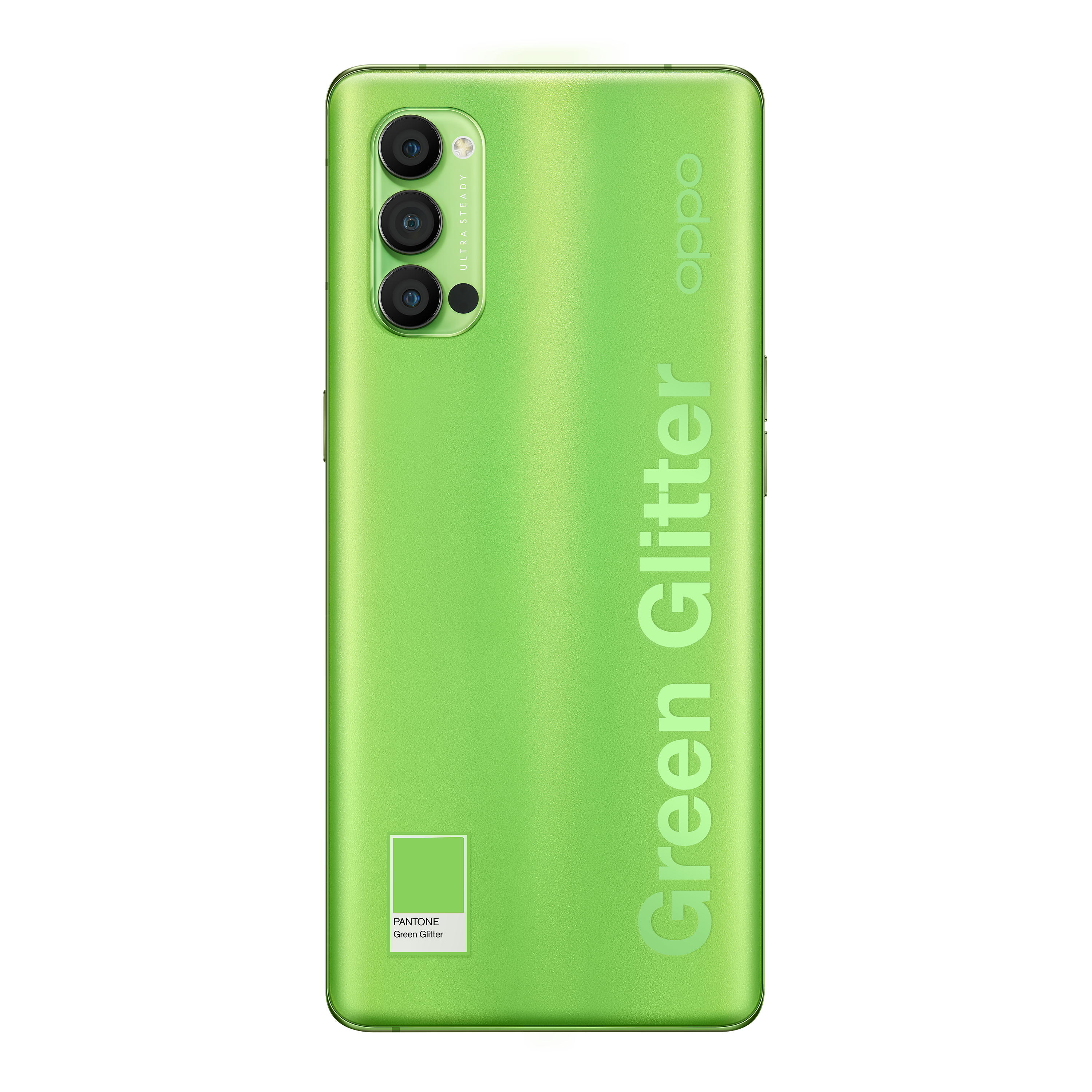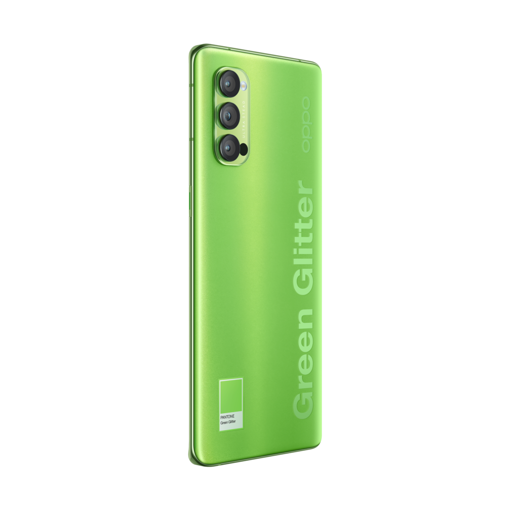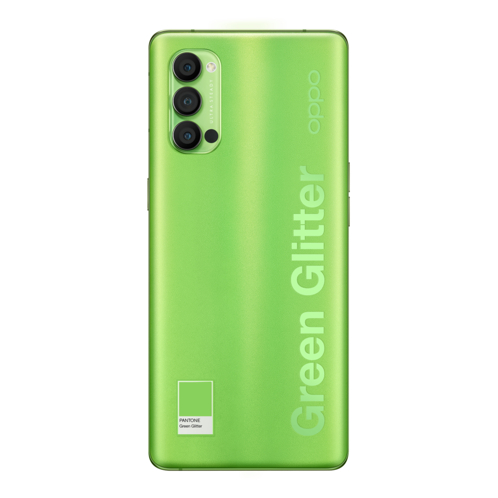 Développée en partenariat avec Pantone exclusivement pour la série Reno4, la finition Green Glitter combine la brillance cristalline Reno Glow à une nuance de vert unique. Ce design aux finitions haut de gamme offre