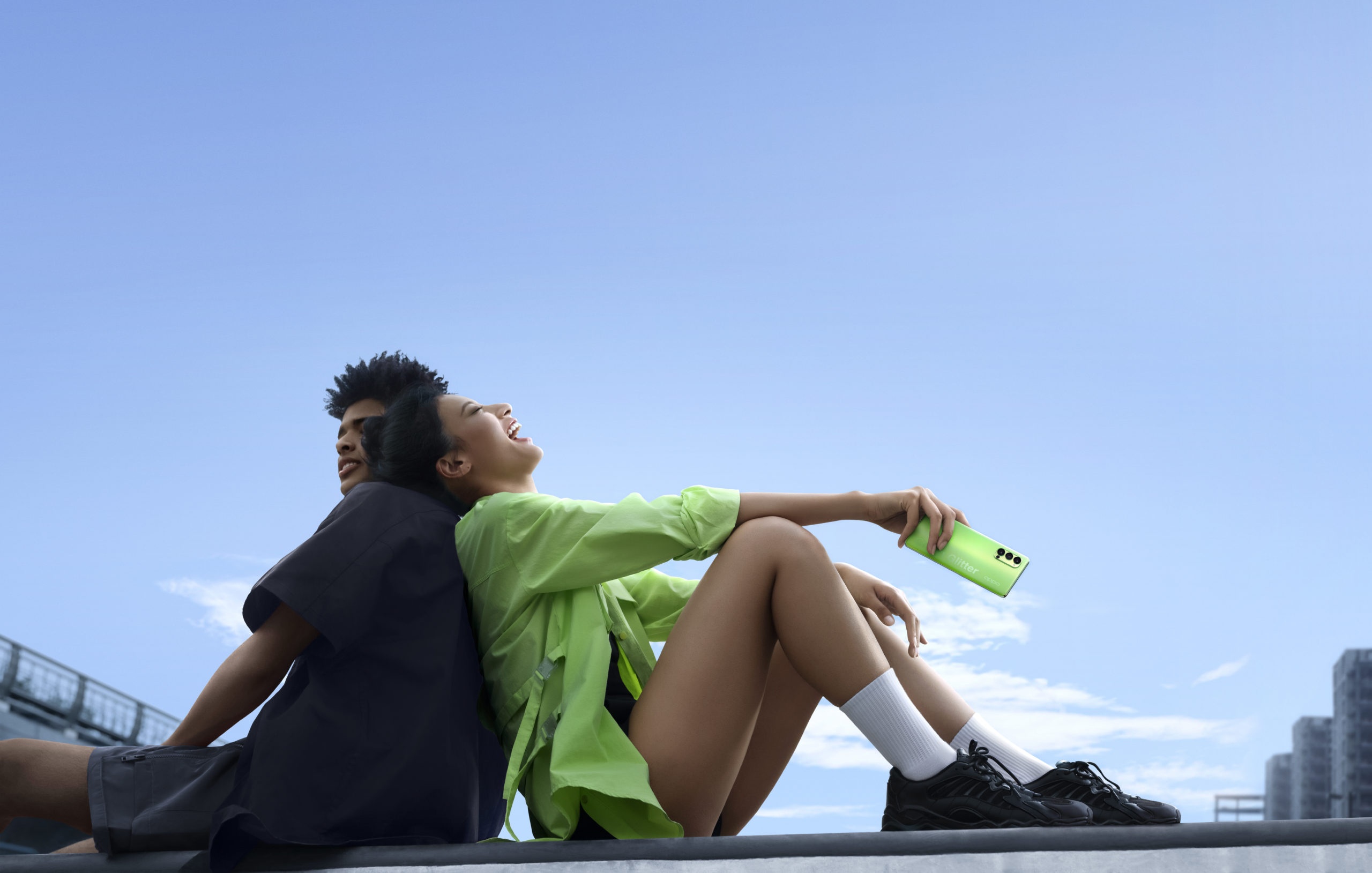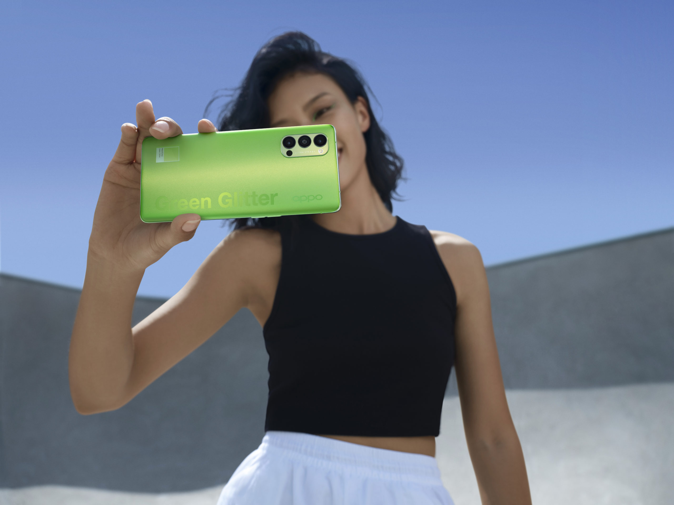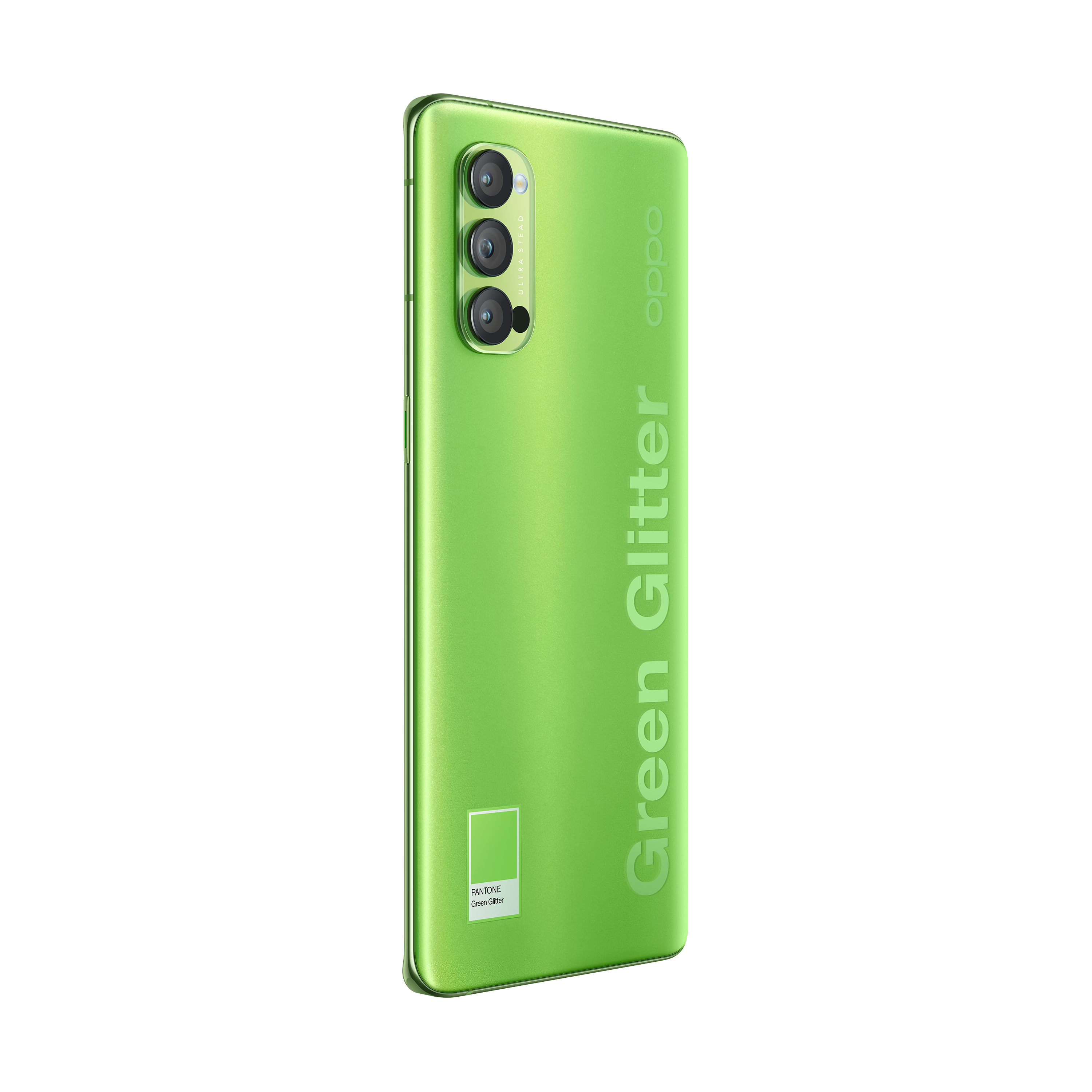Développée en partenariat avec Pantone exclusivement pour la série Reno4, la finition Green Glitter combine la brillance cristalline Reno Glow à une nuance de vert unique. Ce design aux finitions haut de gamme offre