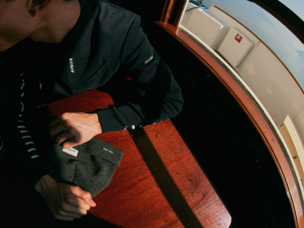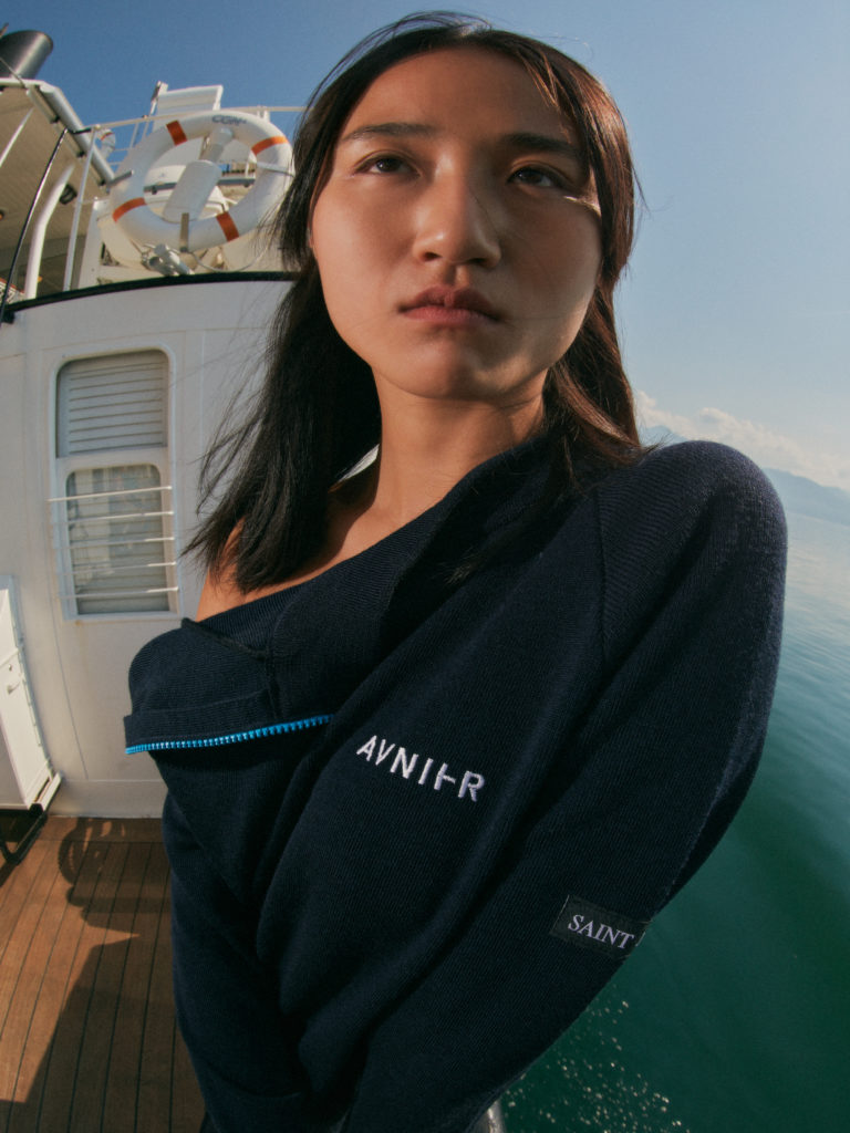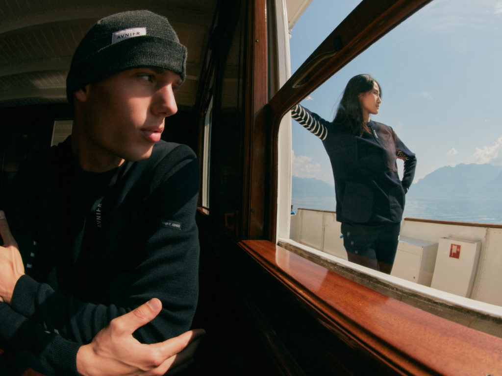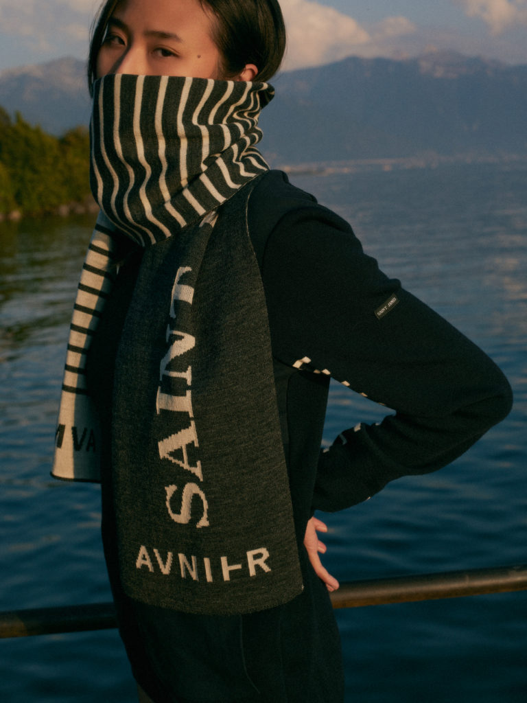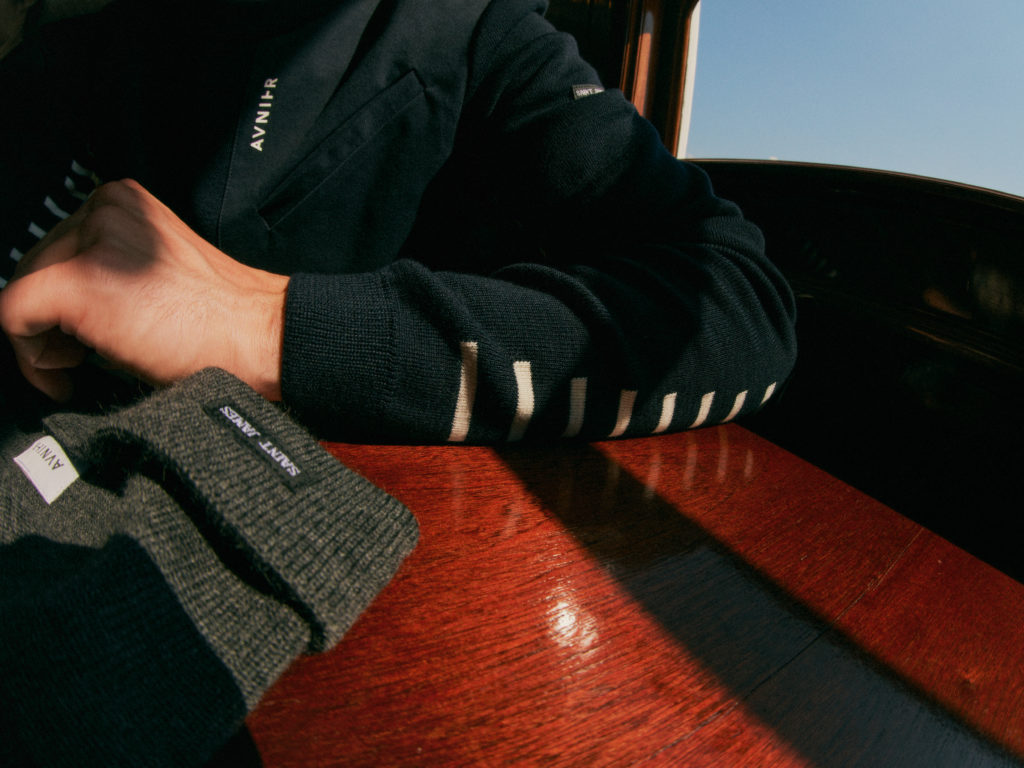 La marque de streetwear Avnier est un duo composé de l’artiste normand Orelsan et du designer suisse Sébastian Strappazzon. L’un vit près de la mer, l’autre sur les rives du lac Léman. Pour les deux fondateurs, le pull rayé Saint James représente un vêtement emblématique de leur jeunesse. En effet, avec plus de 130 ans de savoir-faire unique et un label EPV «Entreprise du Patrimoine Vivant», c’est cette maîtrise centenaire qui rend les produits Saint James quasi indestructibles par le temps.