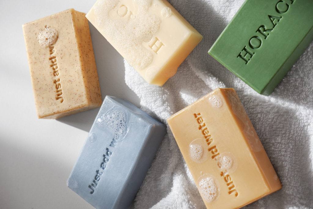 Les pains de savons HORACE sont enrichis en huile de coco afin de les rendre surgras et donc doux pour la peau. Le pain de savon est un objet sur lequel nos yeux se posent quotidiennement. Pour cette raison, nous avons rendu chacun des pains de savons unique par sa couleur. Le pain de savon surgras classique Bergamote d’Italie & Menthe poivrée est blanc cassé, le Fleur d’Oranger & Petitgrain est orange, le Menthe poivrée & Arbre à thé est bleu, le pain de savon surgras exfoliant est beige et enfin le cèdre de Virginie et feuille de sauge est vert. Chacun est ainsi reconnaissable en un clin d’oeil, par sa couleur, et son parfum.