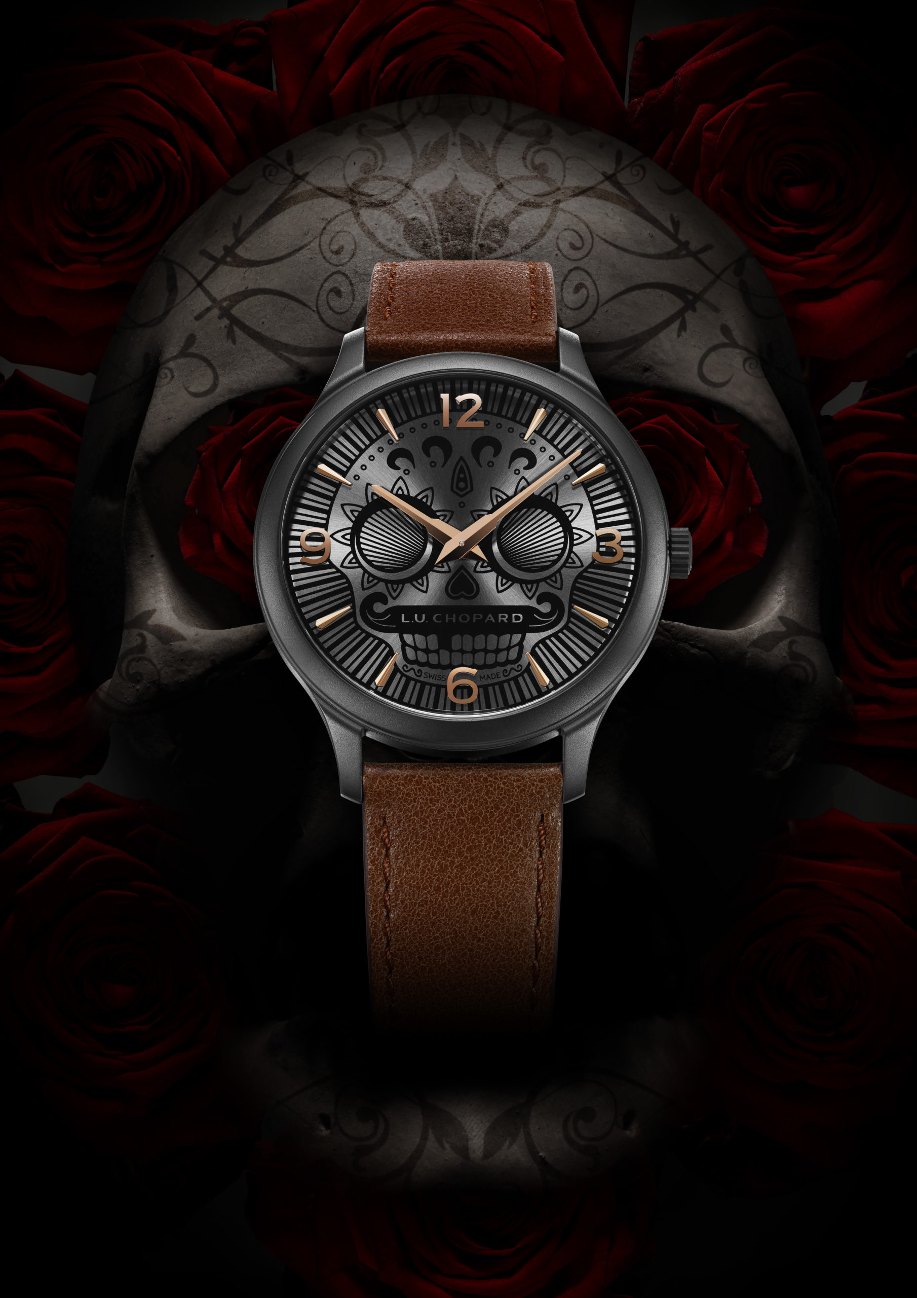 Chopard présente le L.U.C Skull One, une édition limitée de 100 pièces ornée d’une calavera mexicaine en hommage au Jour des Morts. Vêtue d’une belle combinaison de teintes sombres grâce à un cadran noir aux finitions laquées et des index en or,