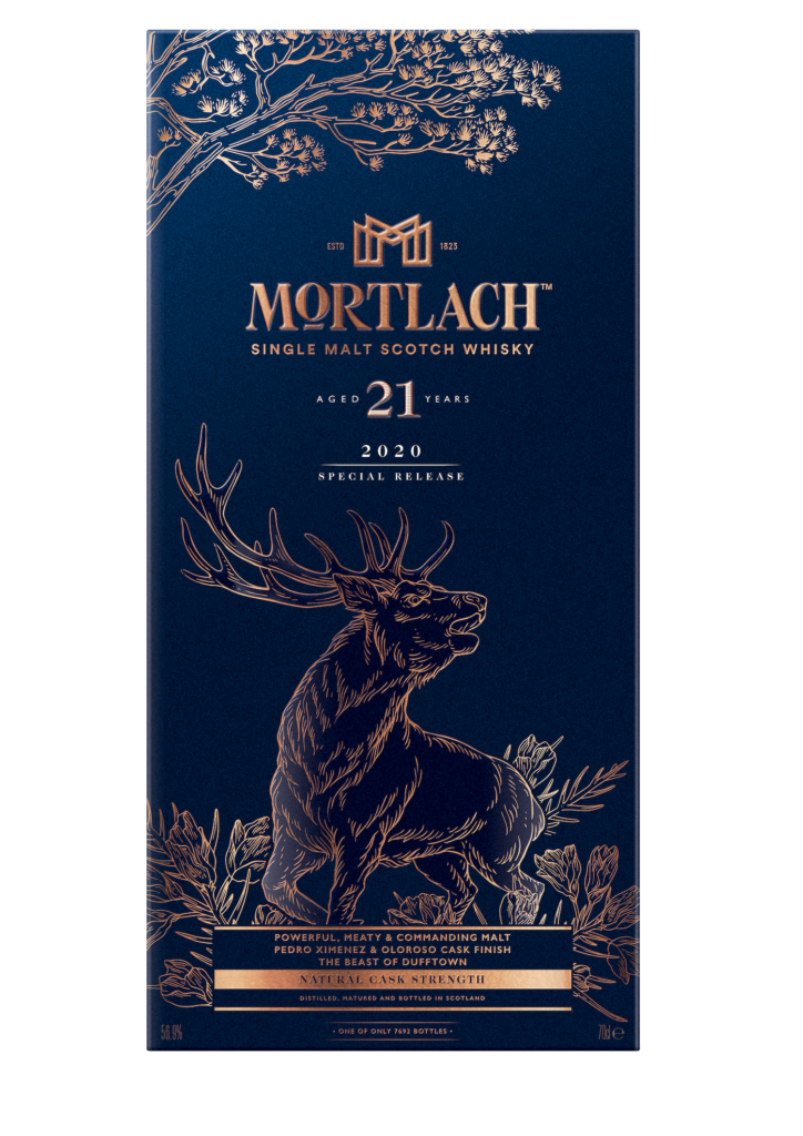 Ce petit lot de Mortlach a vieilli en fûts de Pedro Ximénez et d’Oloroso. La richesse du résultat de ce Mortlach, à la fois doux et savoureux, complète le caractère complexe de la distillerie, dont le liquide est distillé 2,81 fois. Appelé « La Bête de Dufftown » pour son caractère robuste et riche en umami, Mortlach est l’un des secrets les mieux gardés des whiskies d’Ecosse. L’audace des saveurs est la signature de ce lot unique. Les arômes sont profonds, avec des notes de fruits secs et d’épices. La texture est onctueuse et le goût intense. La longue et puissante finale marie épices et douceur.