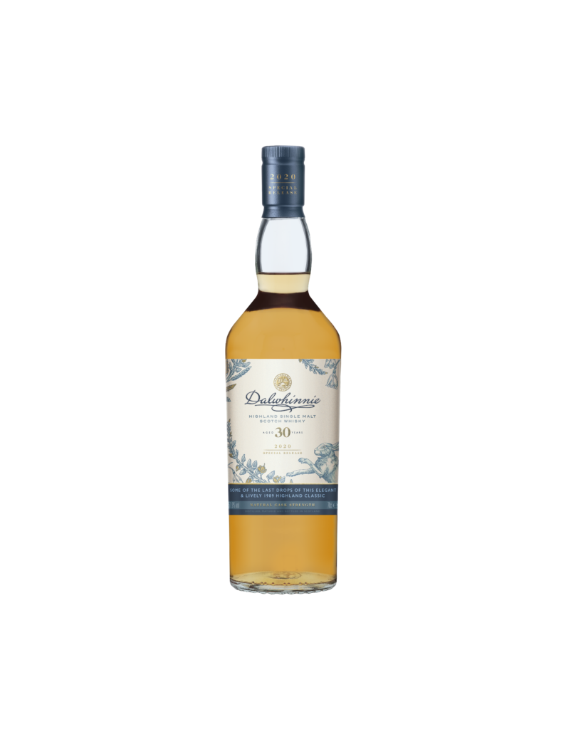 Ce flacon de Dalwhinnie millésimé rarissime, mis en fût en 1989, provient uniquement de fûts de chêne américain de second remplissage. Trois décennies de vieillissement ont apporté une belle élégance au caractère vibrant de la distillerie. Originaire de la distillerie la plus haute d’Écosse, Dalwhinnie est un malt des montagnes. L’arôme est délicat et doux. Les parfums de plantes se marient à des notes subtiles de caramel et de bonbons aux fruits, sur une base de bois épicé. La texture est douce, avec une chaleur qui s’intensifie progressivement en bouche pour laisser place à des notes poivrées et épicées. La finale est persistante et chaude.