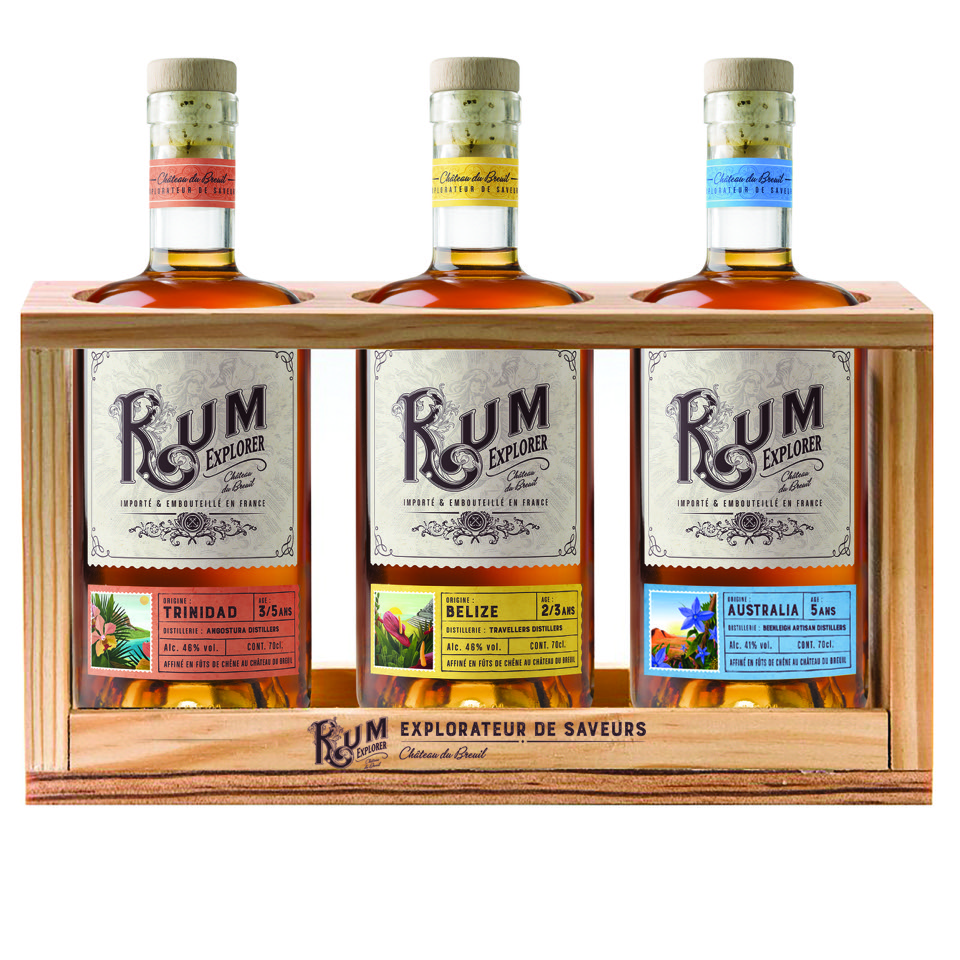 Dernière-née du Château du Breuil, la gamme Rum Explorer met en lumière le travail du Maître de Chais, et plus précisément l’importance de l’affinage dans la création d’un grand spiritueux. C’est grâce à un travail patient et minutieux et à des dégustations régulières que le Maître de Chais est parvenu à analyser, au gré des différents passages dans les fûts, l’évolution et le potentiel de vieillissement de chacun de ces crus. Affinés au Château, ces rhums ont été élaborés de façon à conserver leur couleur naturelle et à ne nécessiter aucune adjonction de sucre ni de filtration à froid.