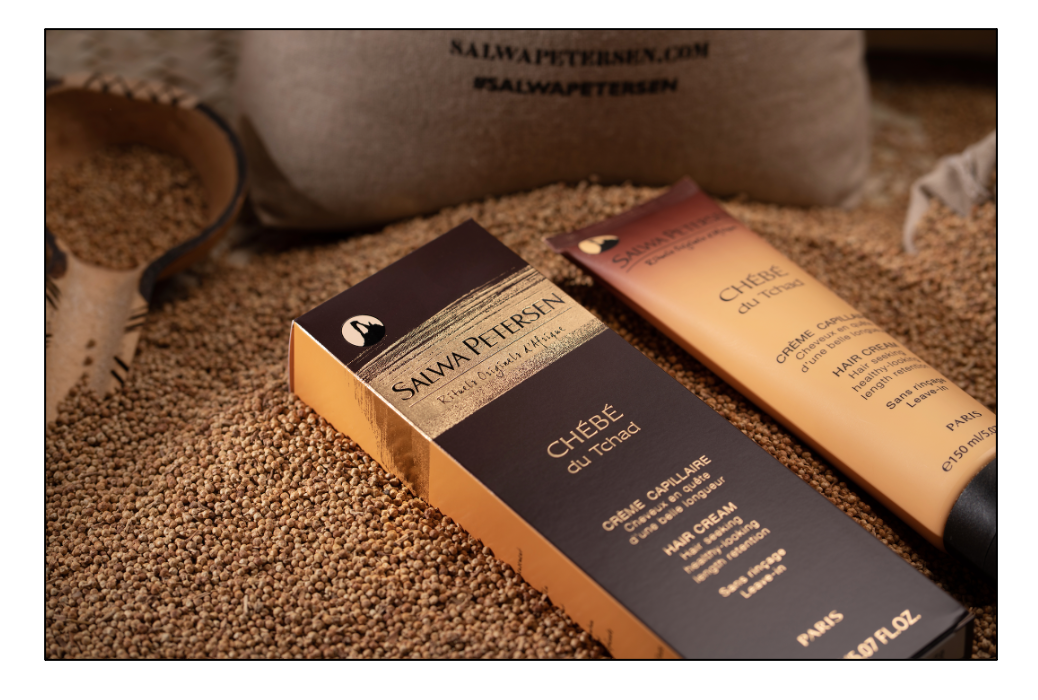 Après 3 ans et demi de recherche intensive, elle et son équipe de botanistes et formulateurs ont réussi à transformer le rituel ancestral du Chébé du Tchad, habituellement utilisé en cataplasme depuis la nuit des temps – on retrouve même des peintures rupestres illustrant le rituel – en un nouvel ingrédient aux vertus étonnantes encore jamais utilisé en cosmétique moderne.